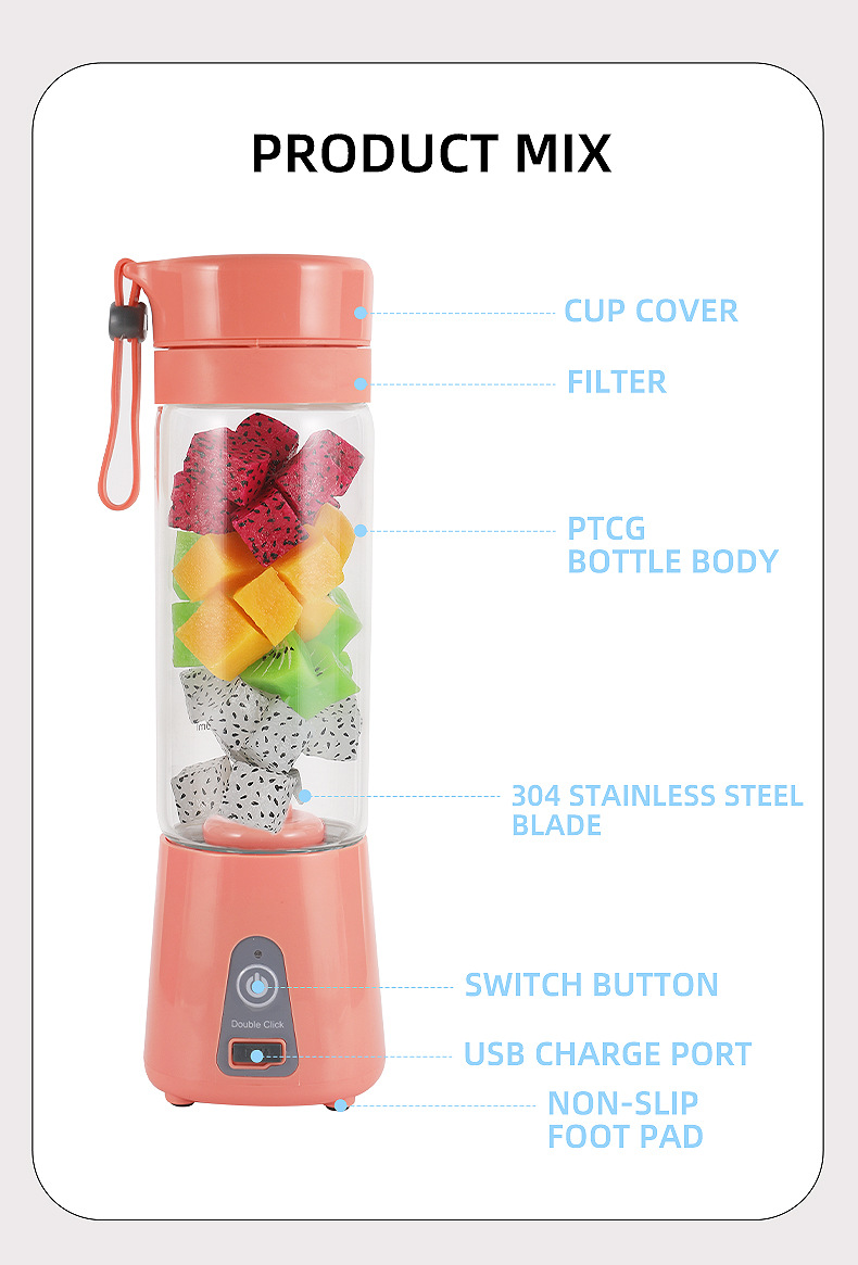 휴대용 전기 주스 컵 USB 충전식 미니 주스 기계 과일 및 야채 기계 무선 주스 기계 블렌더 공급
