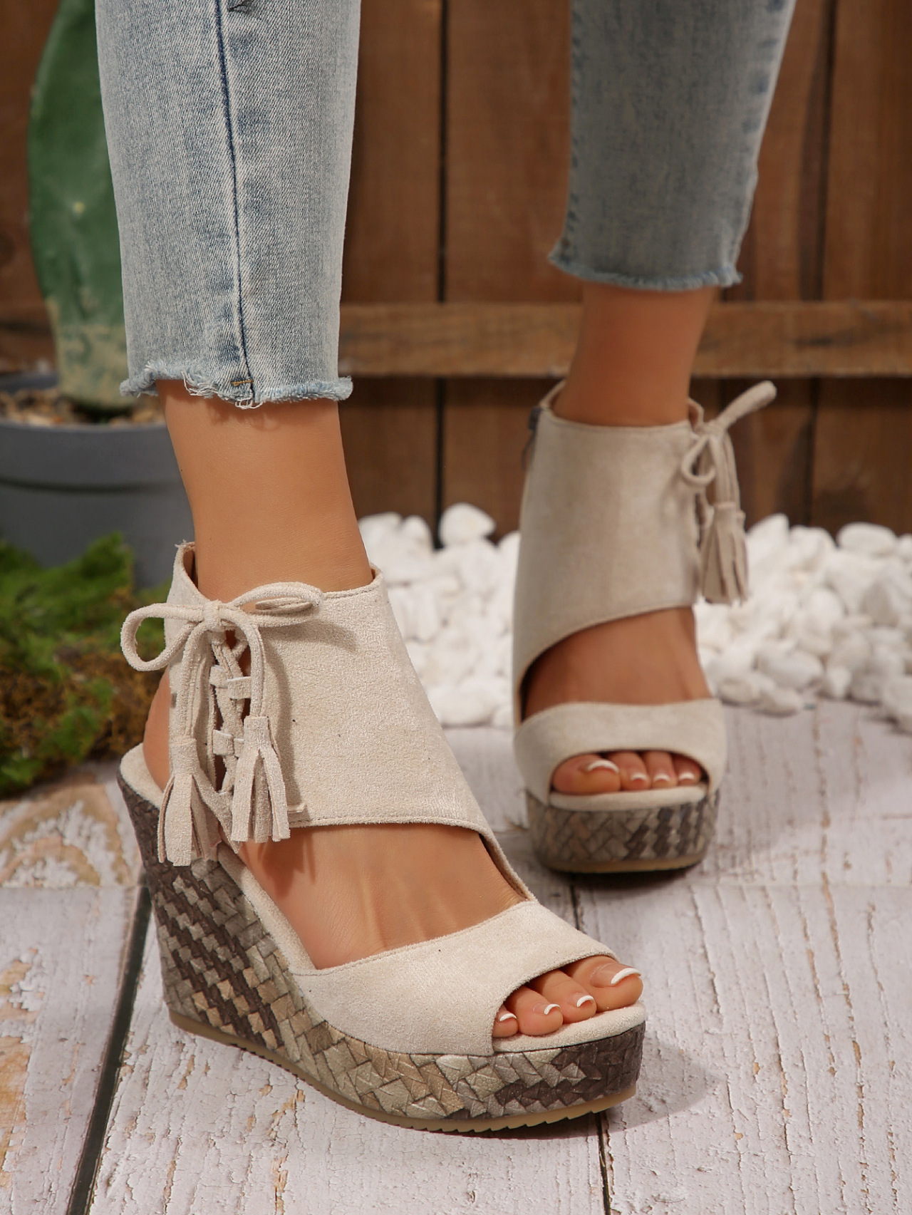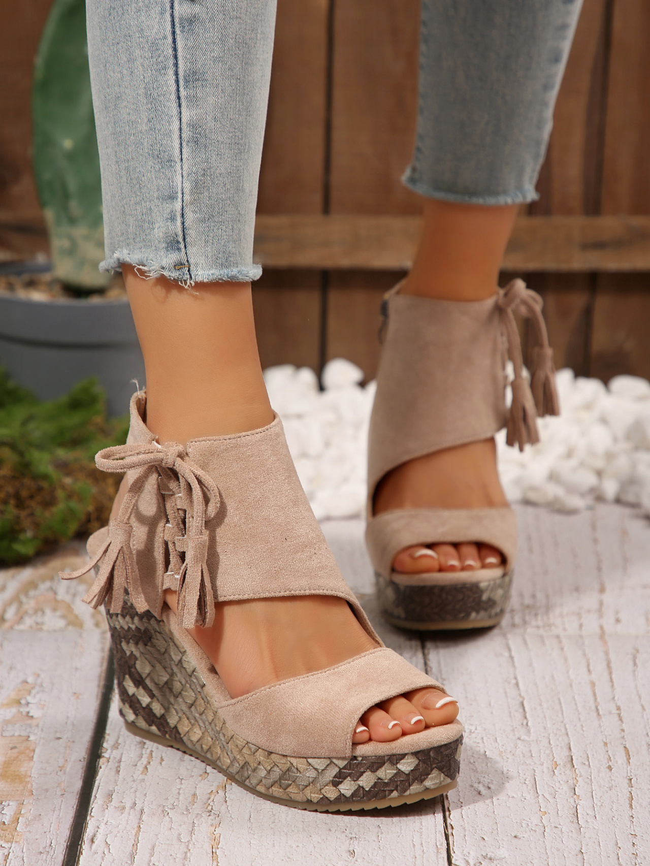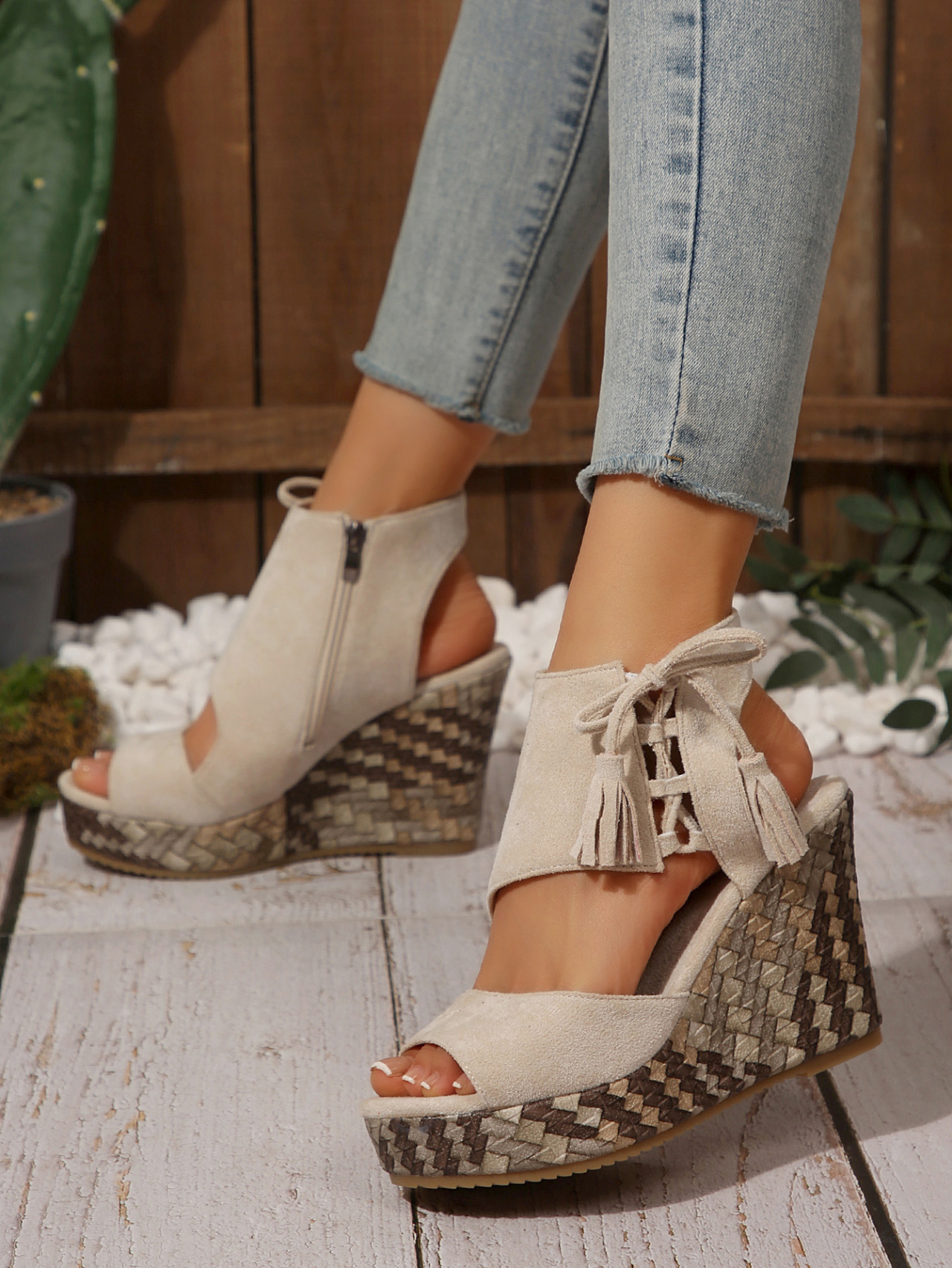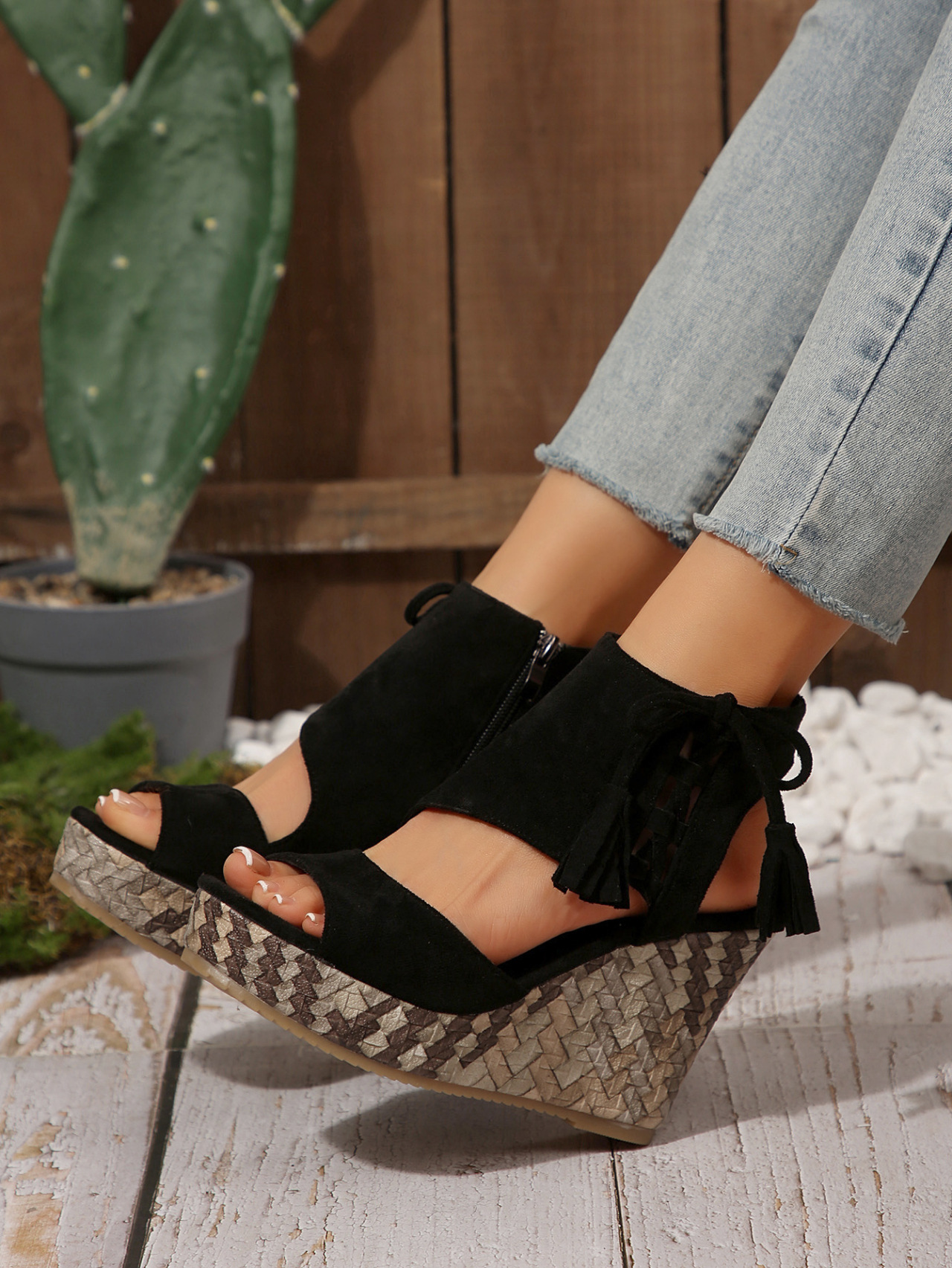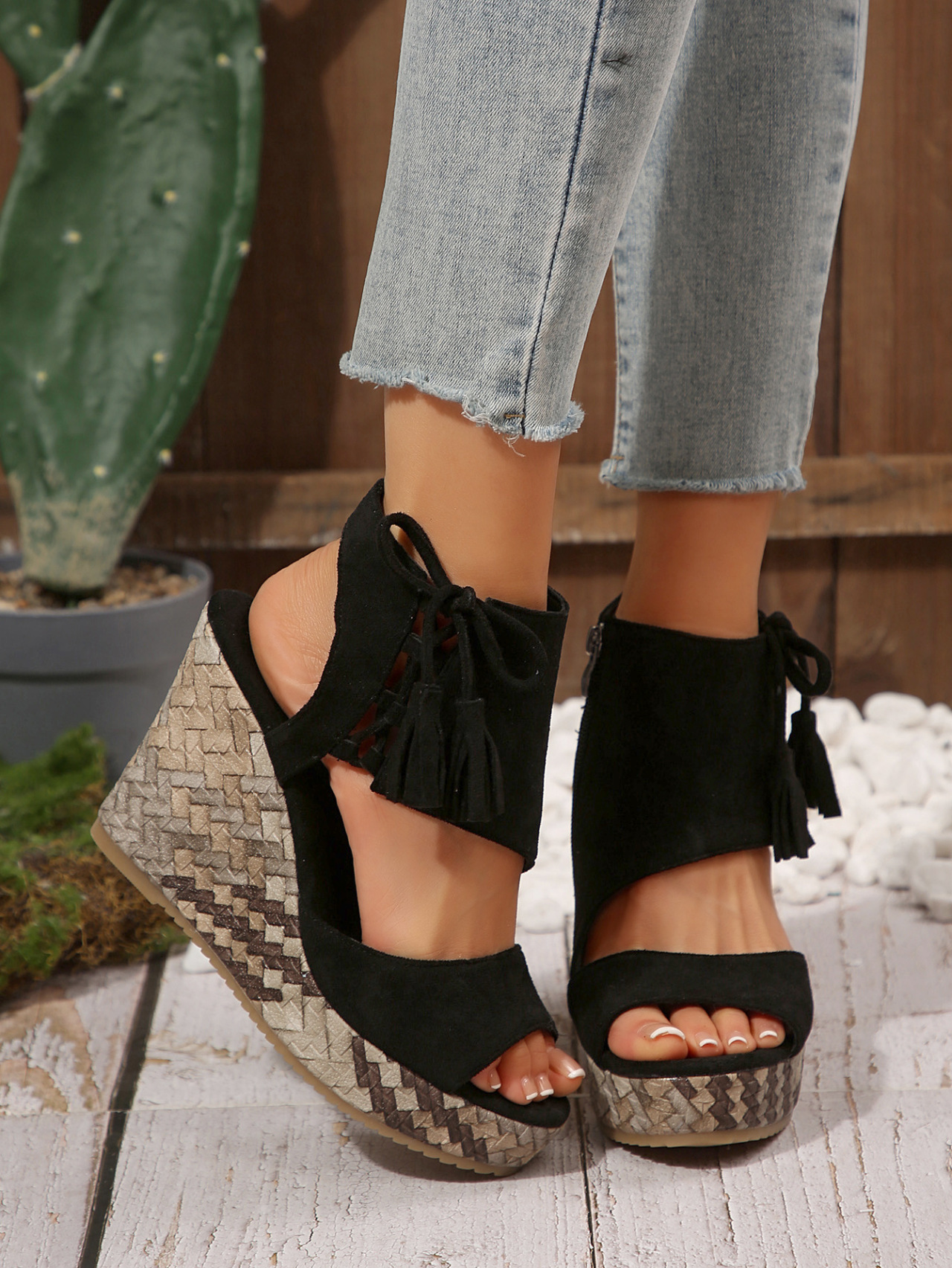 여성을위한 크로스 보더 대형 웨지 샌들 2025 여름 술 하이힐 피쉬 입 플랫폼 바닥 패션 겉옷 유럽과 미국 샌들