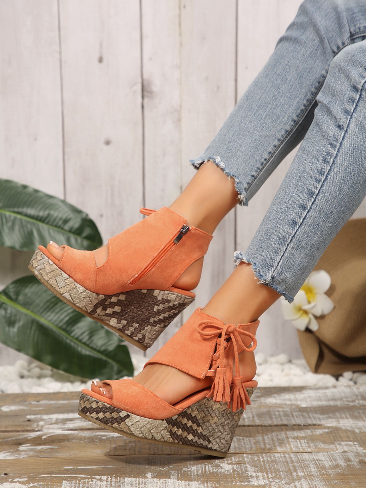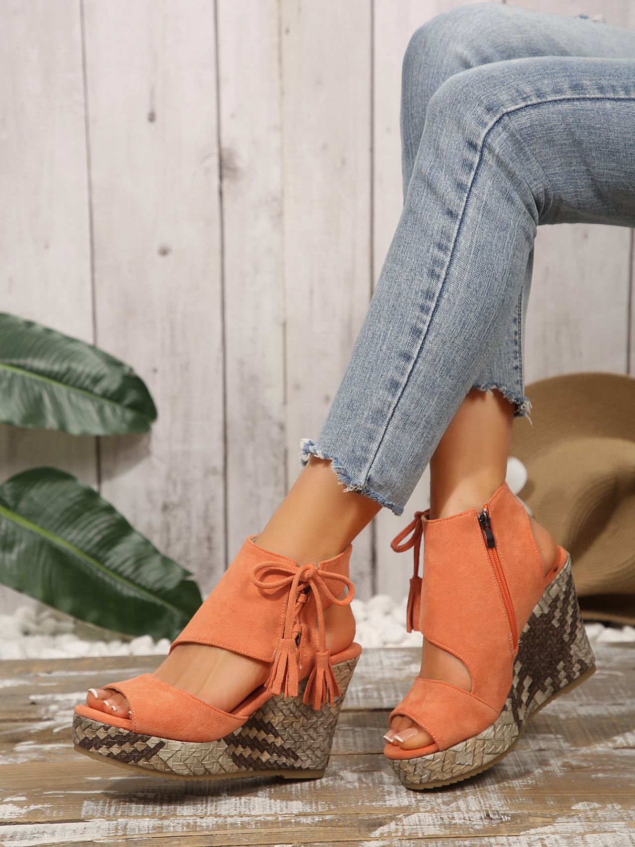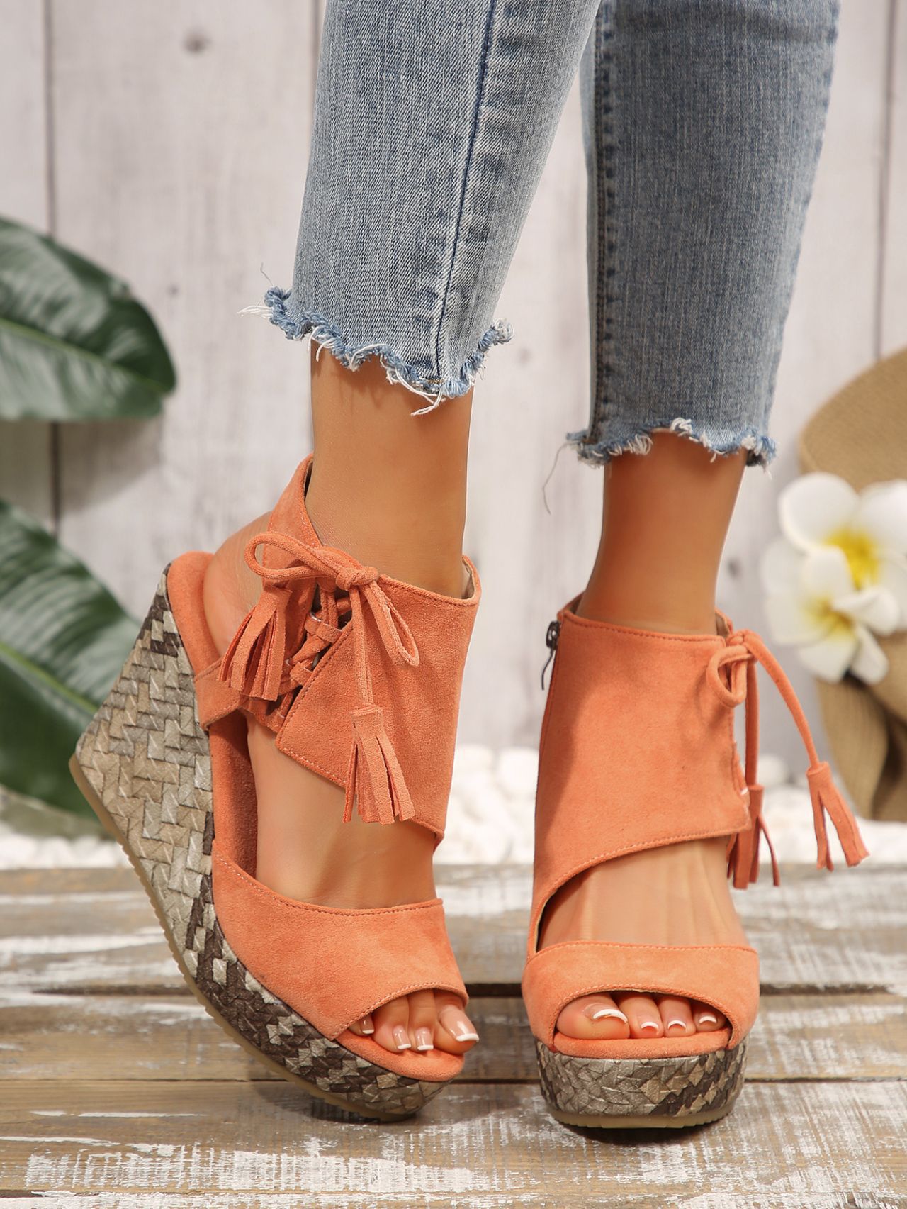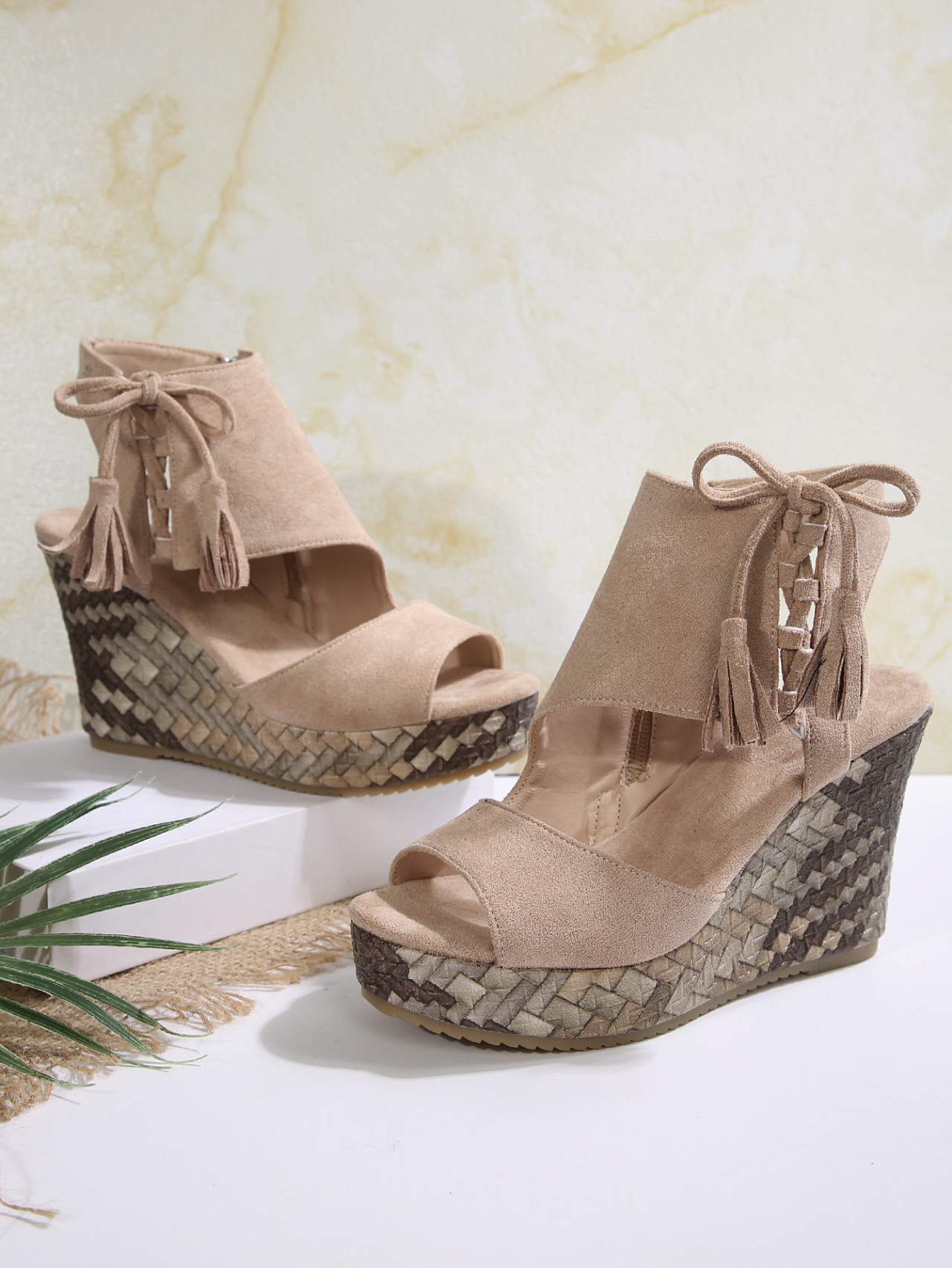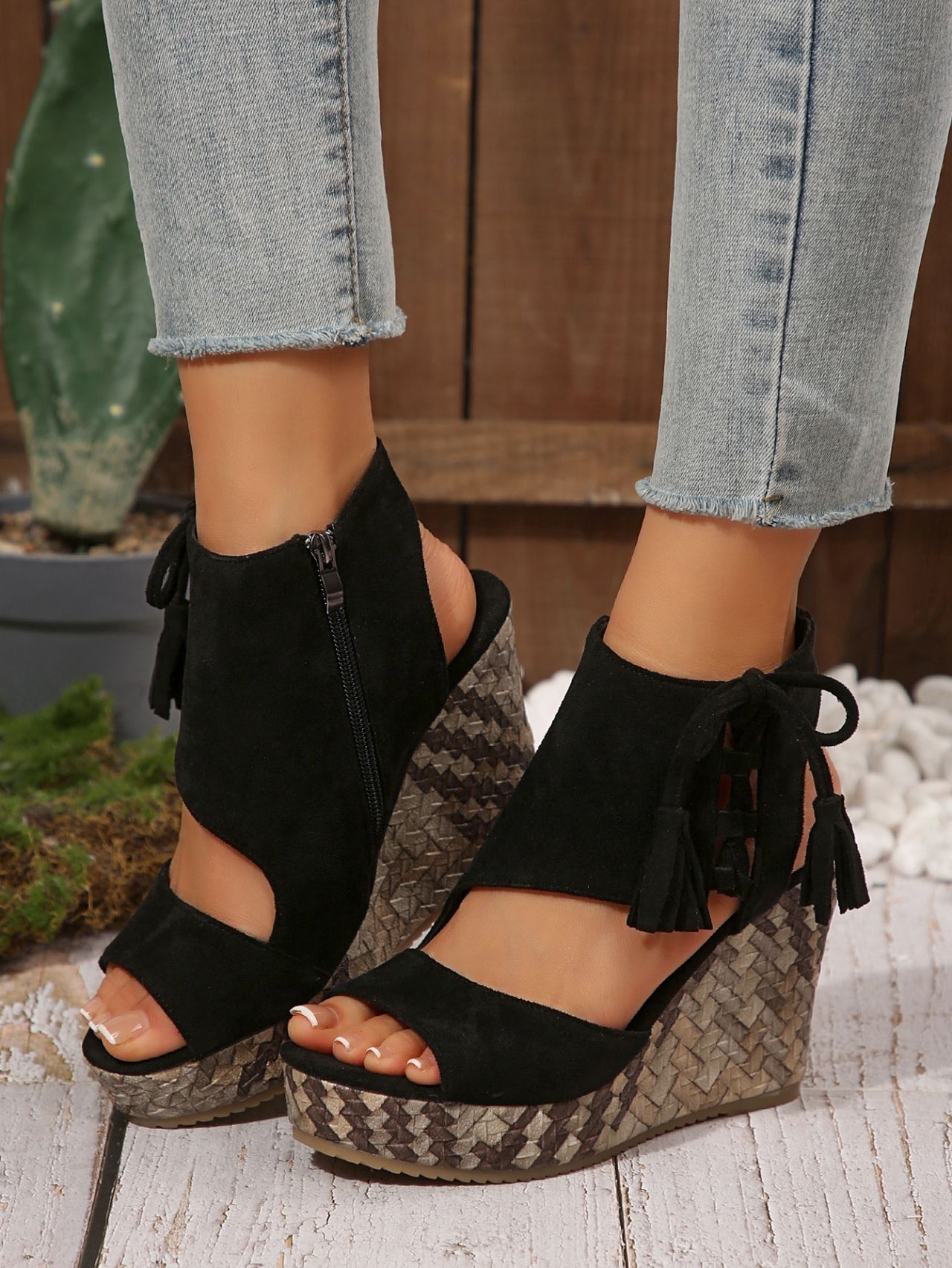 여성을위한 크로스 보더 대형 웨지 샌들 2025 여름 술 하이힐 피쉬 입 플랫폼 바닥 패션 겉옷 유럽과 미국 샌들