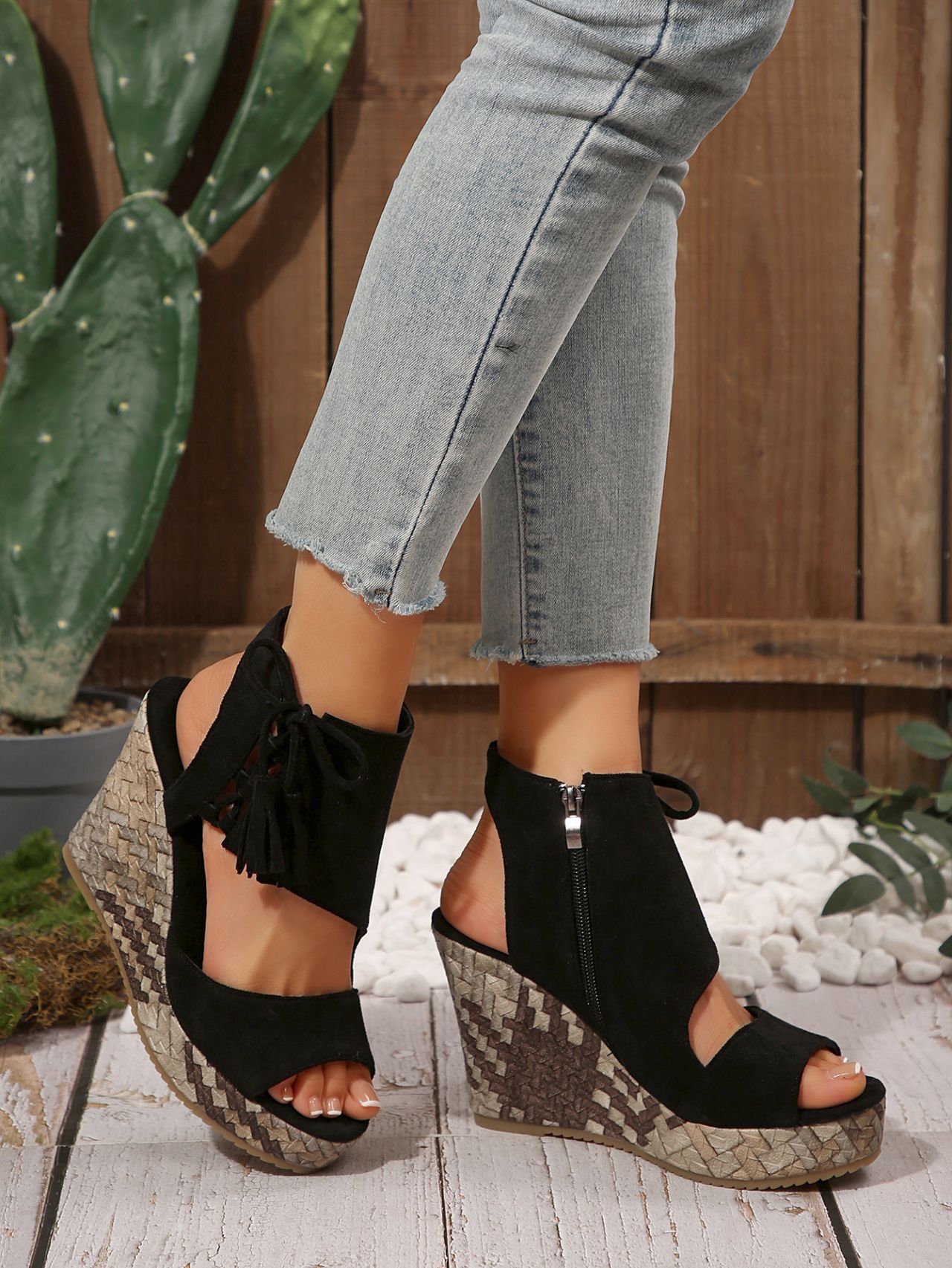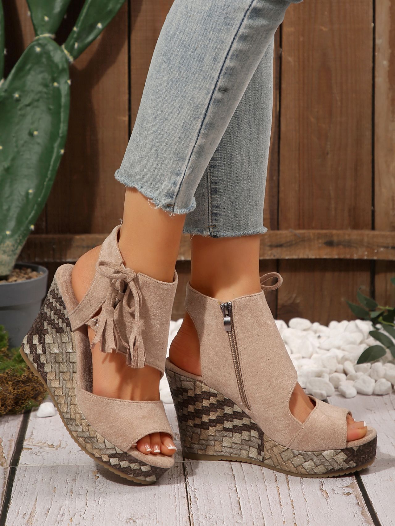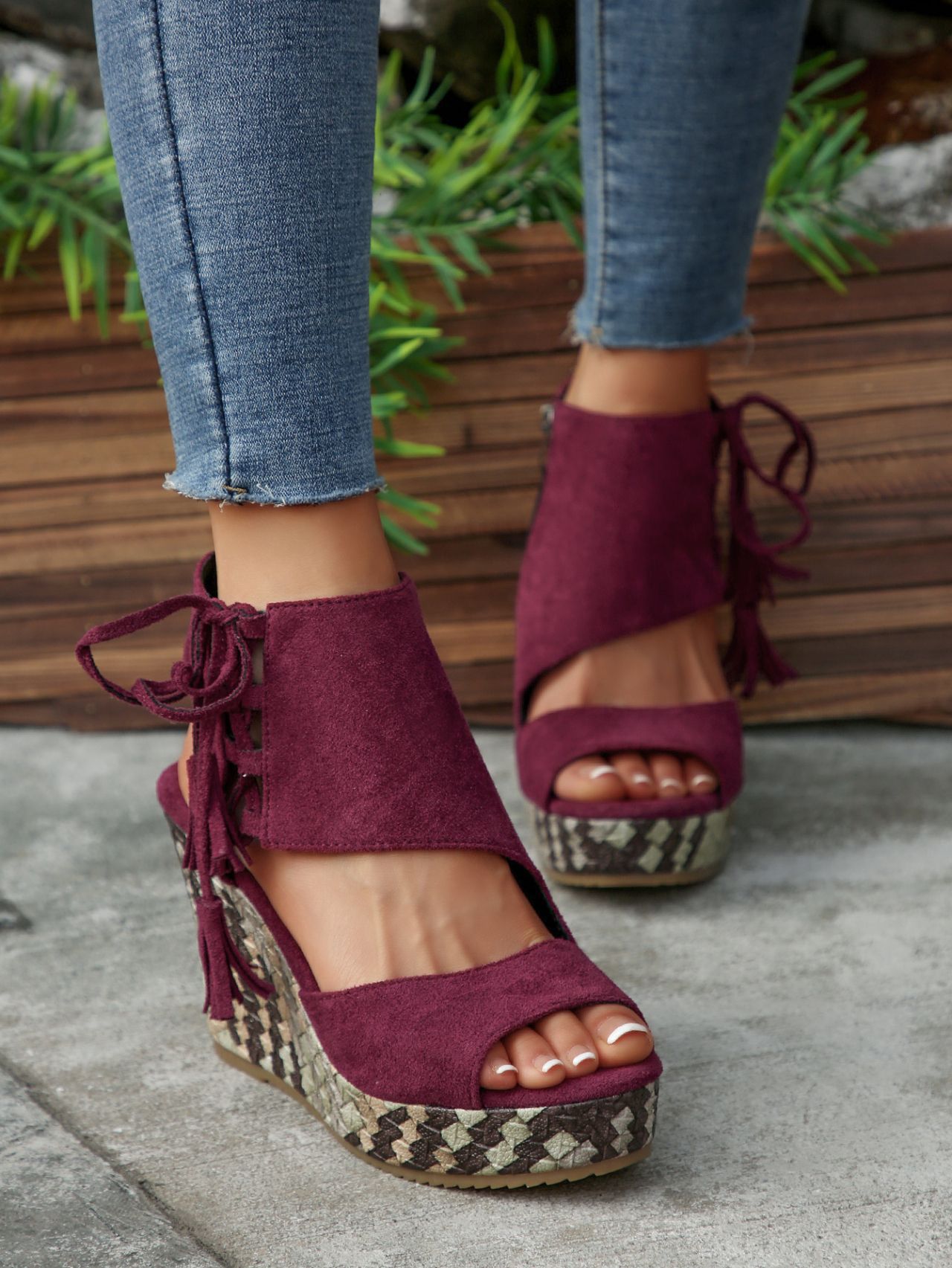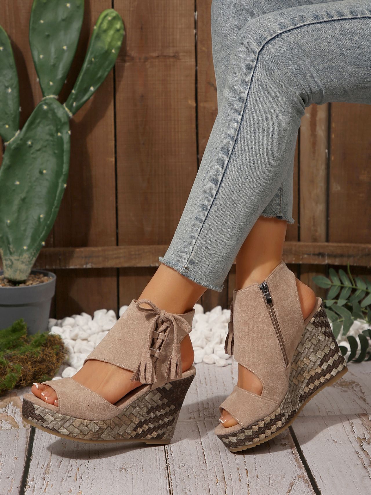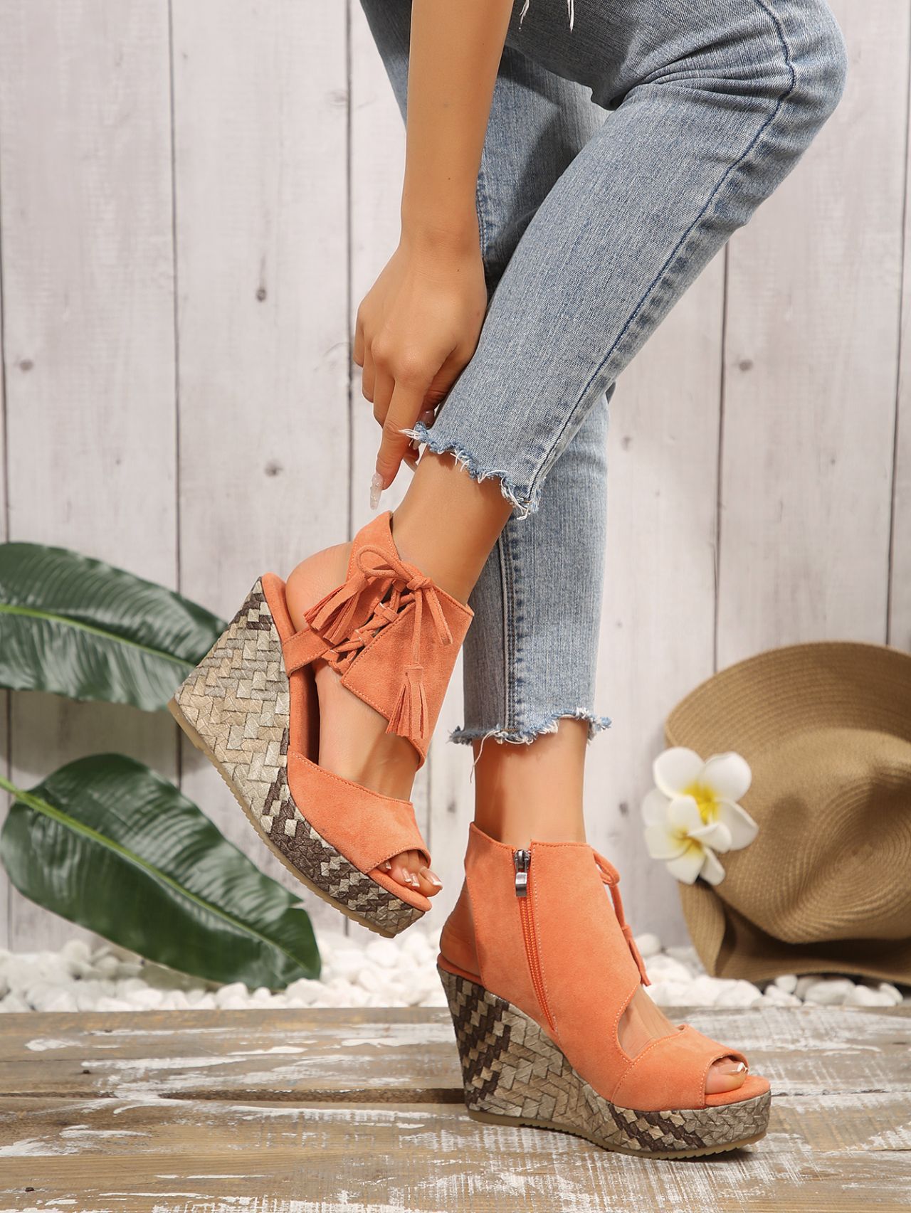 여성을위한 크로스 보더 대형 웨지 샌들 2025 여름 술 하이힐 피쉬 입 플랫폼 바닥 패션 겉옷 유럽과 미국 샌들