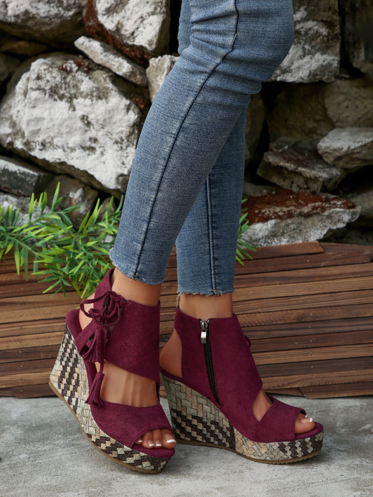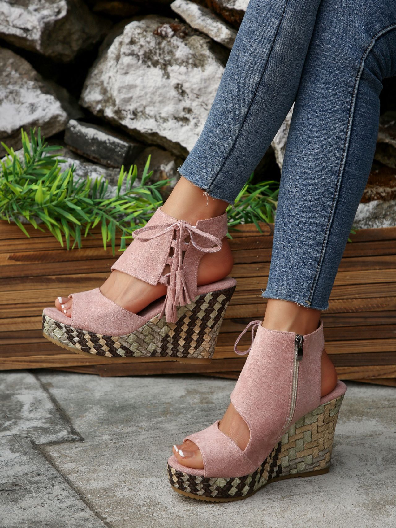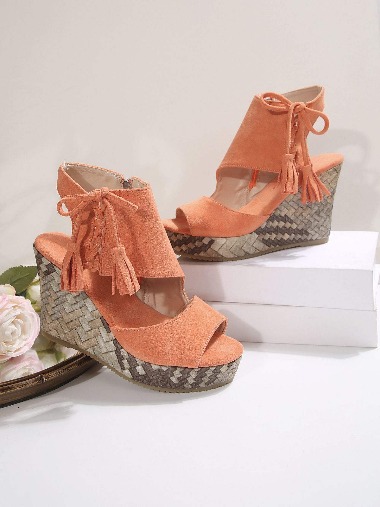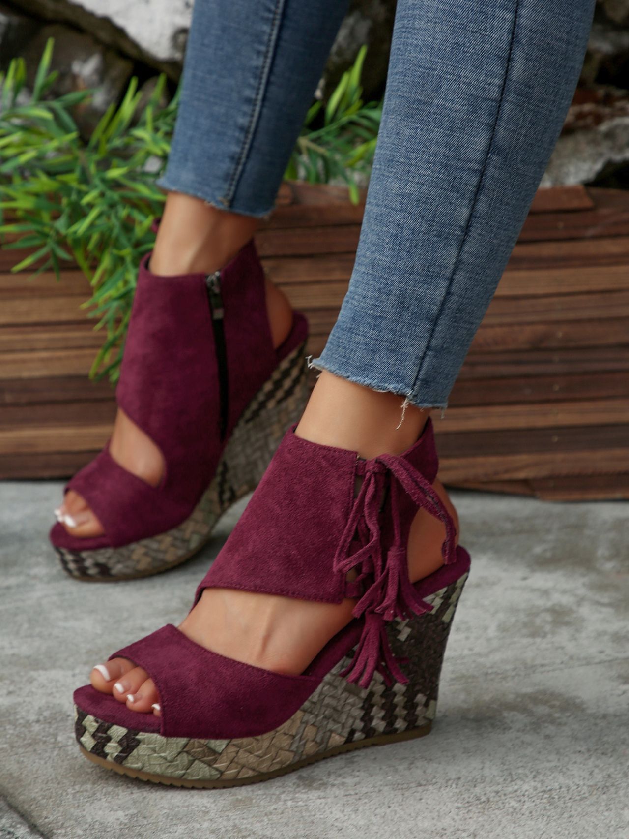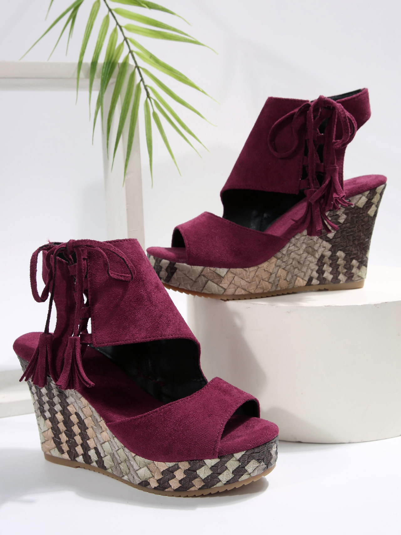 여성을위한 크로스 보더 대형 웨지 샌들 2025 여름 술 하이힐 피쉬 입 플랫폼 바닥 패션 겉옷 유럽과 미국 샌들