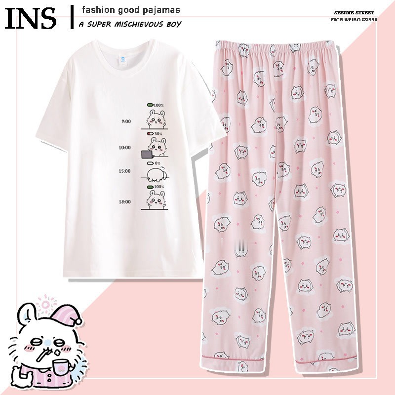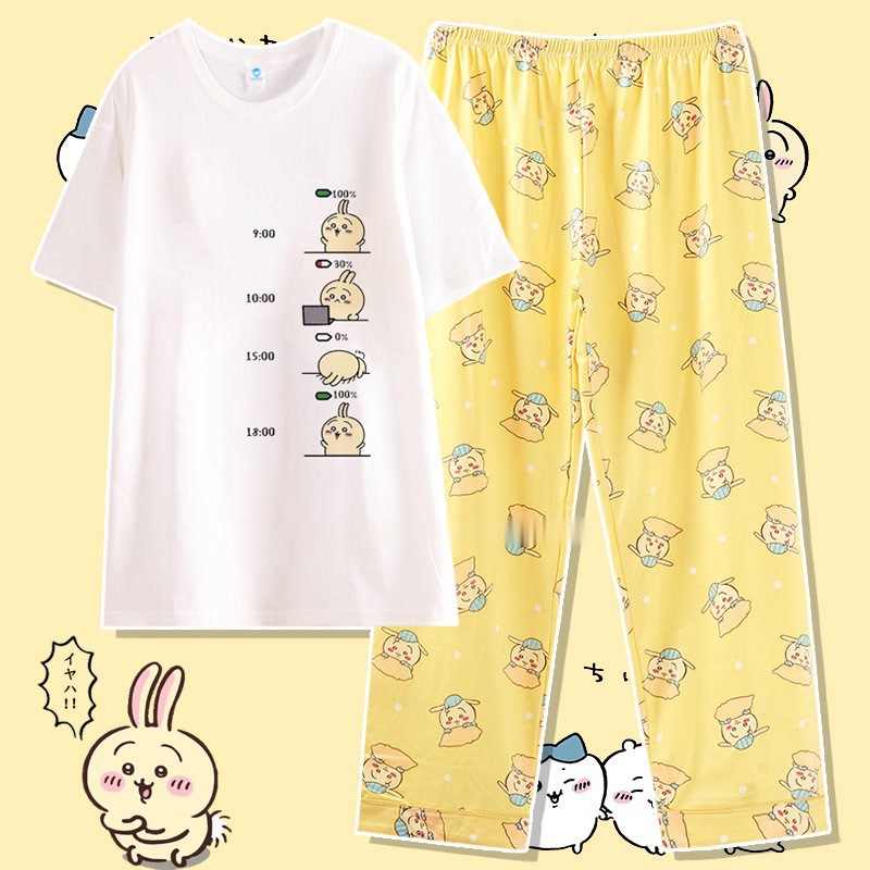 Chiikawa 파자마 여름 코튼 라운드 넥 짧은 소매 바지 느슨한 만화 Jiyka 와우 홈 옷
