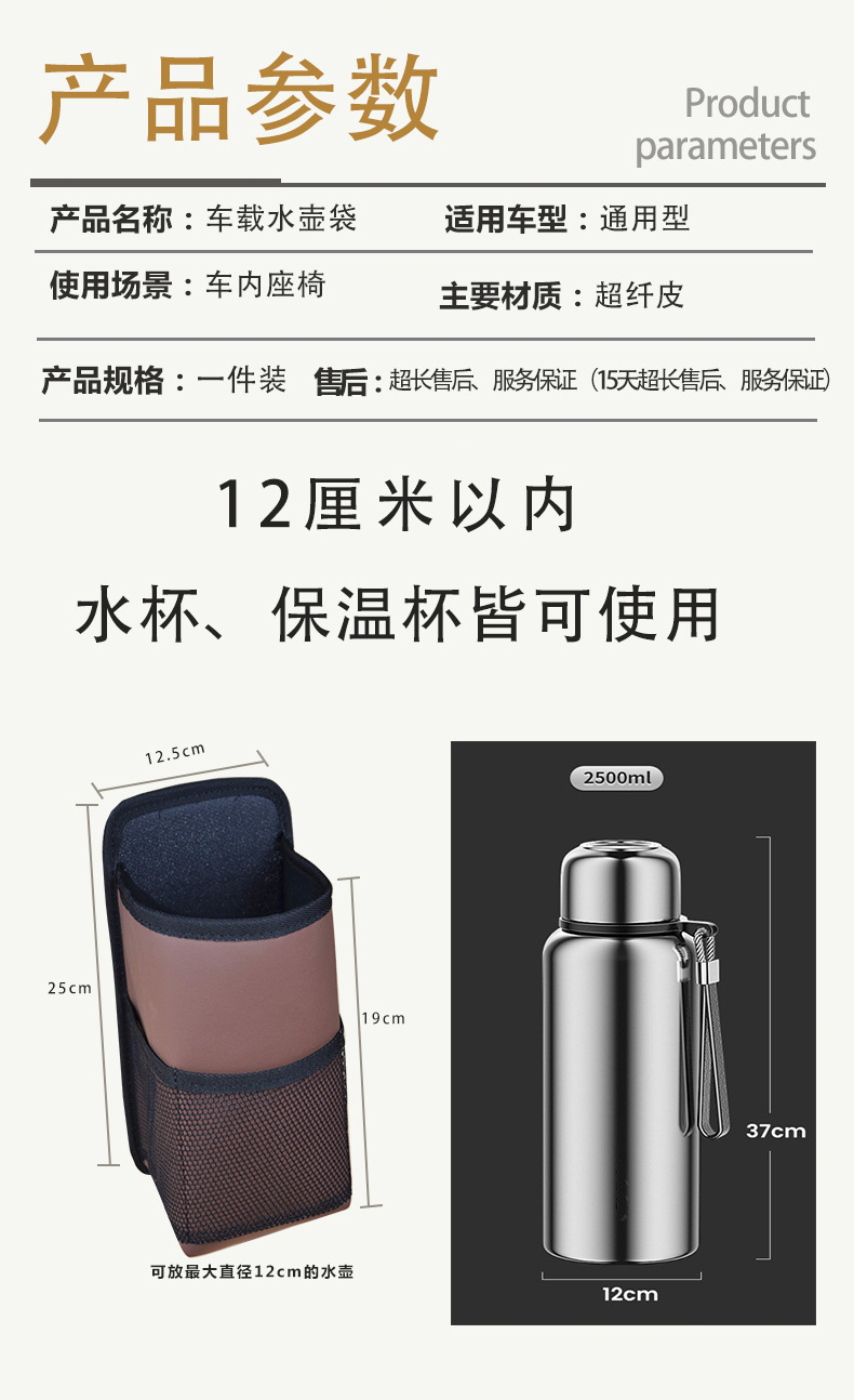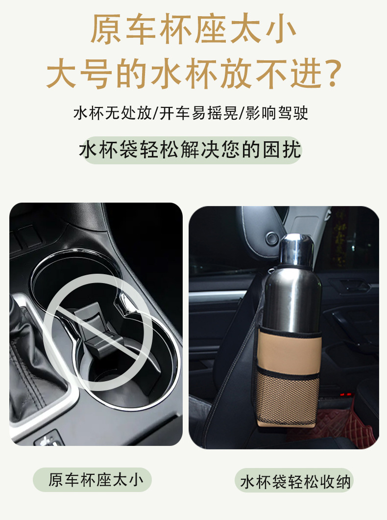자동차 대형 물컵 가방, 좌석 측면 걸이 주전자 커버, 고정 시트, 차량용 찻잔 홀더, 보온병 홀더, 인테리어