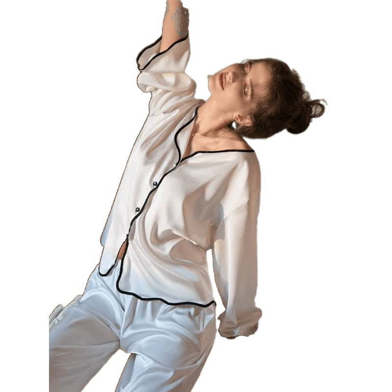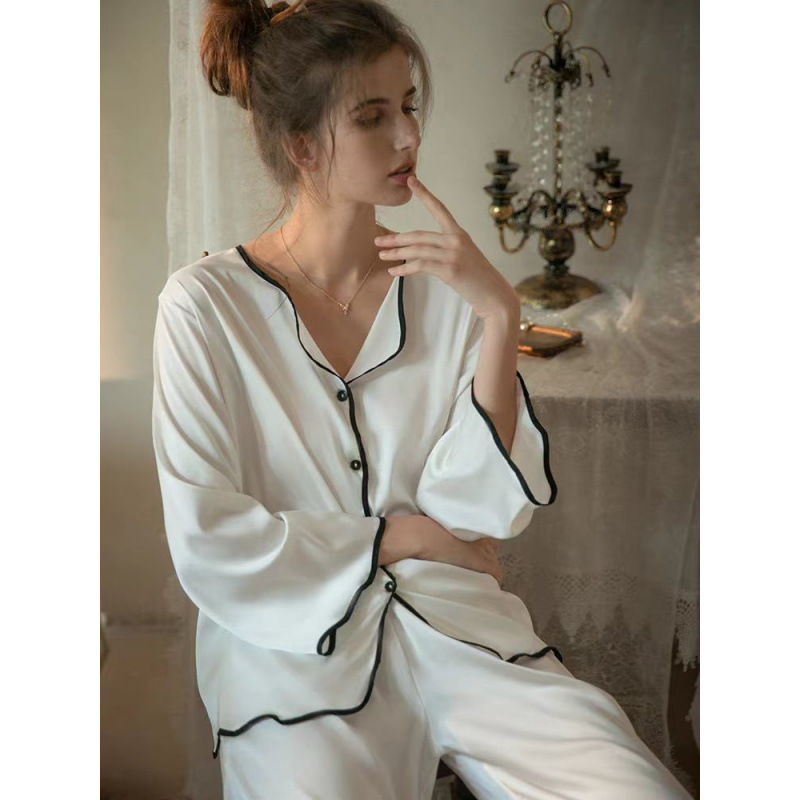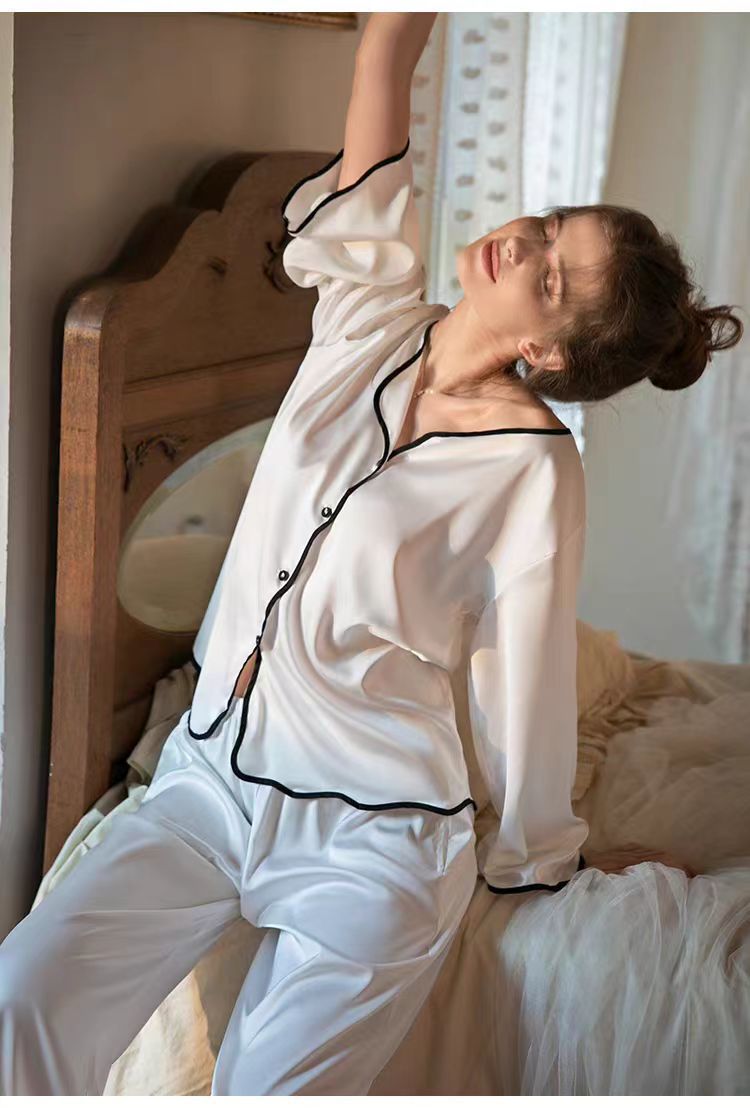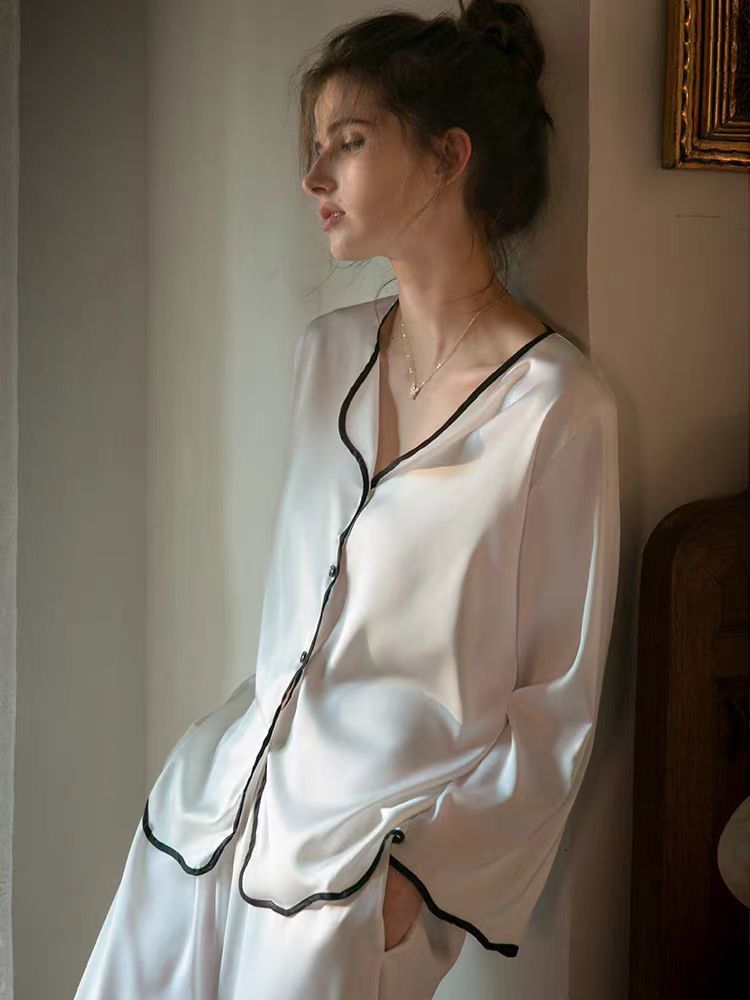 9송이 꽃 고급 멀버리 실크 잠옷, 심플하고 얇은, 야외에서 착용 가능한 캐주얼 홈웨어 여성용 투피스 슈트