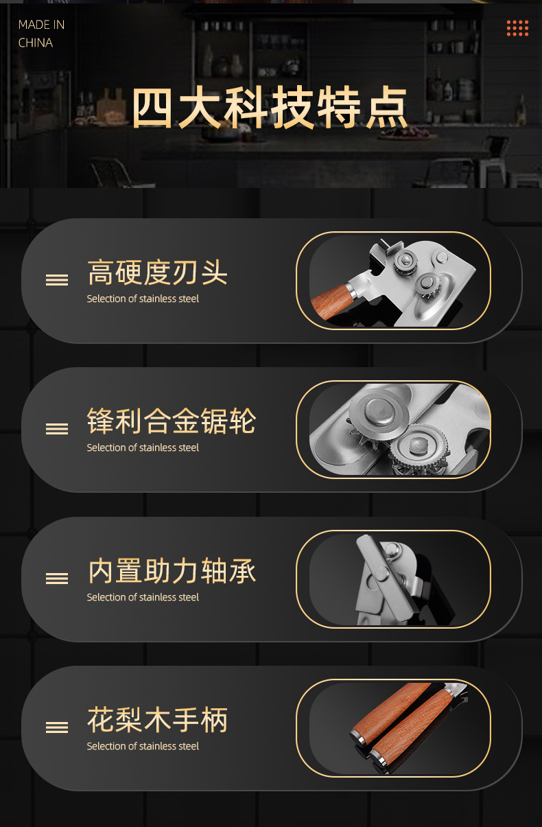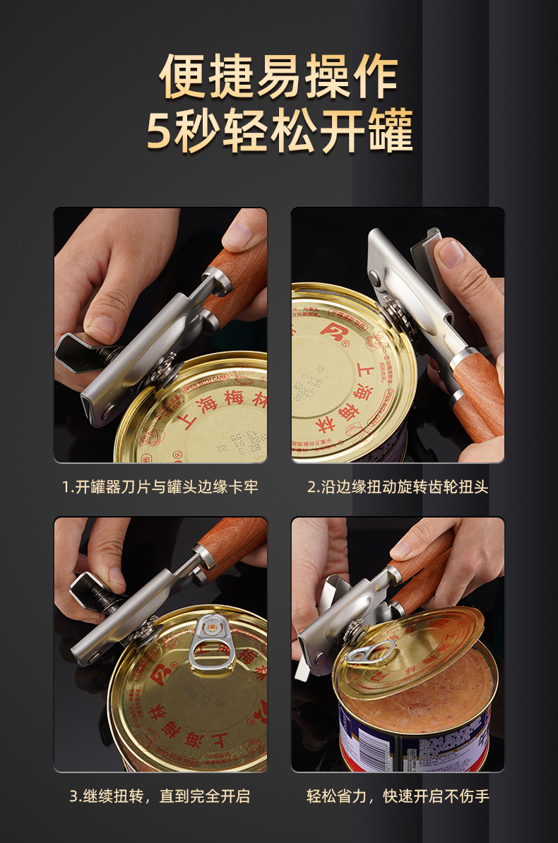 304 스테인레스 스틸 캔 오프너, 노동 절약형 미끄럼 방지 병따개, 주방 가정용 이중 목적 다기능 뚜껑 오프너