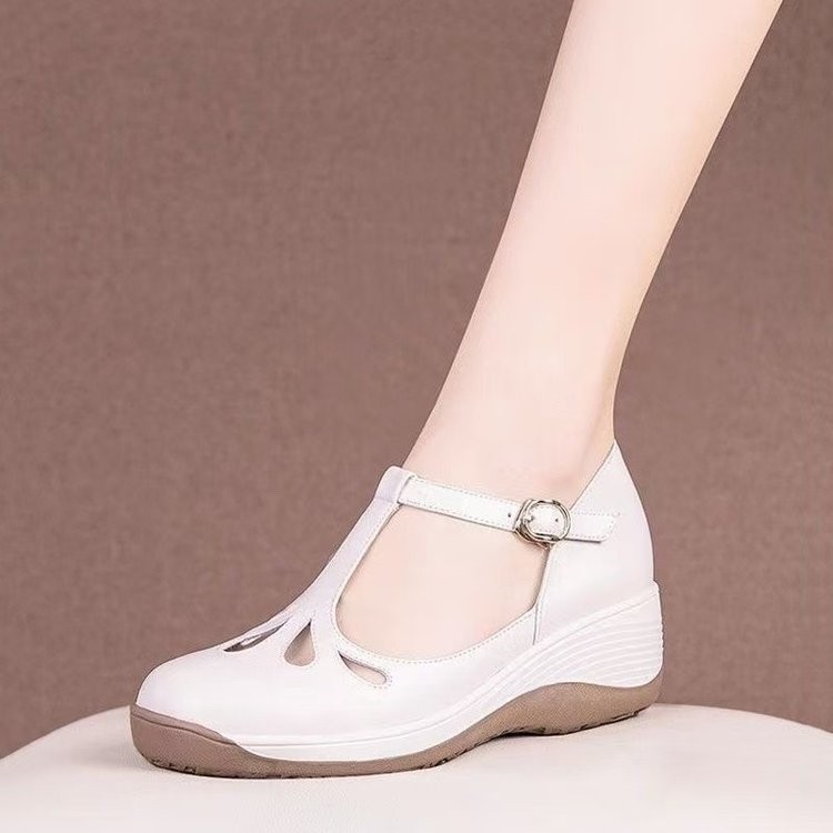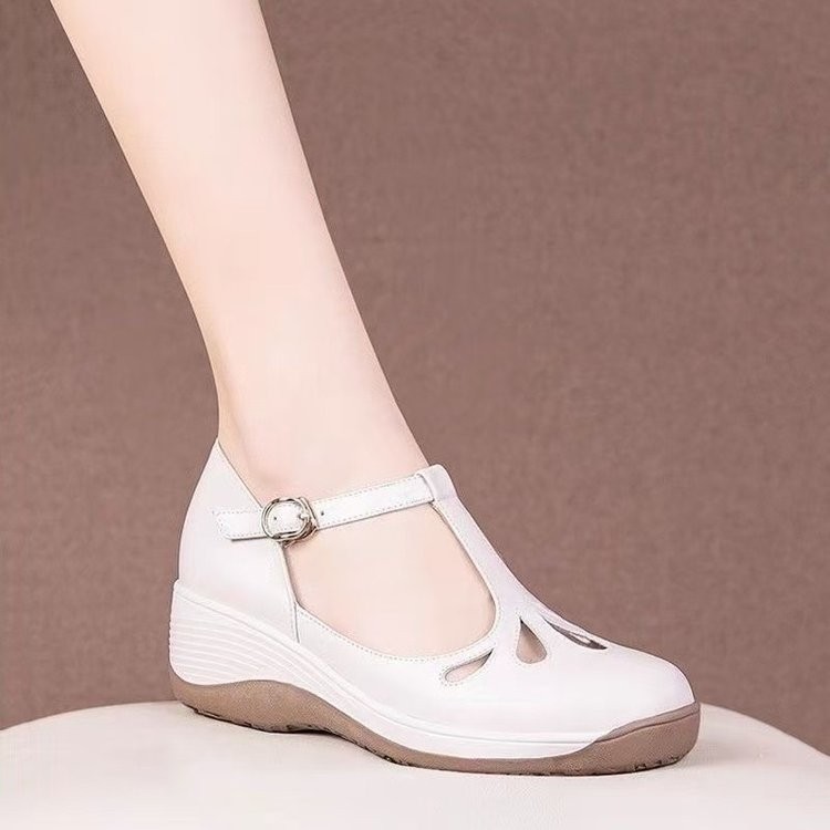 2025년 여성을 위한 새로운 크로스보더 웨지힐 싱글 슈즈, 두꺼운 밑창 플랫폼, 부드러운 가죽, 편안하고 다재다능한 캐주얼 엄마 신발