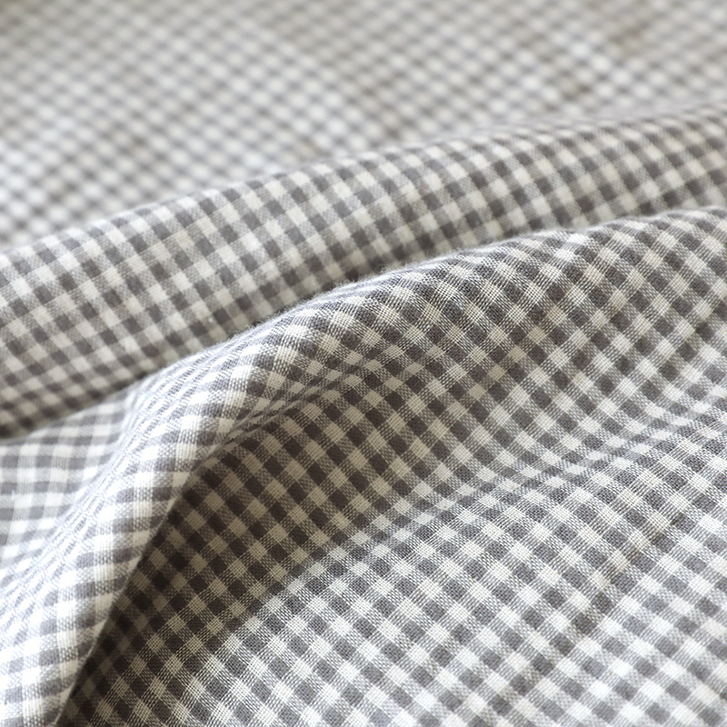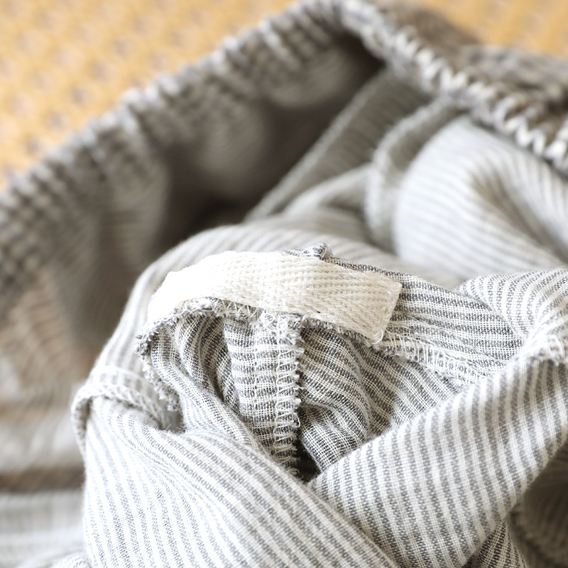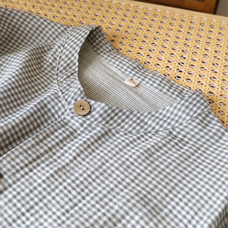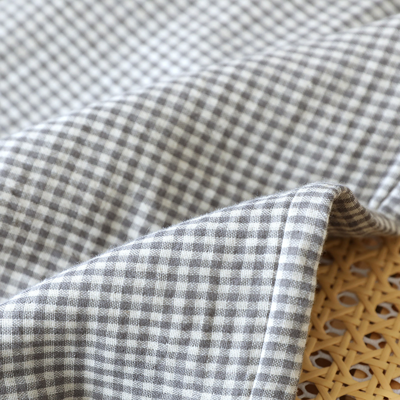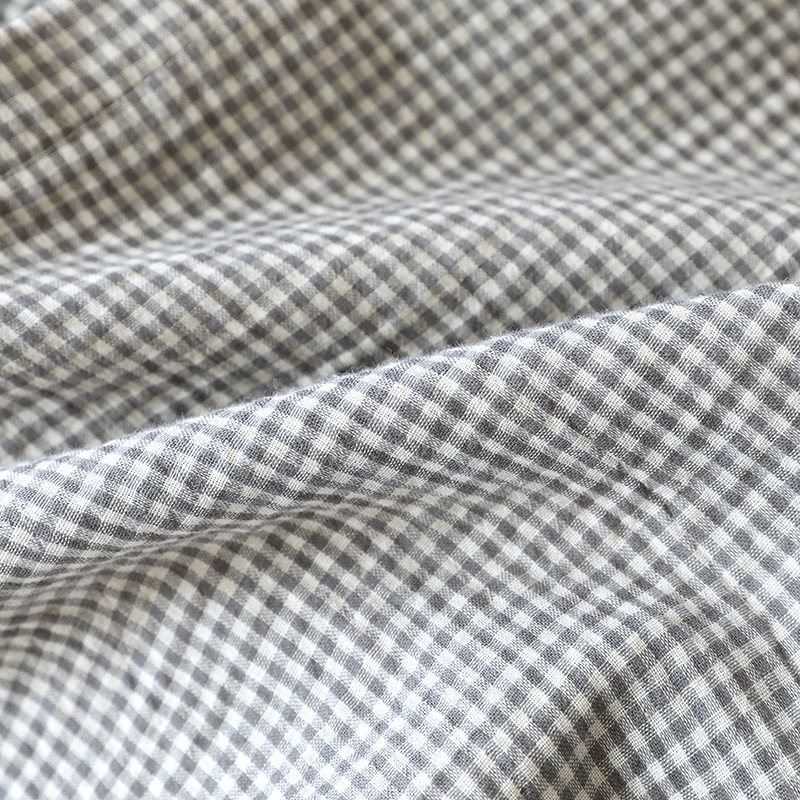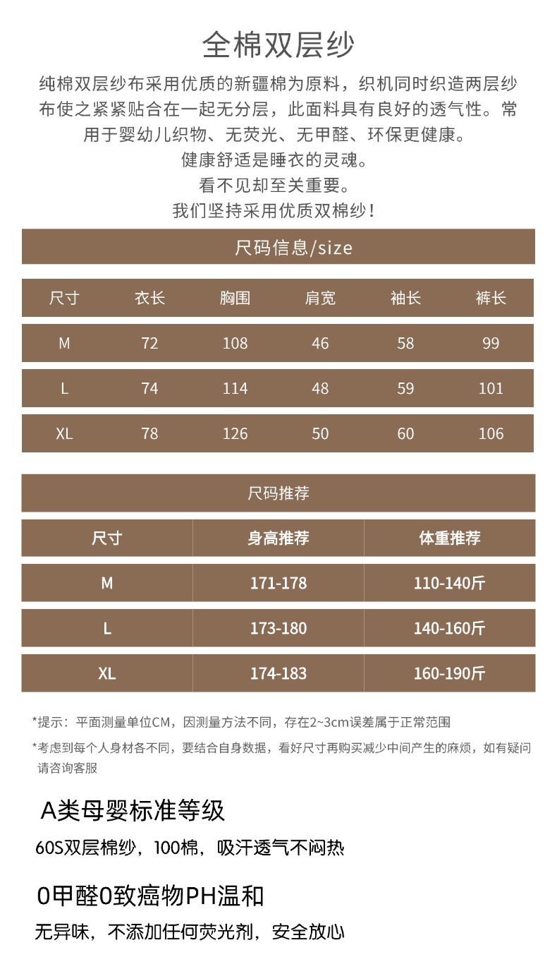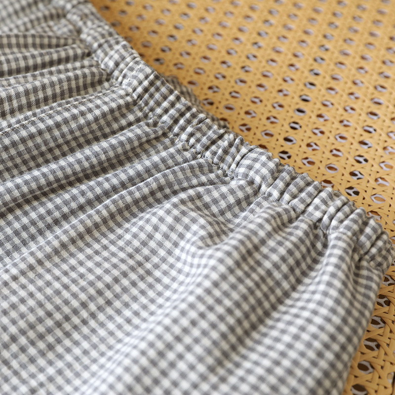 Wen Lan 남성용 퓨어 코튼 더블 레이어 원사 염색 홈 파자마 라운드 넥 간단한 체크 무늬 통기성 긴팔 바지 커버