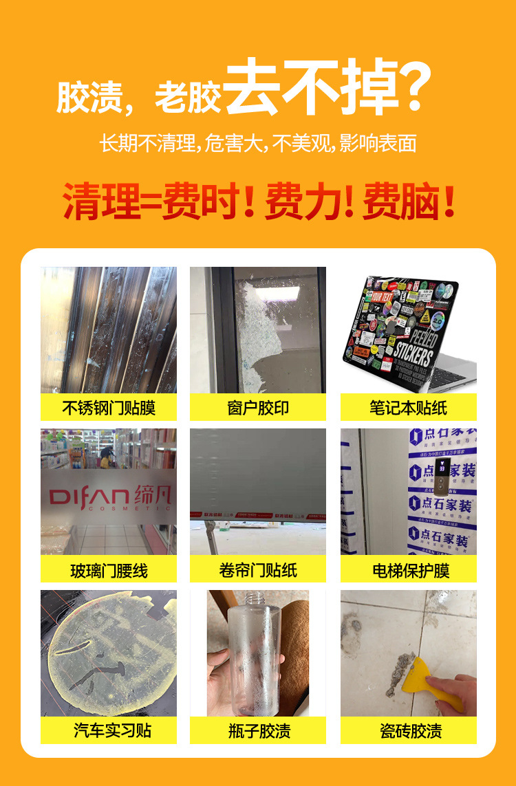 강력한 접착제 제거제, 가정용 다기능 접착제 제거제, 자동차 유리 건식 접착제, 양면 테스트, 비매품