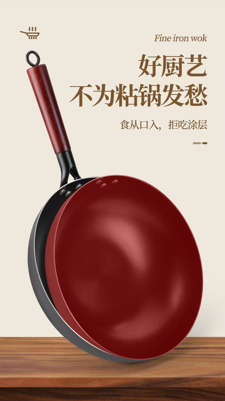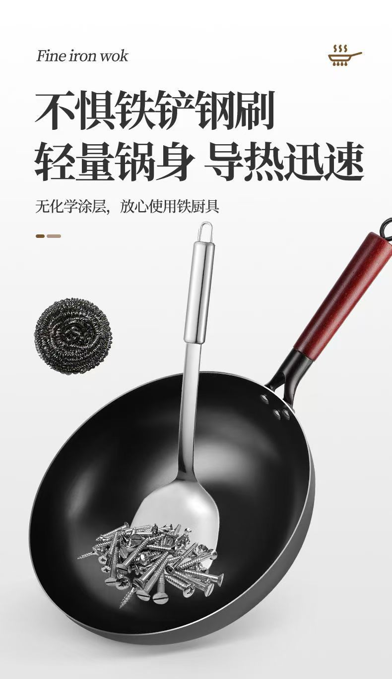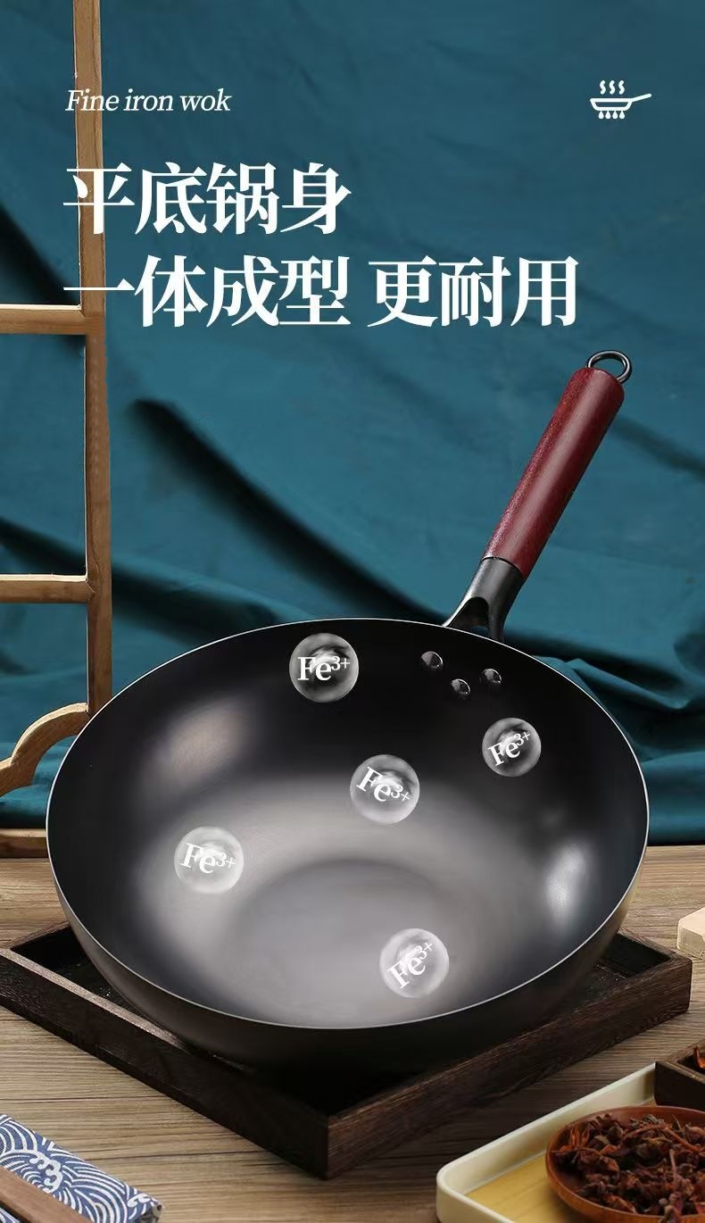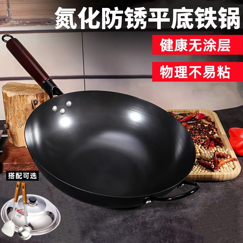 녹 방지 질화물 평평한 바닥 철 냄비 주방 가스 스토브 인덕션 밥솥 범용 코팅되지 않은 붙지 않는 가정용 철 냄비