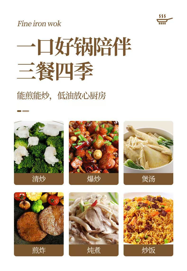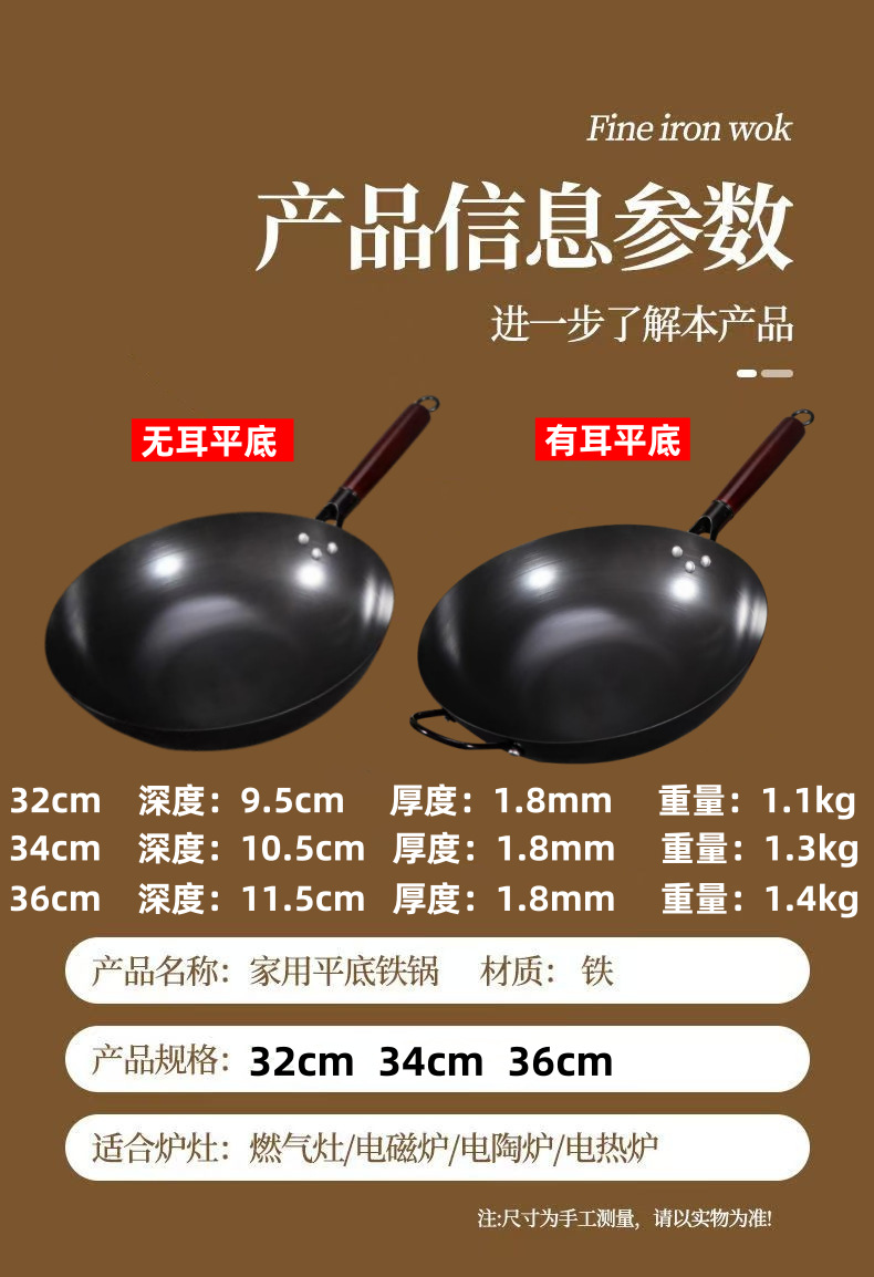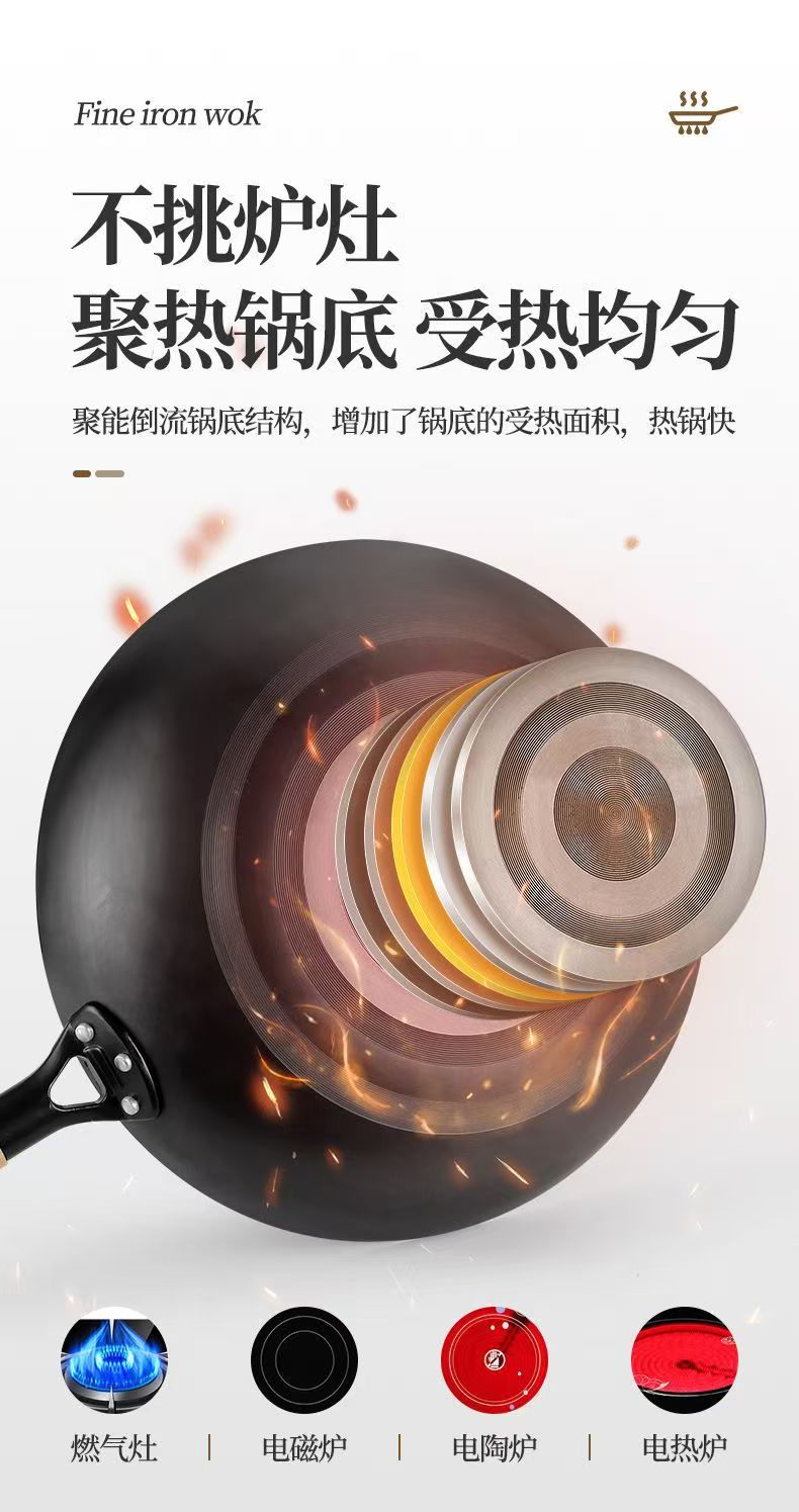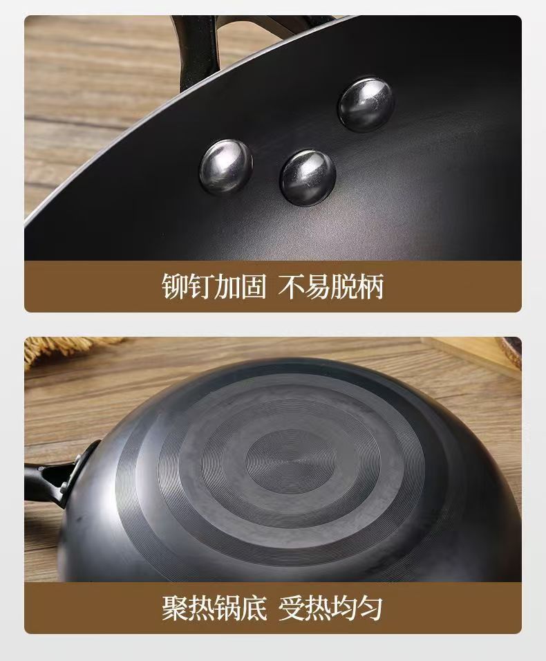 녹 방지 질화물 평평한 바닥 철 냄비 주방 가스 스토브 인덕션 밥솥 범용 코팅되지 않은 붙지 않는 가정용 철 냄비