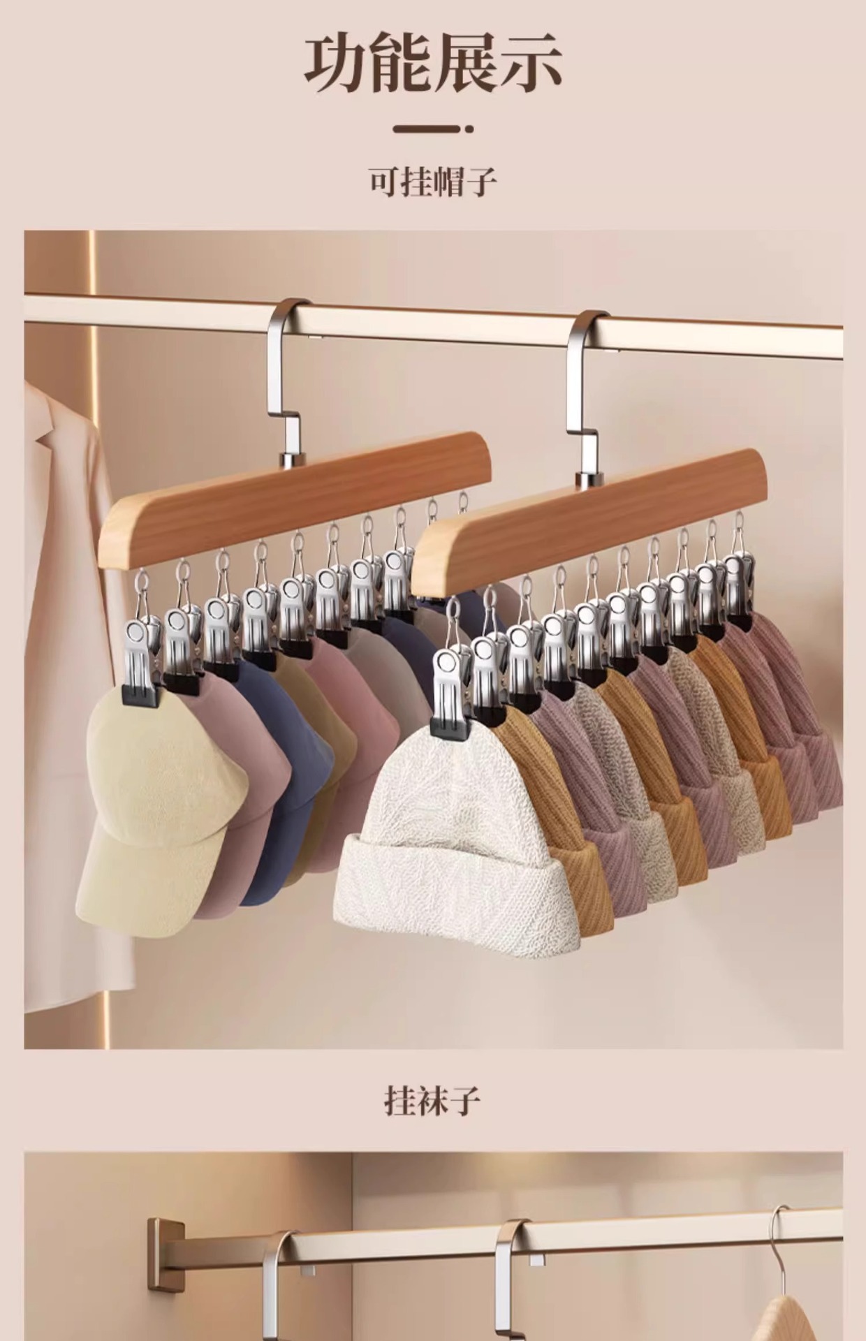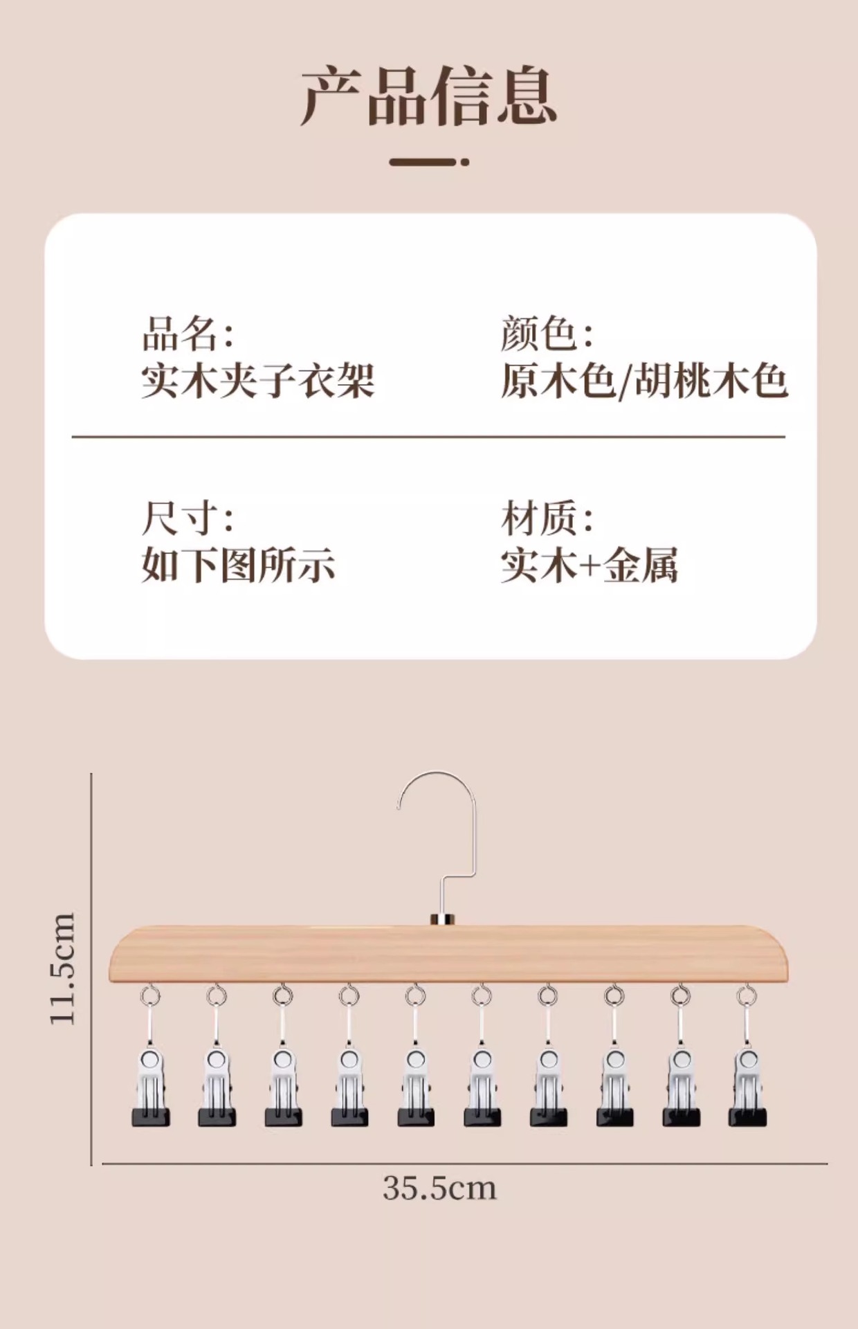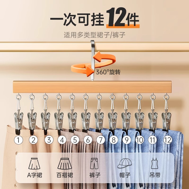 단단한 나무 다기능 12 클립 옷걸이 가정용 속옷 양말 원활한 클립 저장 유물 공장 도매