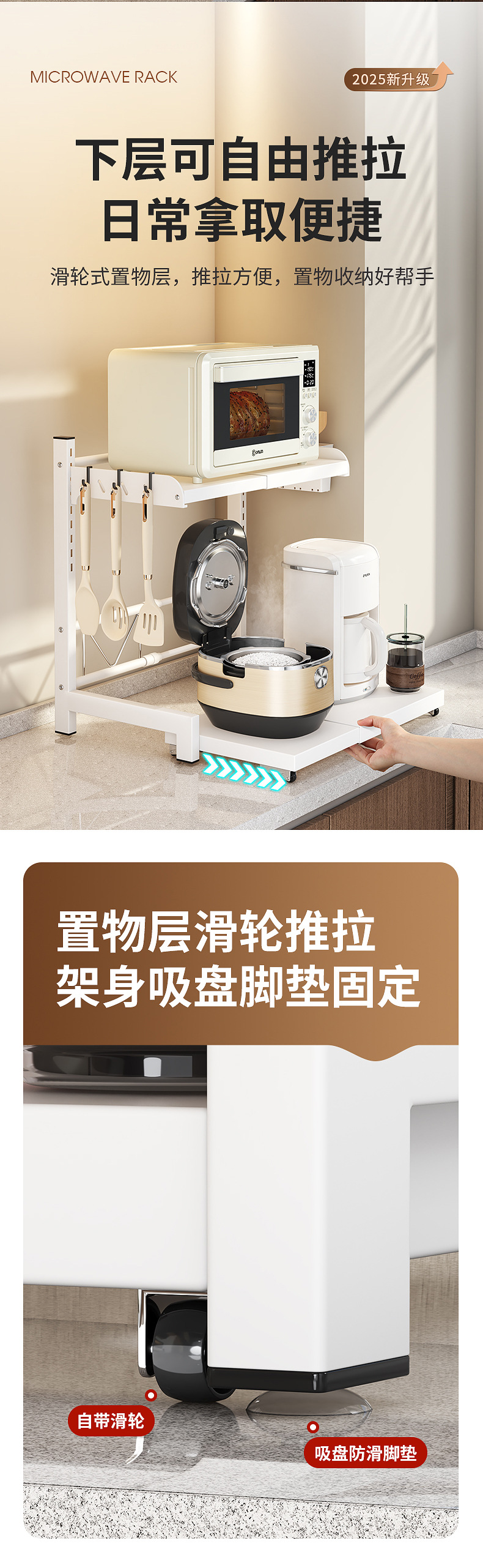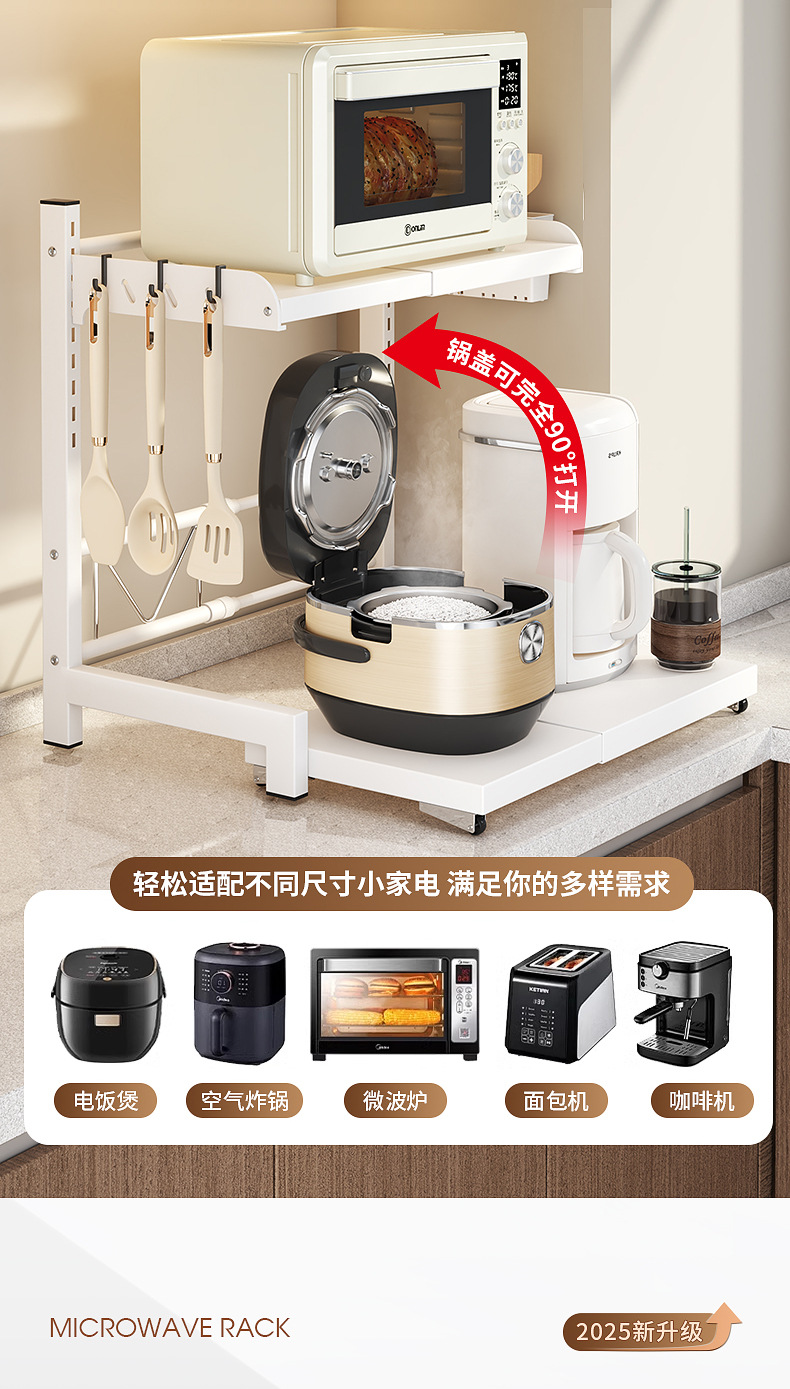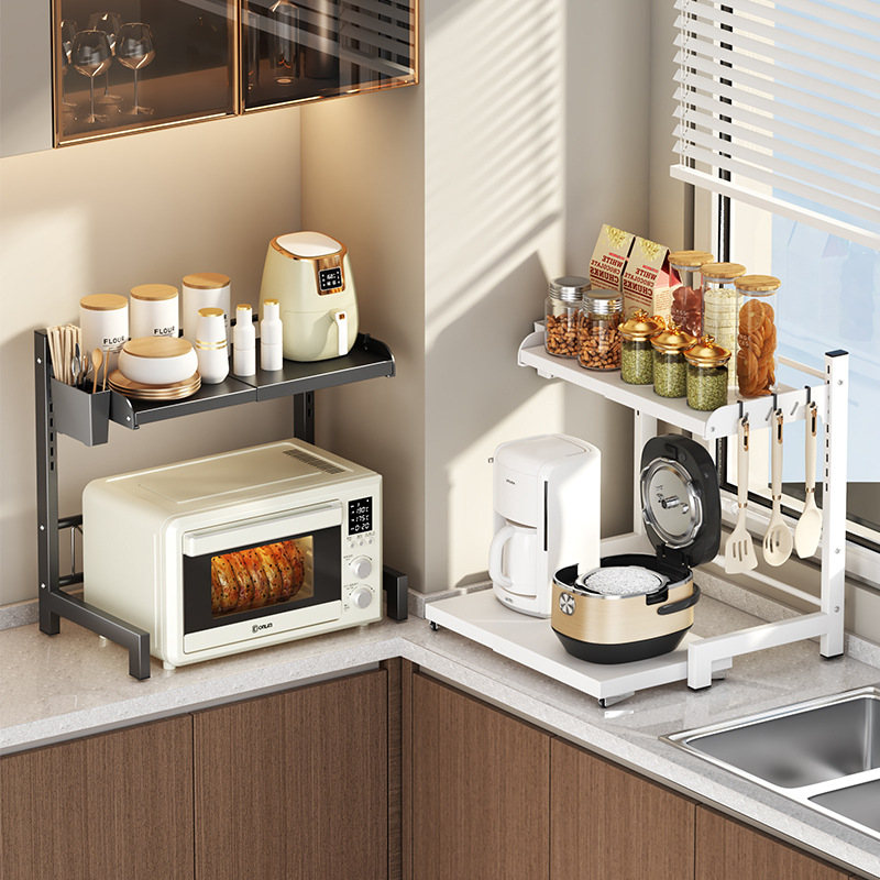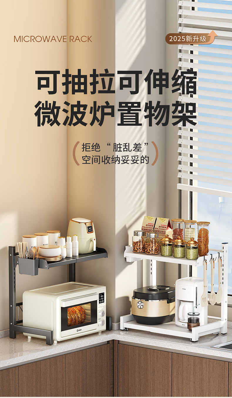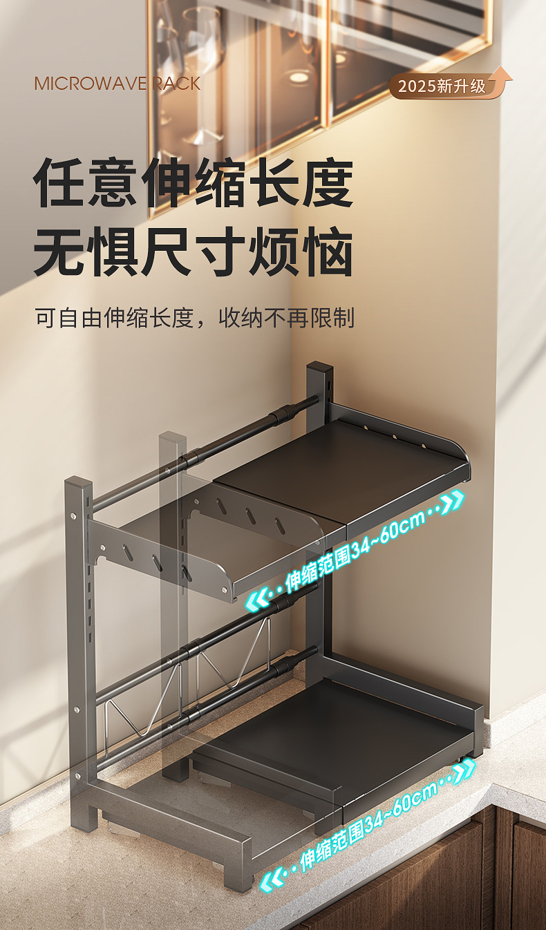 微波炉置物架厨房可伸缩台面多功能烤箱架家用放电饭煲锅一体支架