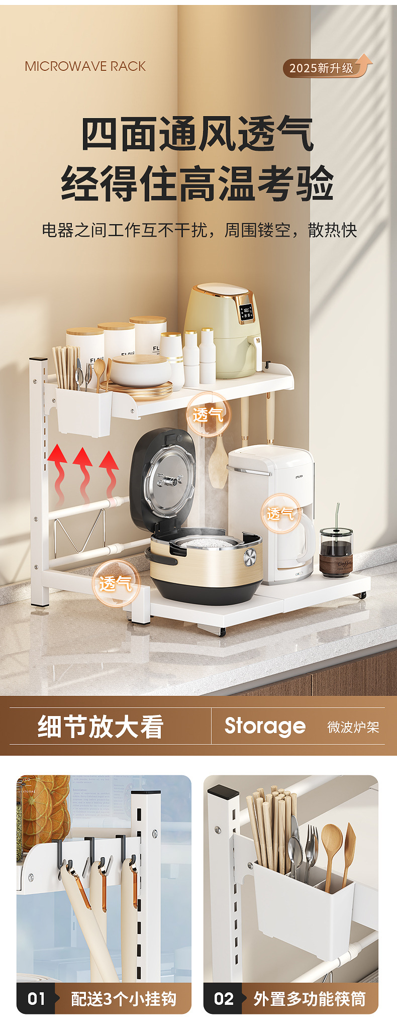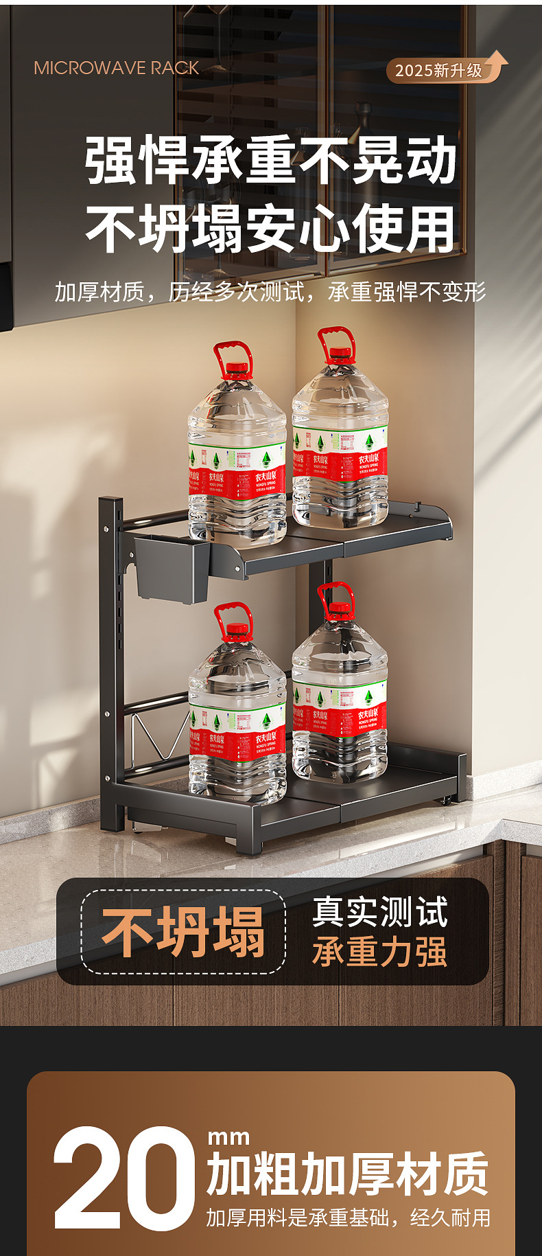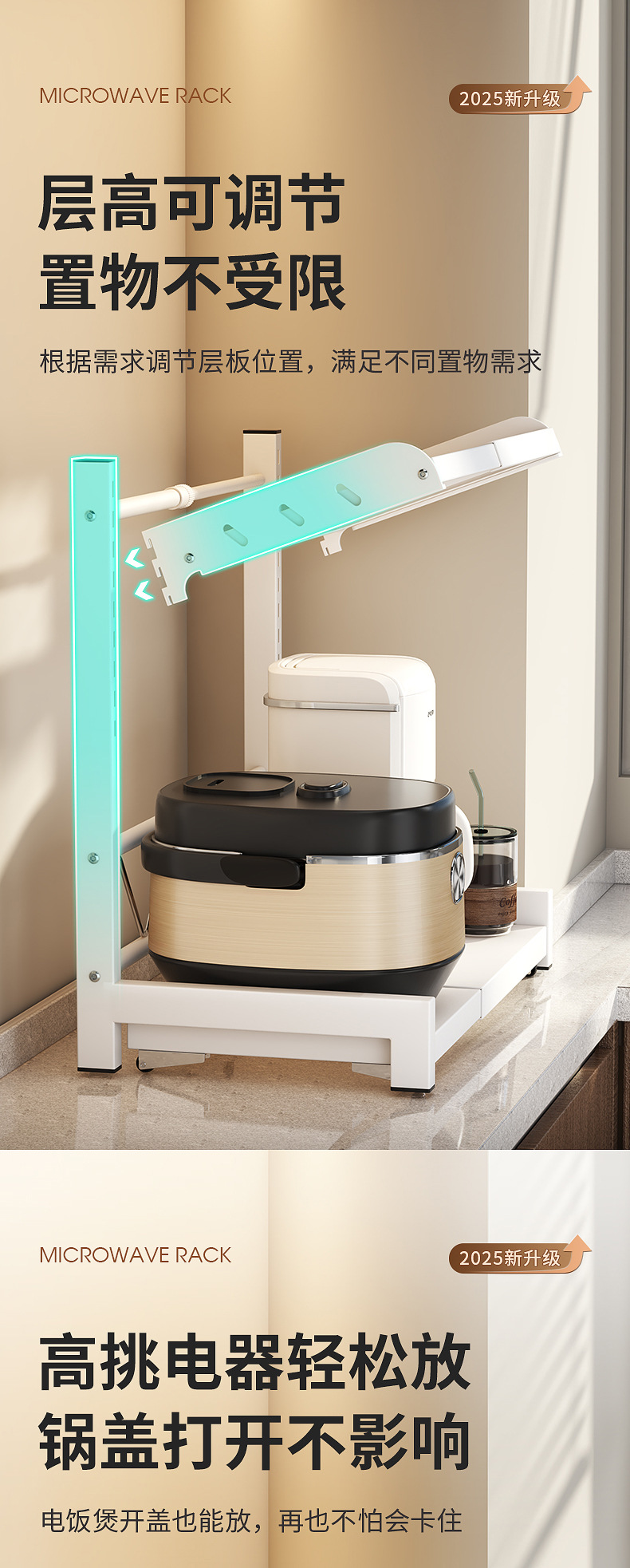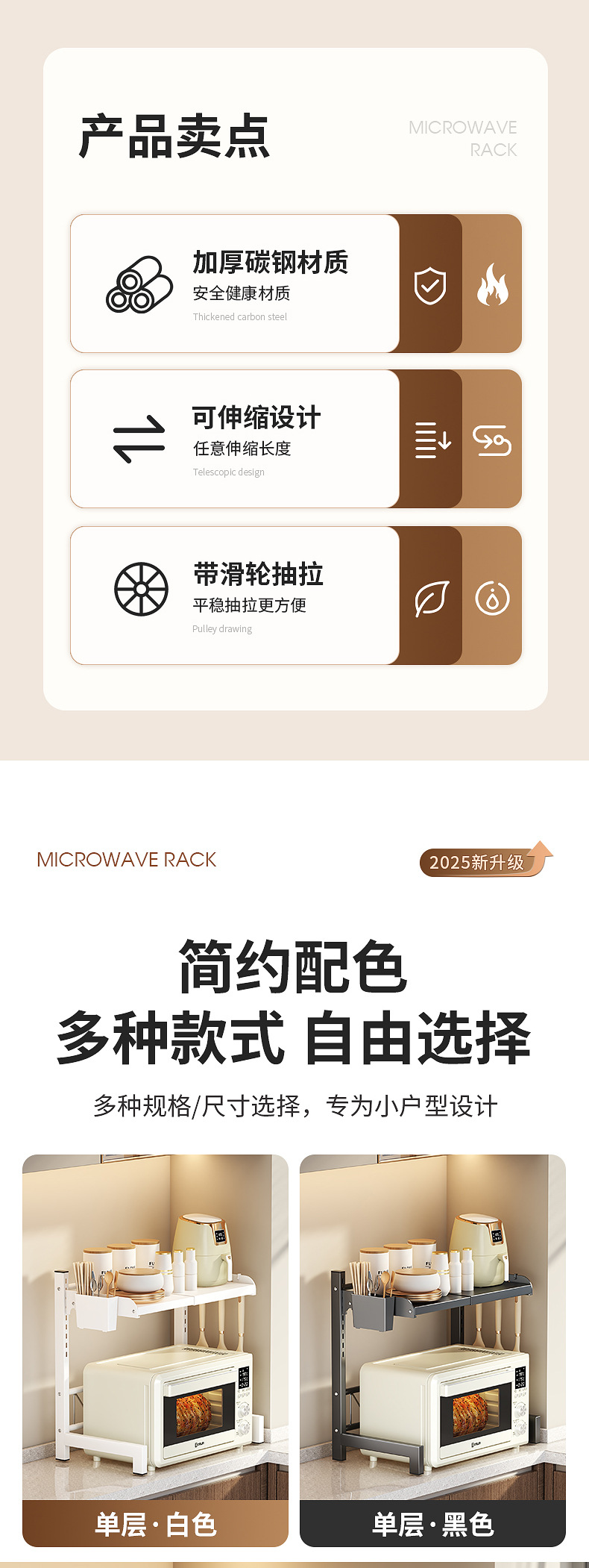 微波炉置物架厨房可伸缩台面多功能烤箱架家用放电饭煲锅一体支架