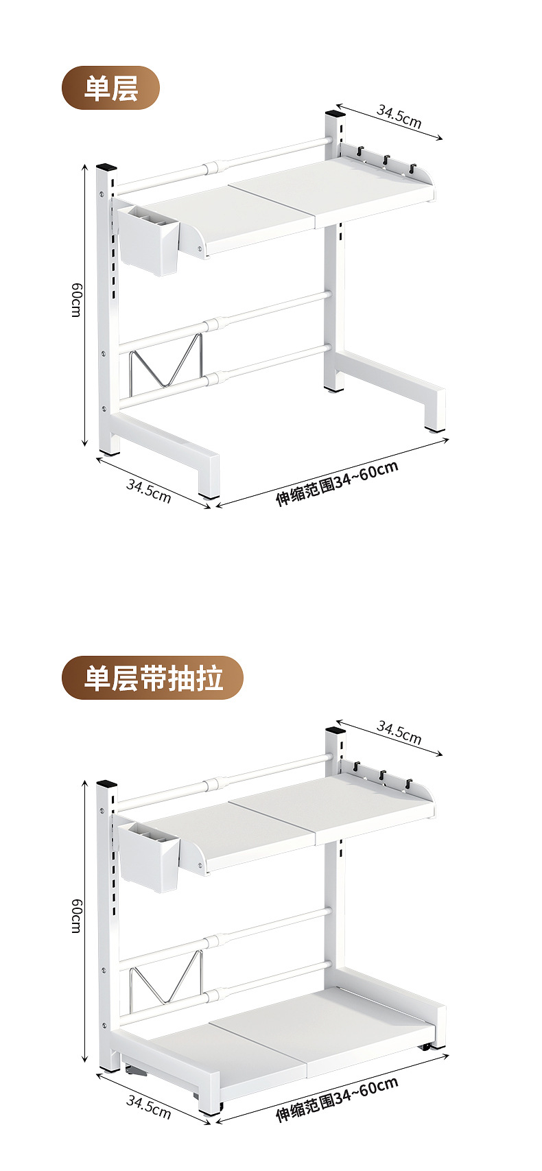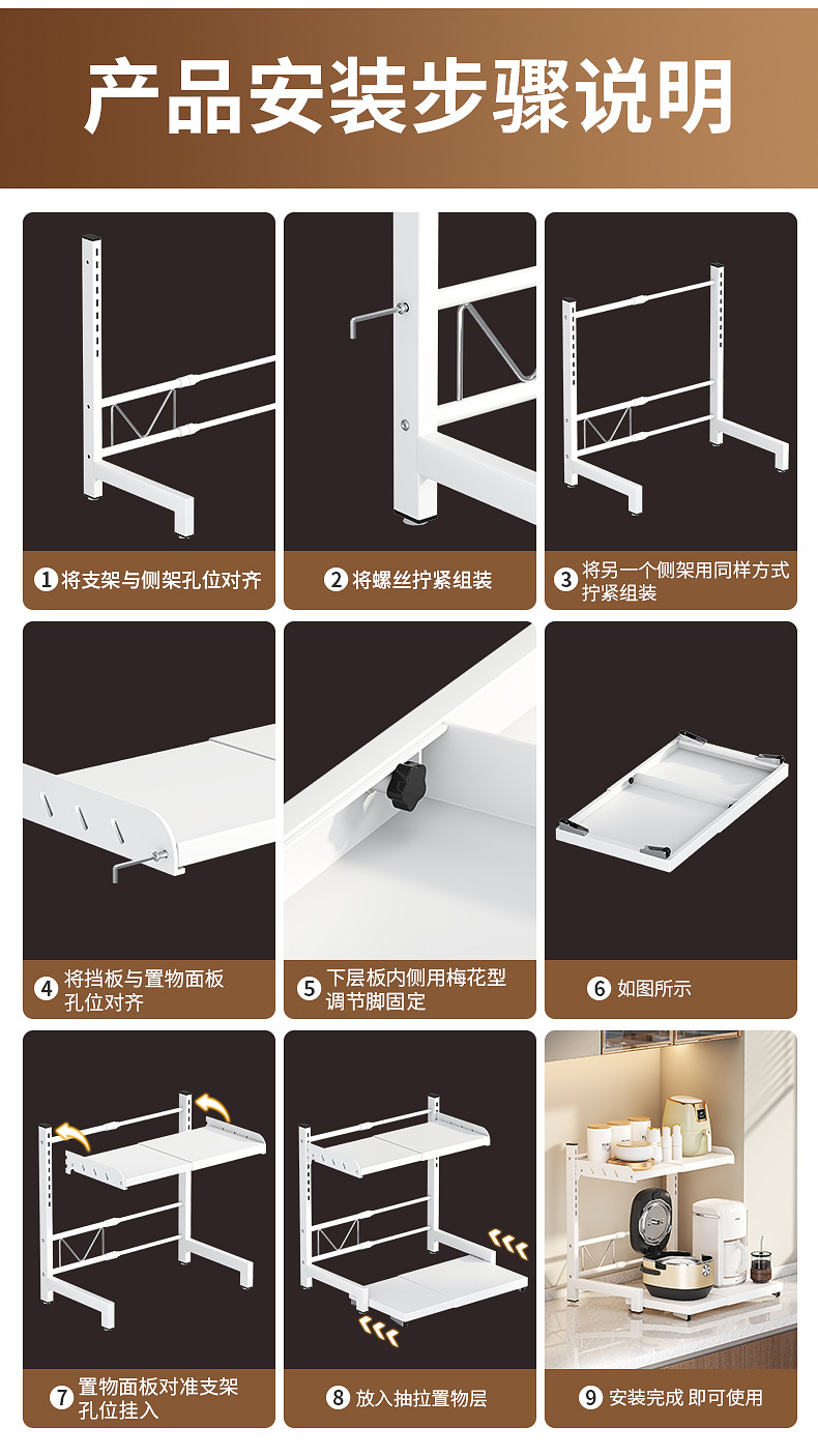 厨房置物架桌面可伸缩多层微波炉置物架收纳架家用台面置物神器