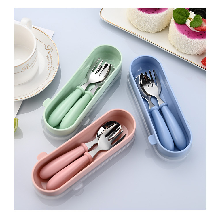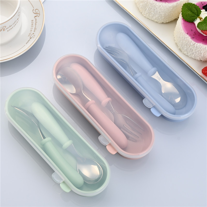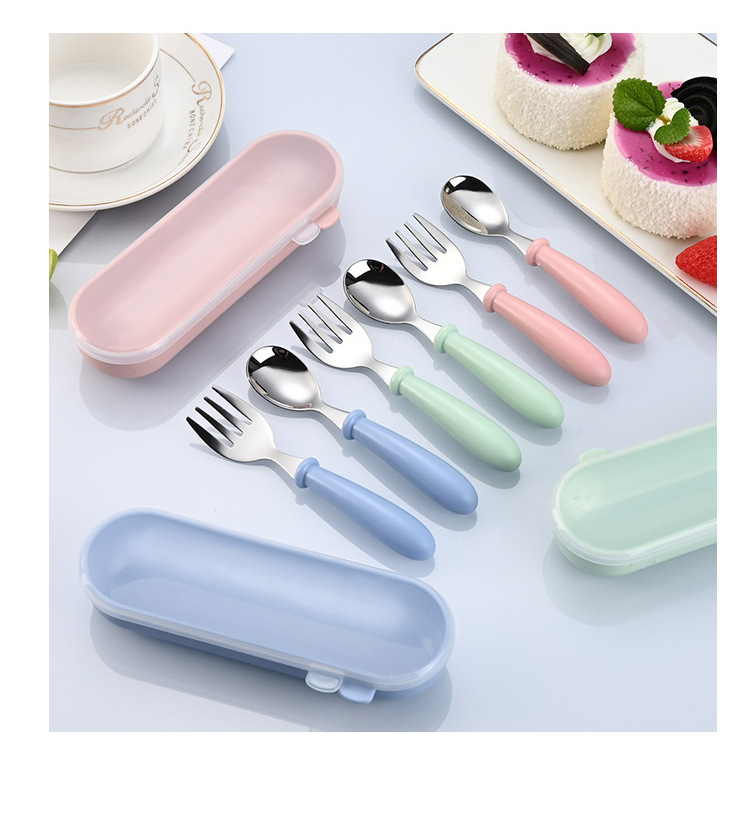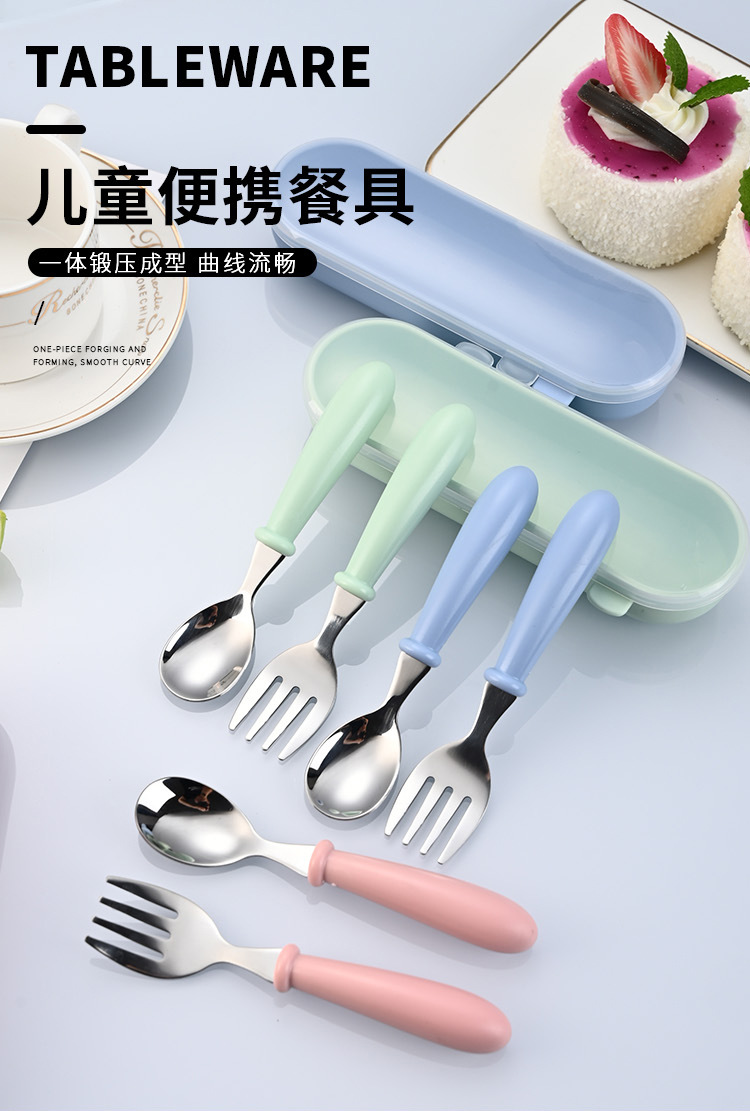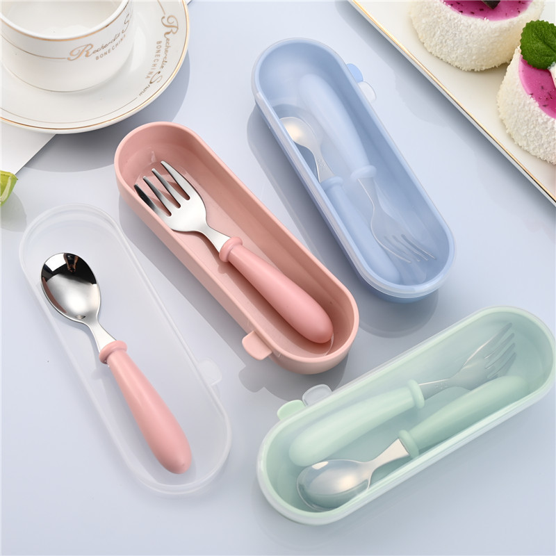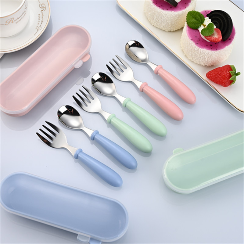 어린이 304 스테인레스 스틸 포크와 스푼 세트 유아 식품 보충 훈련 먹는 스푼 휴대용 먹이 식기 스푼