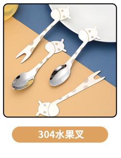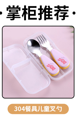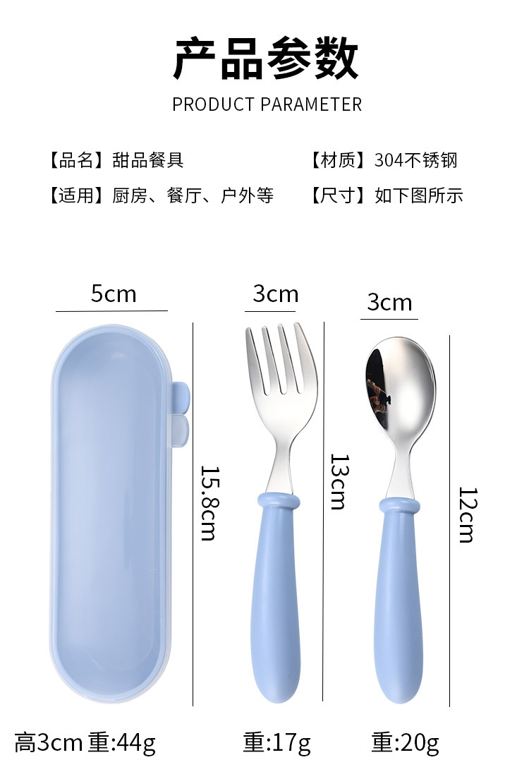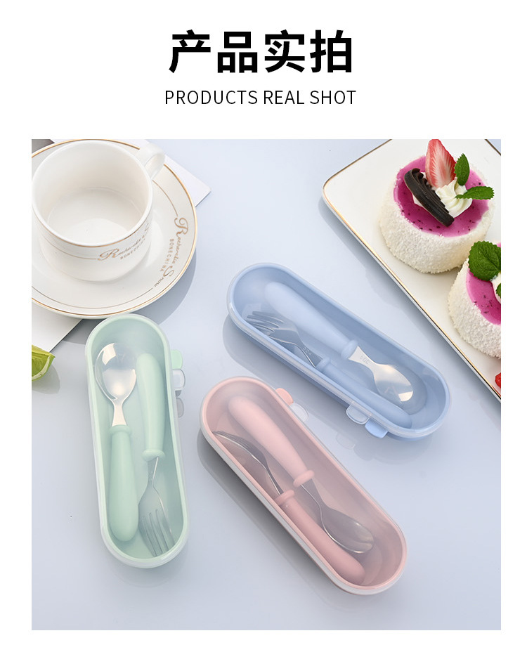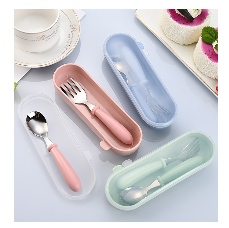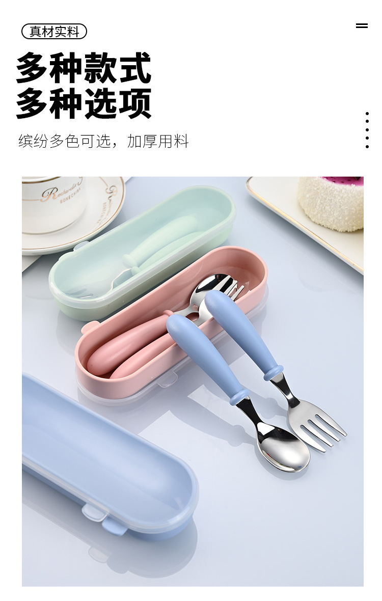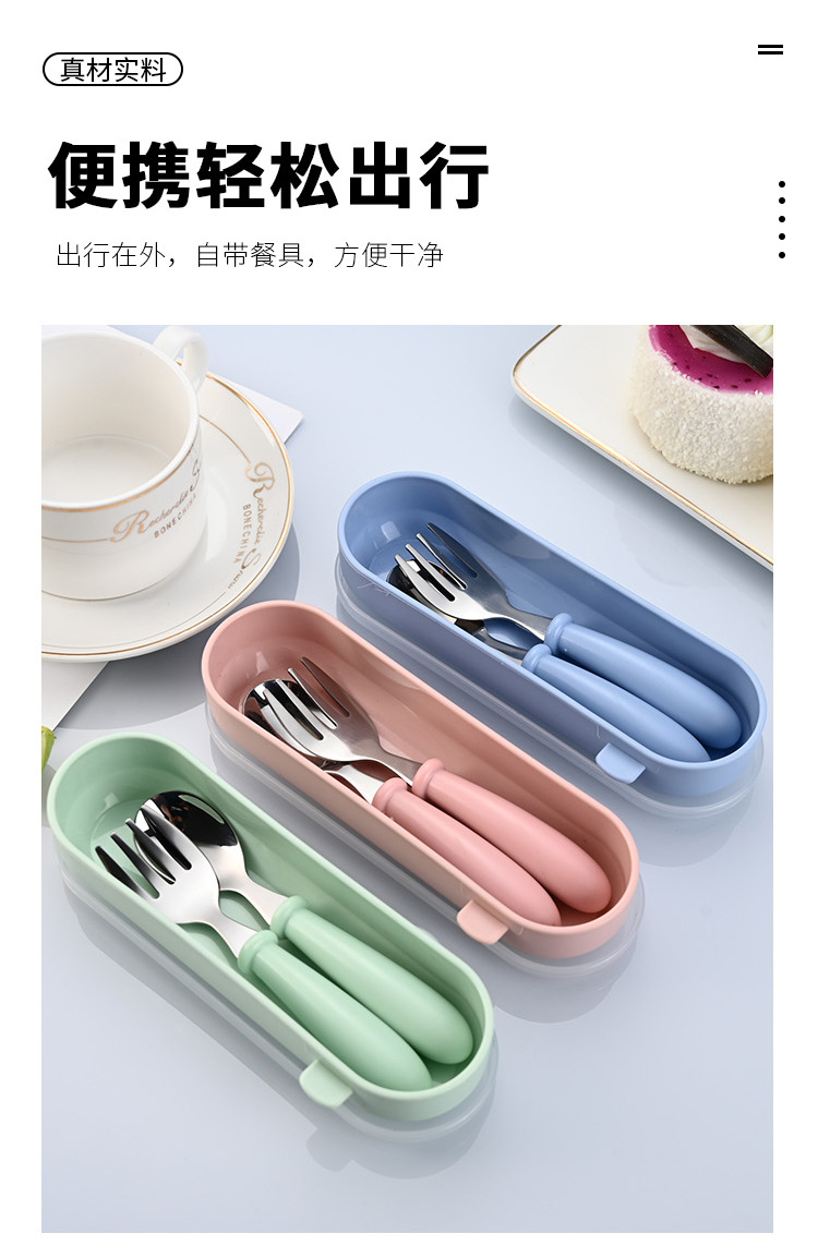 어린이 304 스테인레스 스틸 포크와 스푼 세트 유아 식품 보충 훈련 먹는 스푼 휴대용 먹이 식기 스푼