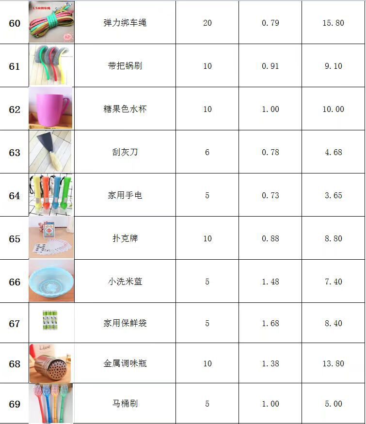 ? ?我们秉承价格低廉,跑量畅销,把价格利润最大化让给客户,整合上百家厂家资源,100多种产品,投资近百万。计划每月增加10种产品以上,在年底前将产品总数扩展至200余种,打造完美的1元、2元店,以后发展5元、10元店,件件精品,件件完美。适合优品,精品店,地摊货源 商场超市, 义乌小商品直销超市,等一站式供货模式。