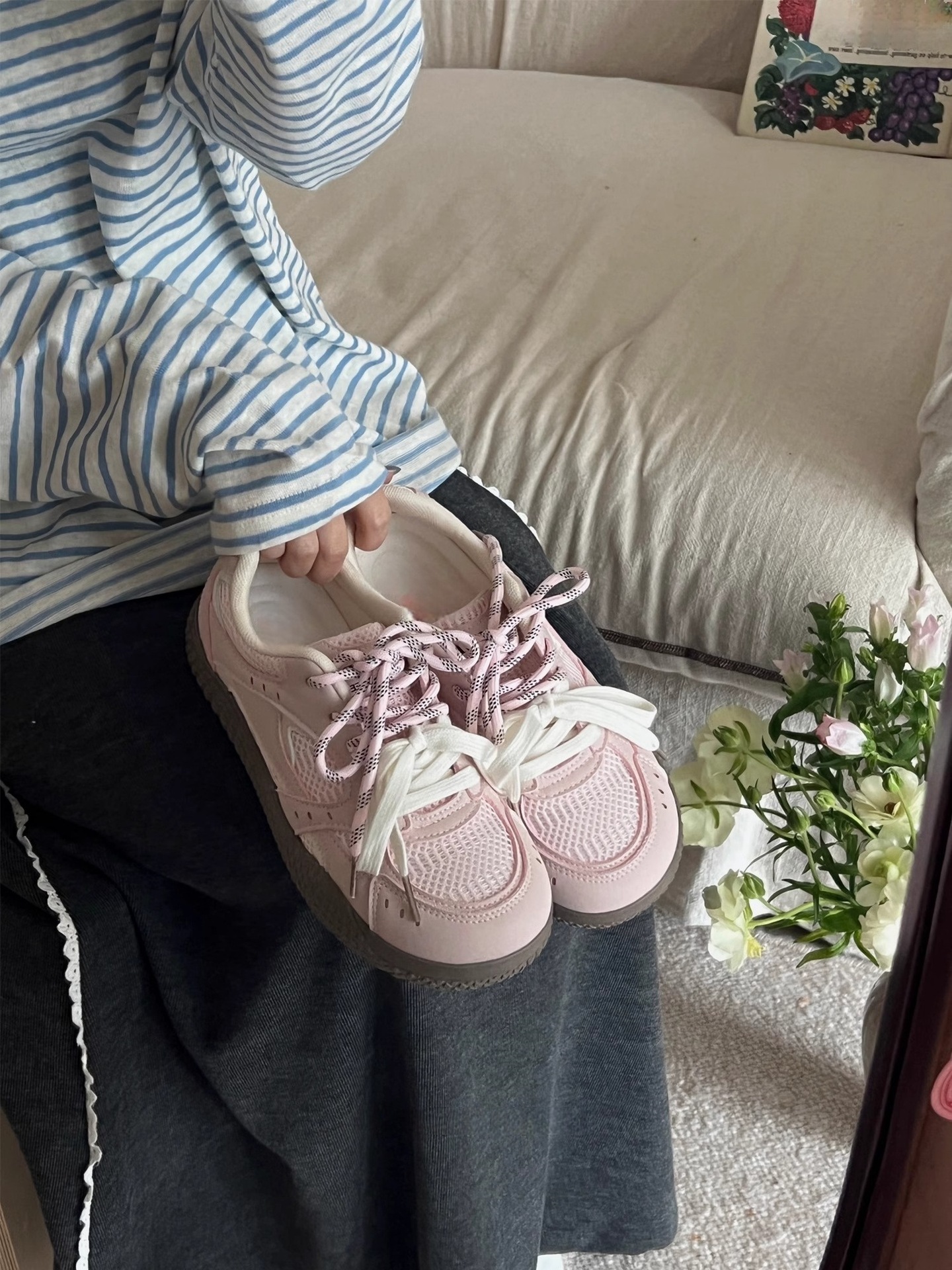 한국 스타일 여성용 다용도 독일 트레이닝화 2026 봄 신상 캔버스화 통기성 메쉬 운동화 화이트 슈즈 트렌디 슈즈