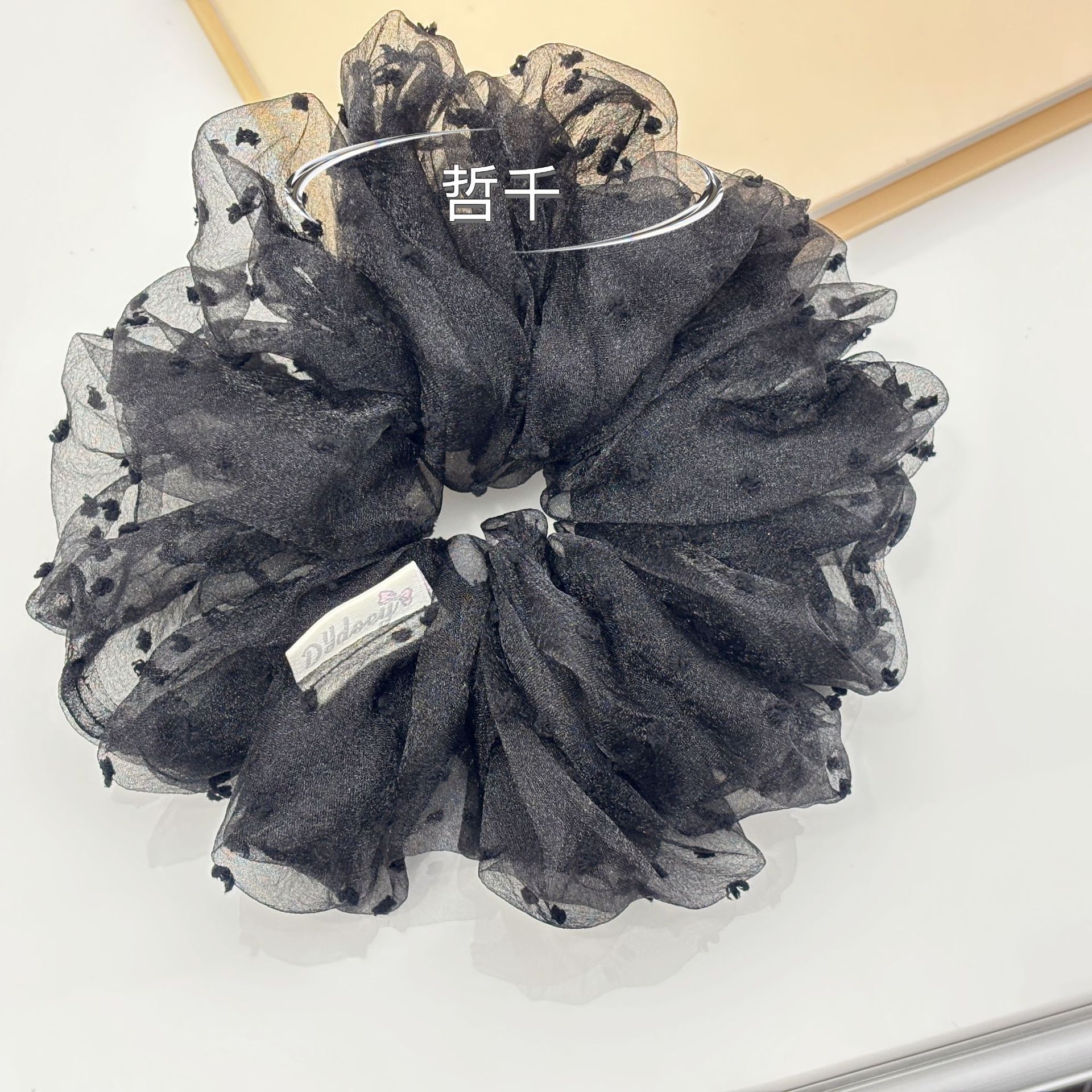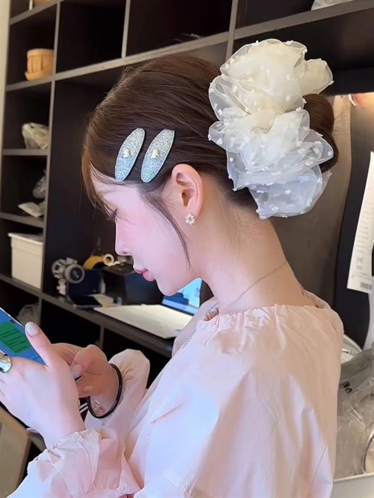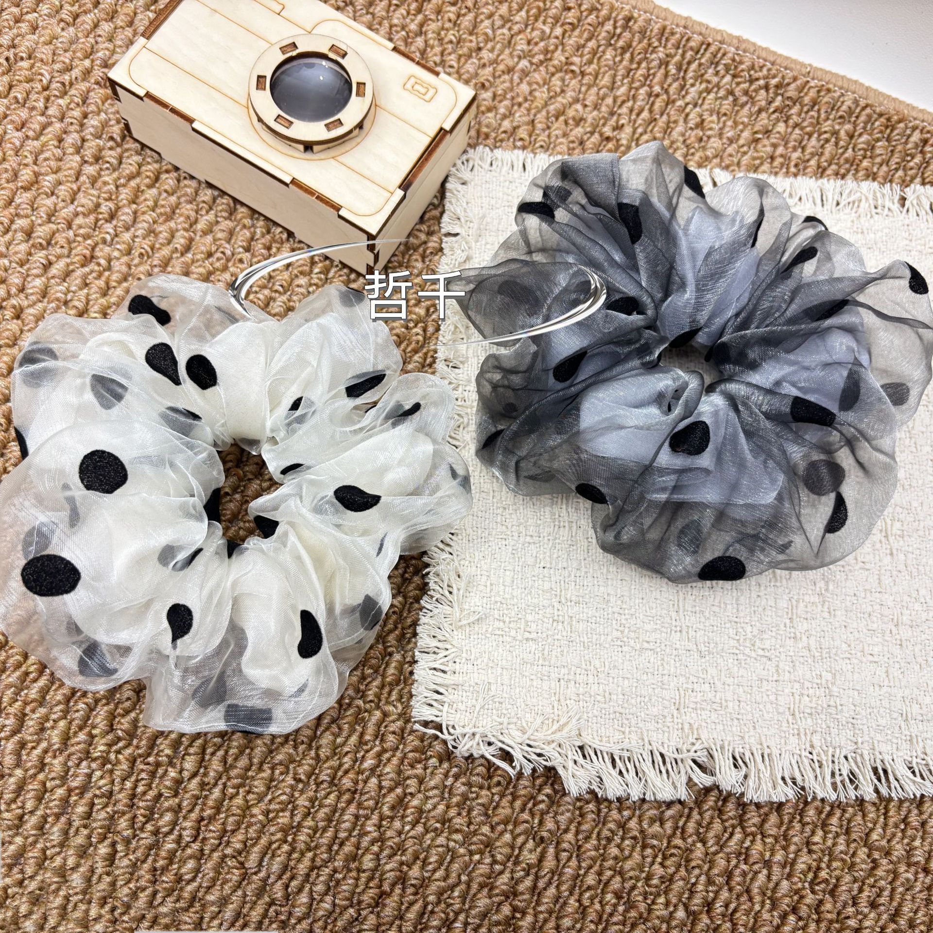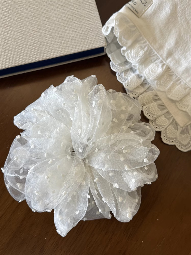 한국 오니 대형 메쉬 도트무늬 헤어밴드 프렌치 스타일 슈퍼 페어리 헤어밴드 루즈핏 헤어 액세서리 여성용 헤어끈
