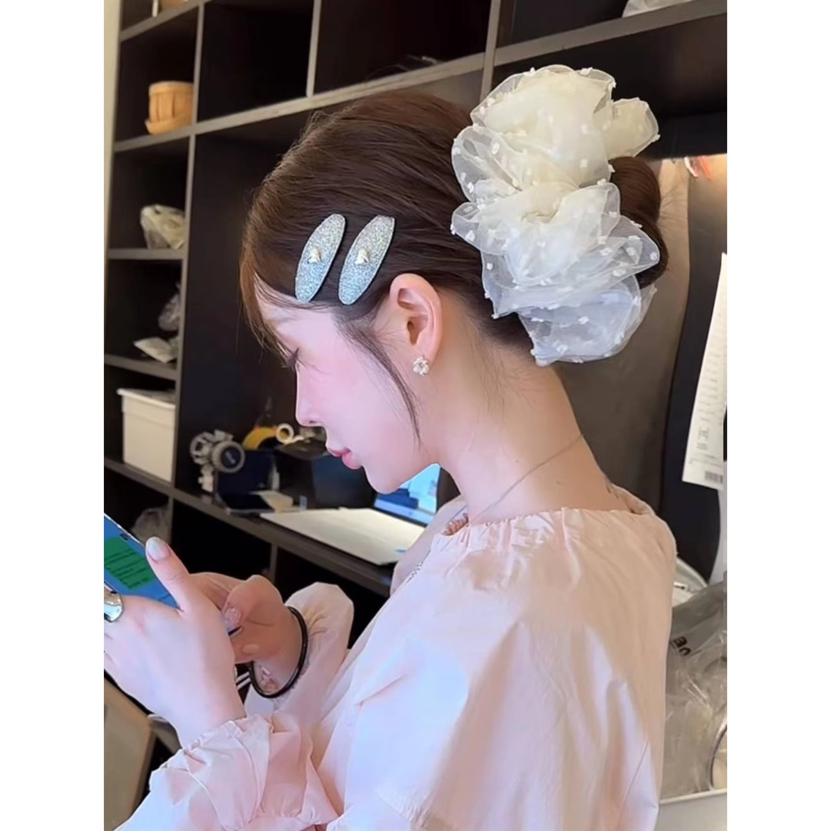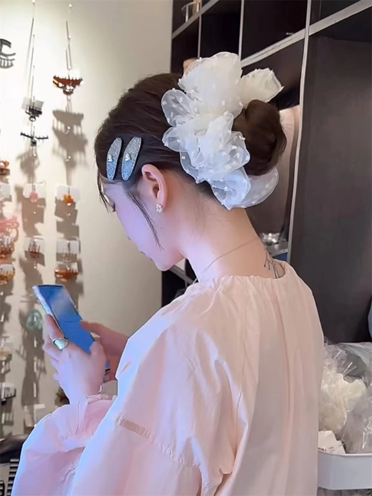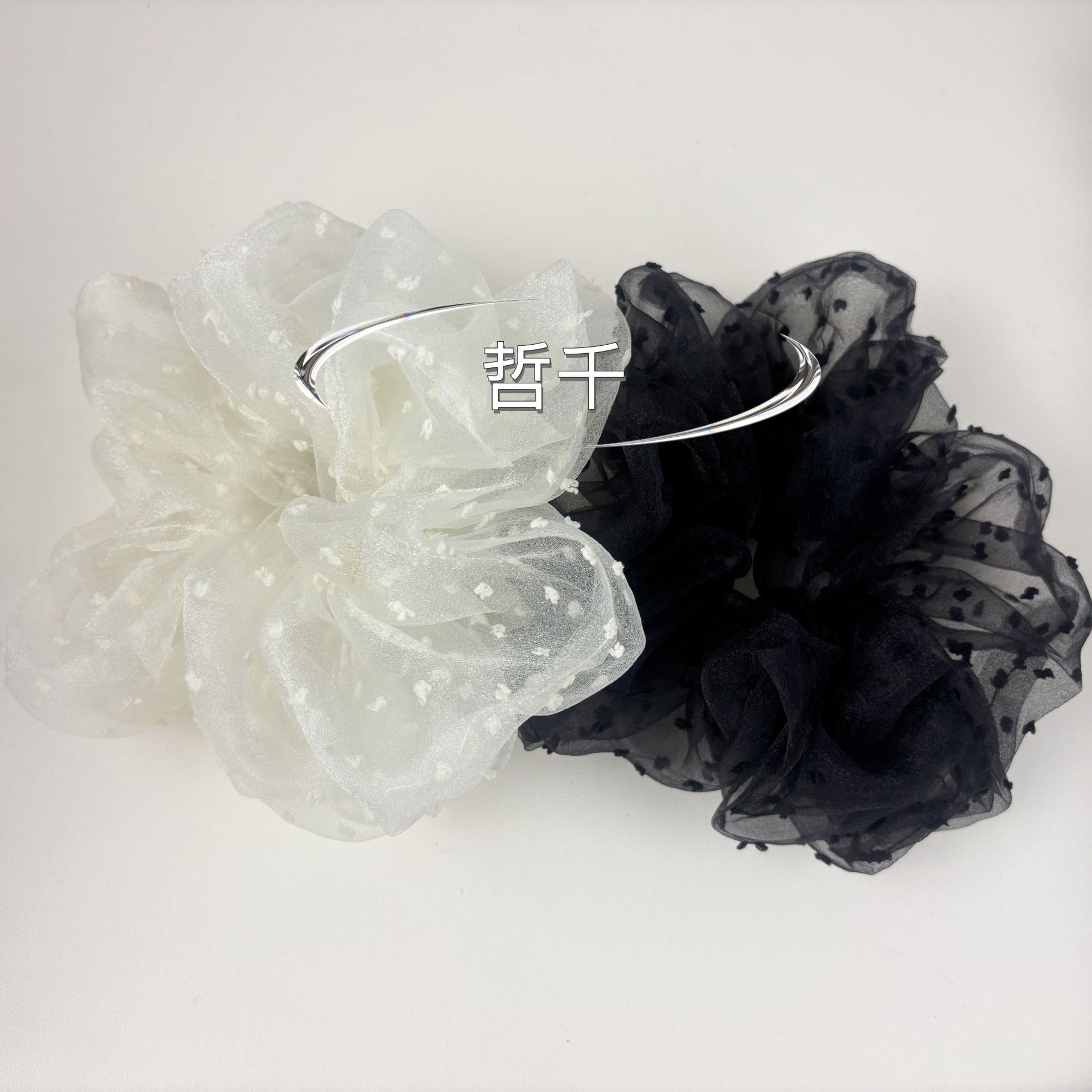한국 오니 대형 메쉬 도트무늬 헤어밴드 프렌치 스타일 슈퍼 페어리 헤어밴드 루즈핏 헤어 액세서리 여성용 헤어끈