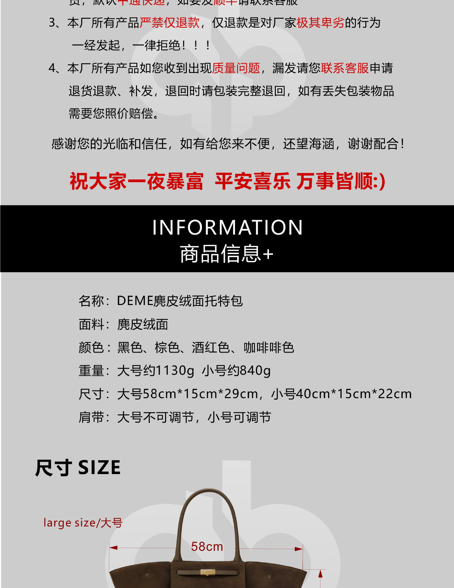 Demellier Tote Bag 스웨이드 숄더 낮은 가방 미국 스타일 빈티지 여성 가방 휴대용 대용량 만두 백