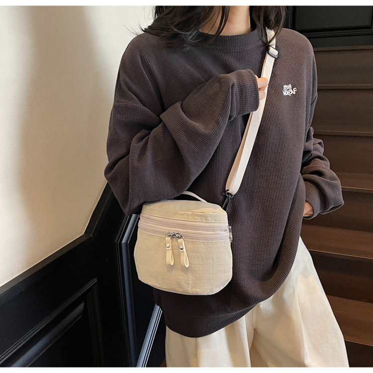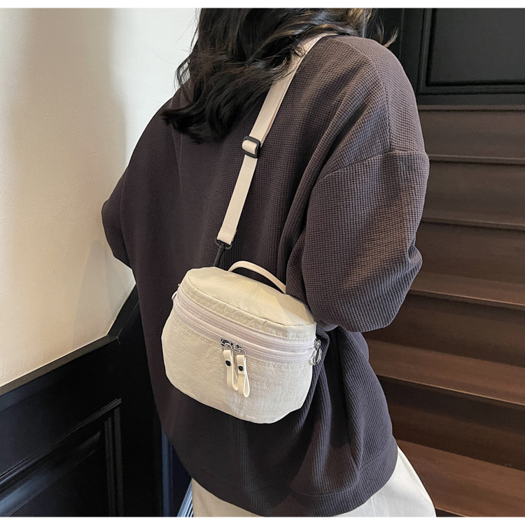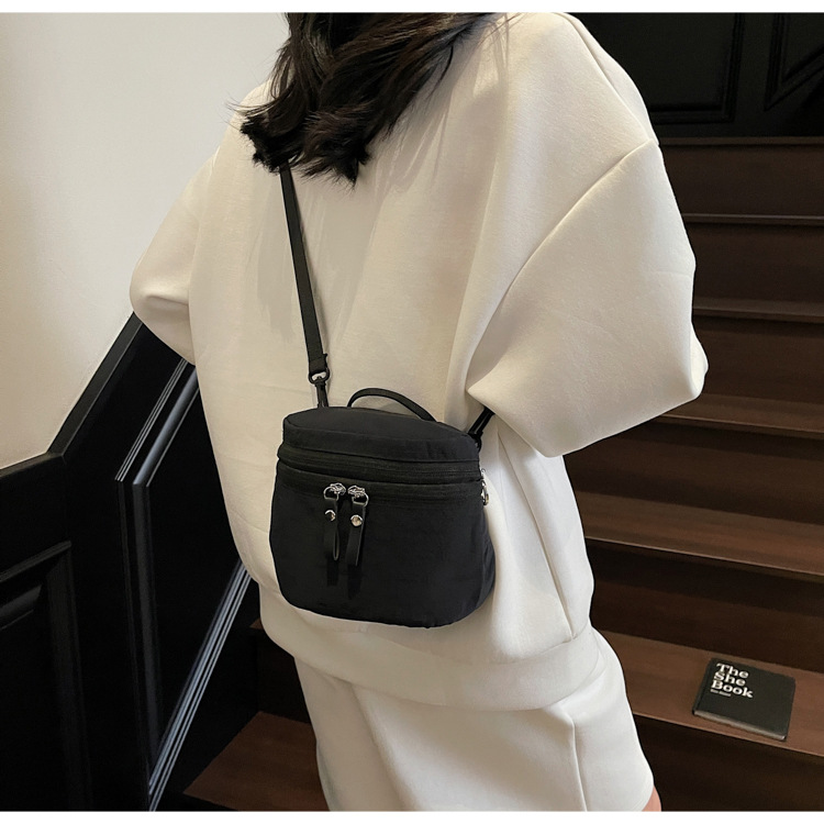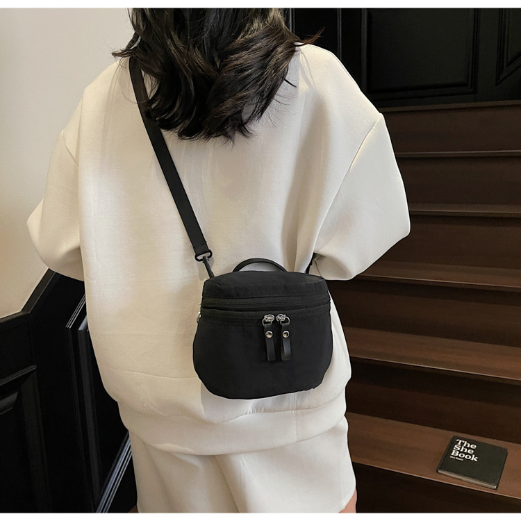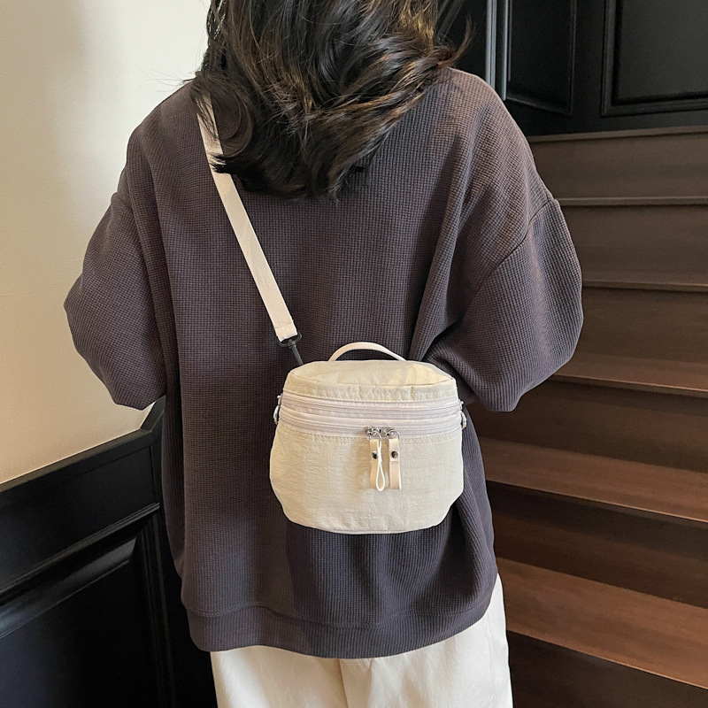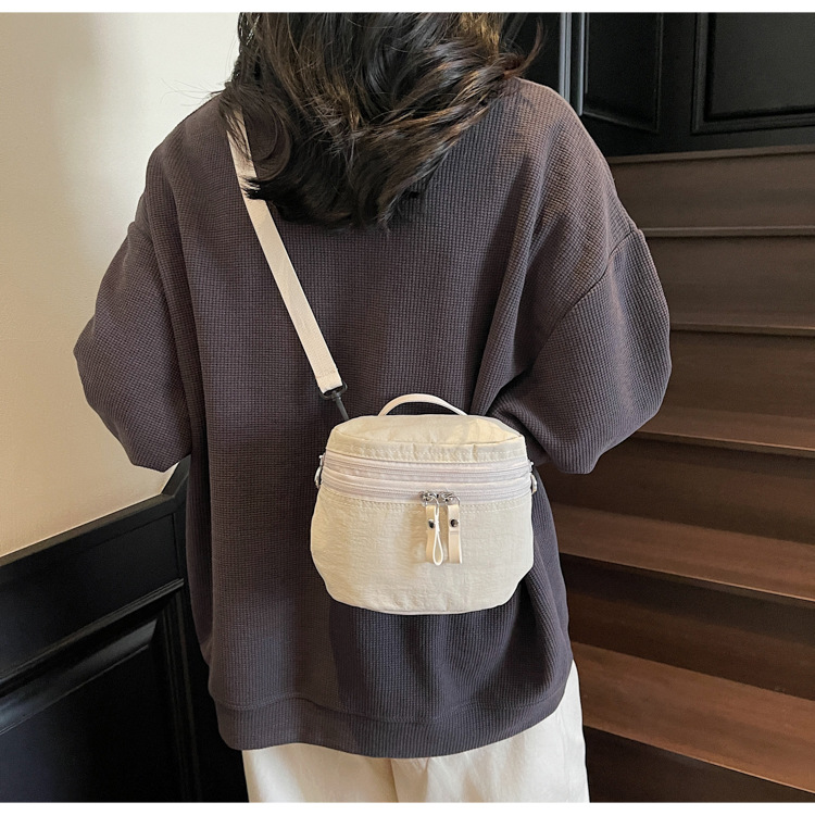 여성을위한 일본 여름 버킷 백 2025 새로운 다용도 어깨 크로스 바디 백 통근 다용도 나일론 천 작은 원형 가방