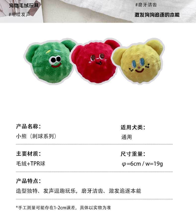 새로운 개 장난감 물린 한국 곰 찔린 공 탄성 공 인터랙티브 답답한 플러시 보컬 애완 동물 용품 도매