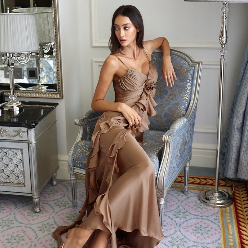 크로스보더 섹시 서스펜더 드레스 브이넥 분위기 니치 디자인 드레스 롱 스커트 데이트 휴가 비치 롱 스커트
