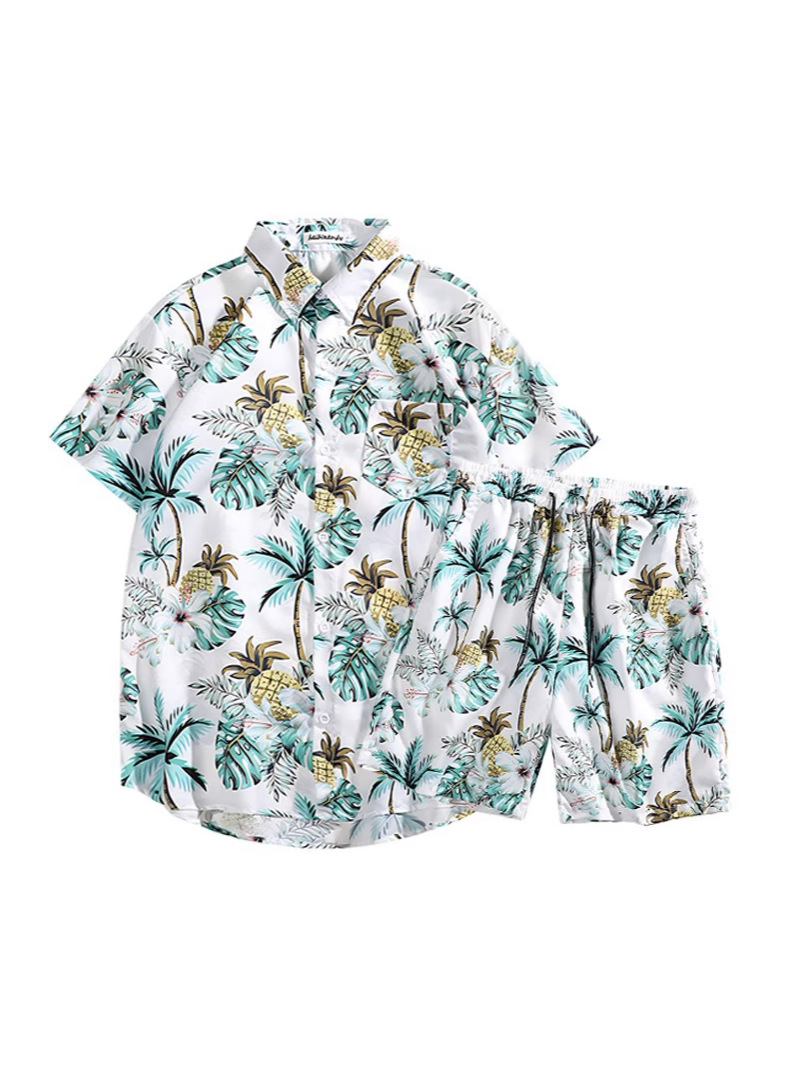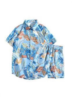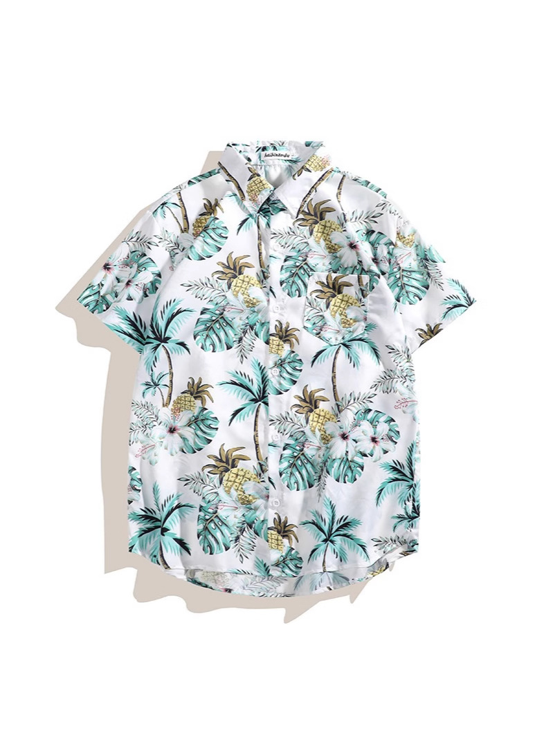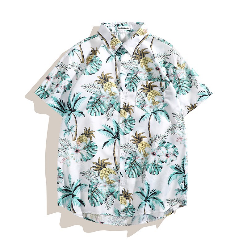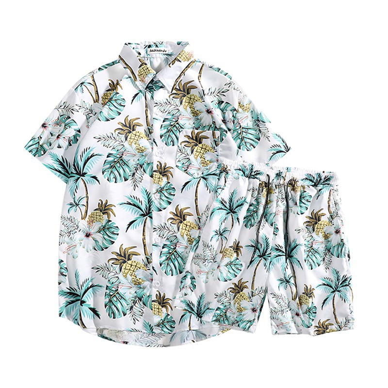 대외 무역 하와이 여름 남성 느슨한 대형 비치 셔츠 정장 휴가 캐주얼 패션 트렌디 반팔 반바지