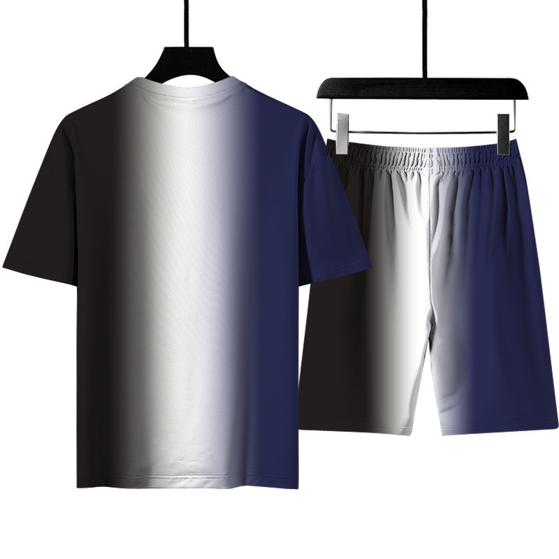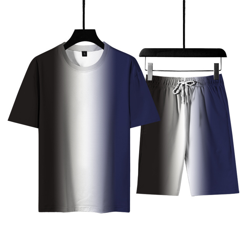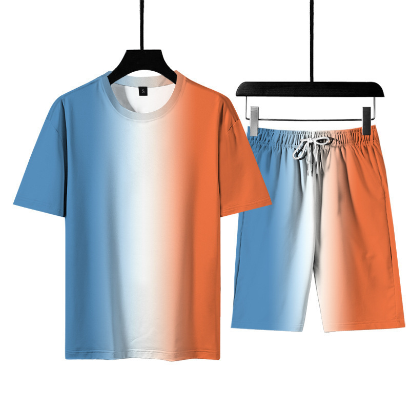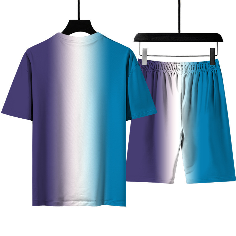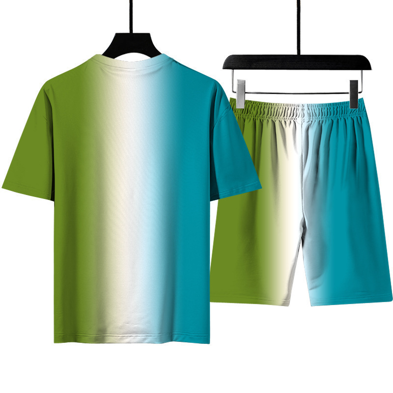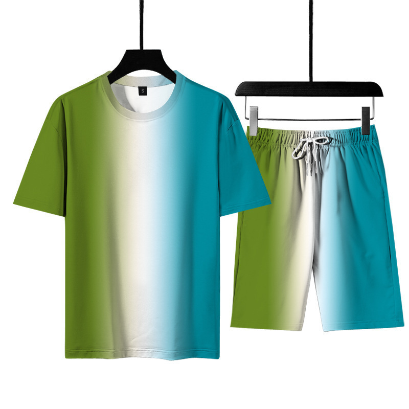 3d 인쇄 그라디언트 남자 티셔츠 여름 해변 바지 스포츠 정장 남자 국경 간 원피스