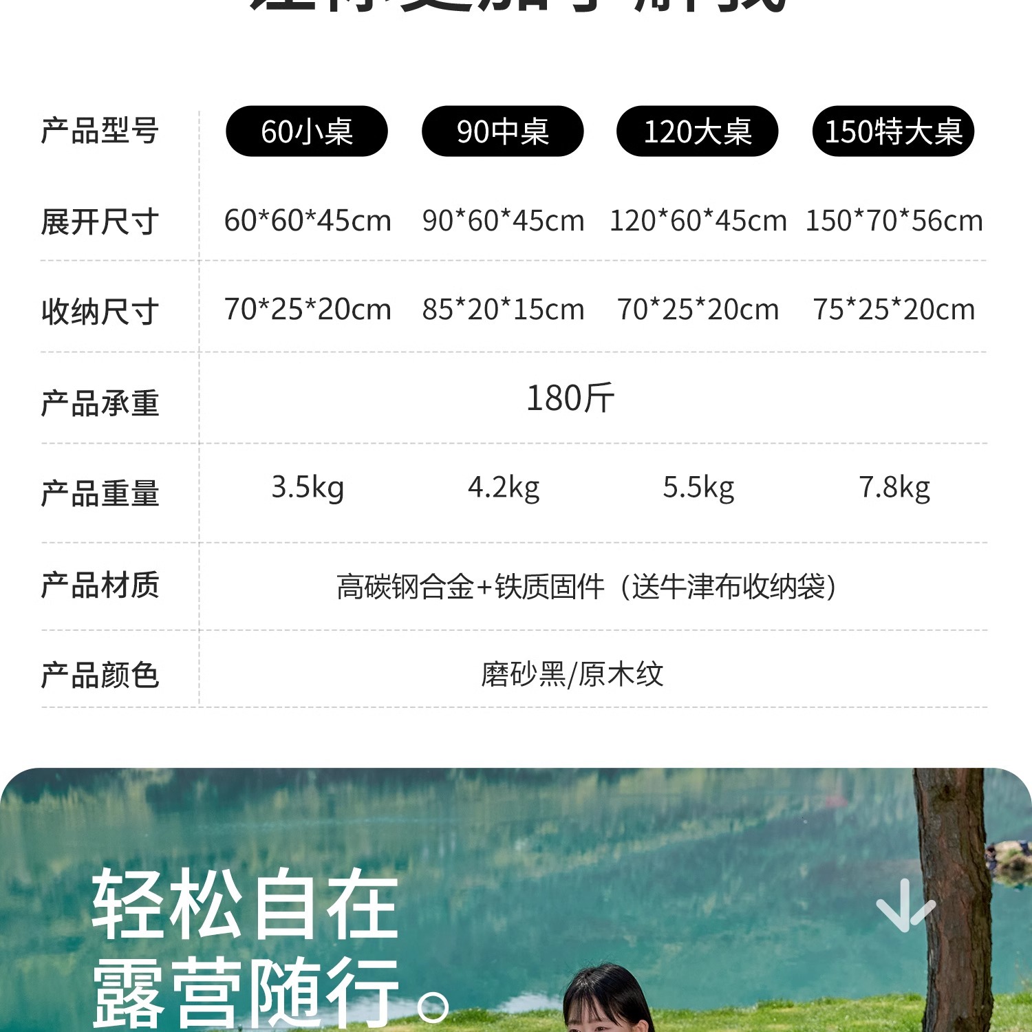 [2.6 두꺼운 튜브] 나뭇결 반투명 탄소강 합금 120 대형 테이블 (핸드백 포함)