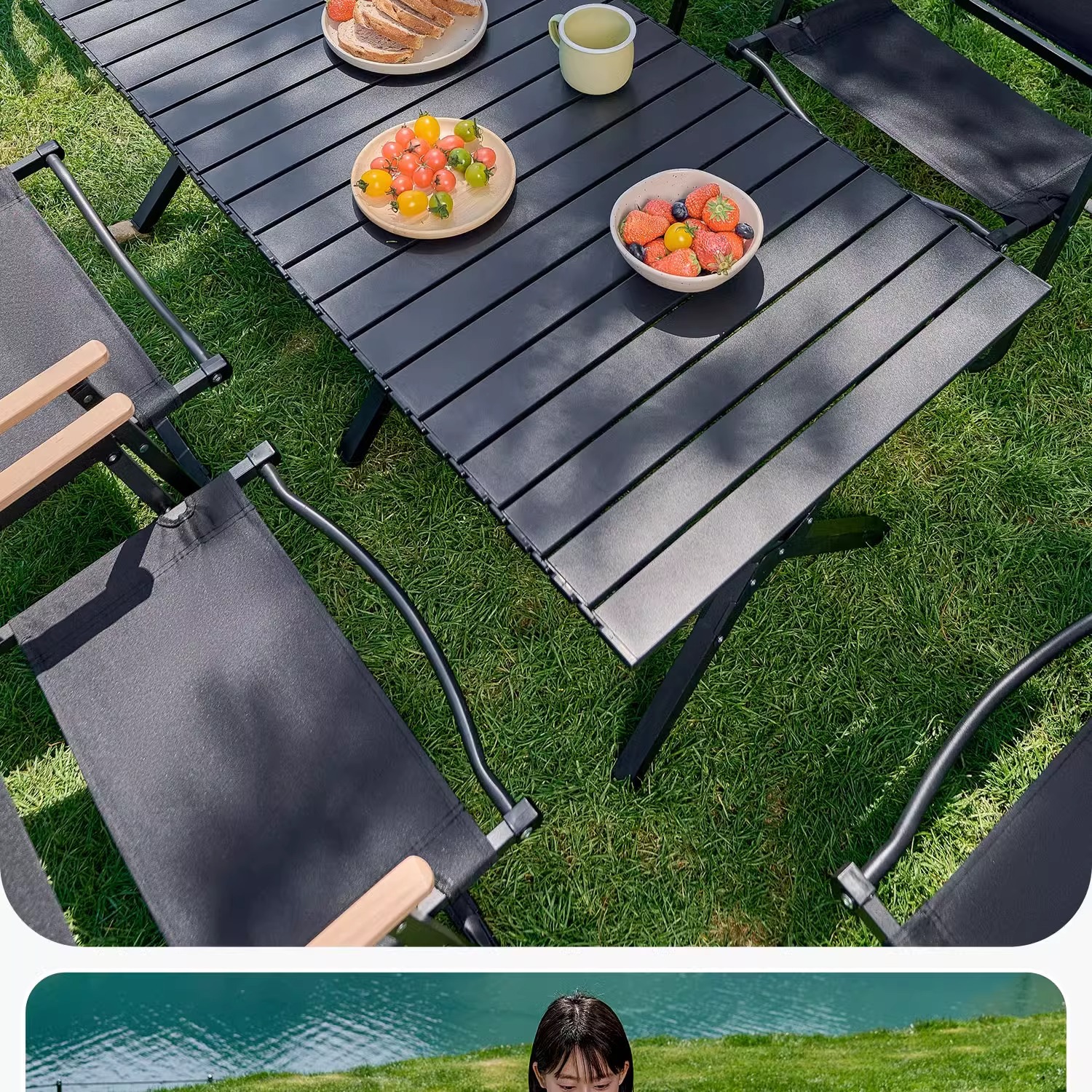 캠핑 테이블과 의자, 야외 피크닉 접이식 계란말이 테이블, 문 의자, 휴대용 캠핑 의자, 테이블 일체형 장비 세트