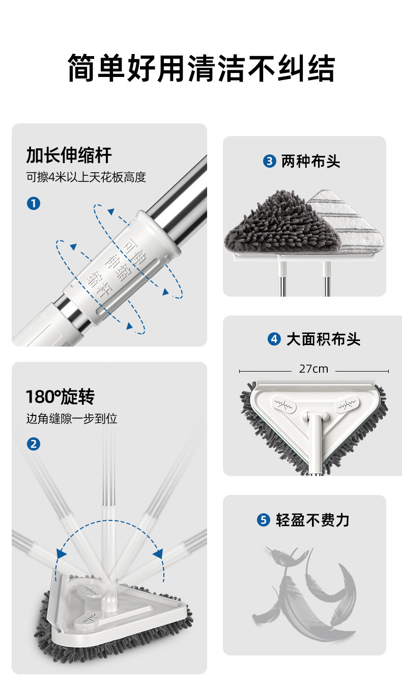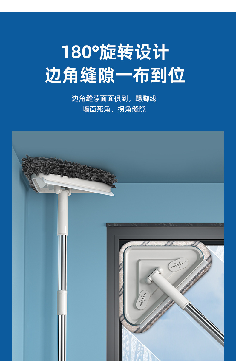 천장 청소용 삼각형 텔레스코픽 걸레, 가정용 벽 청소, 지붕 벽 벽돌, 벽 청소 다기능