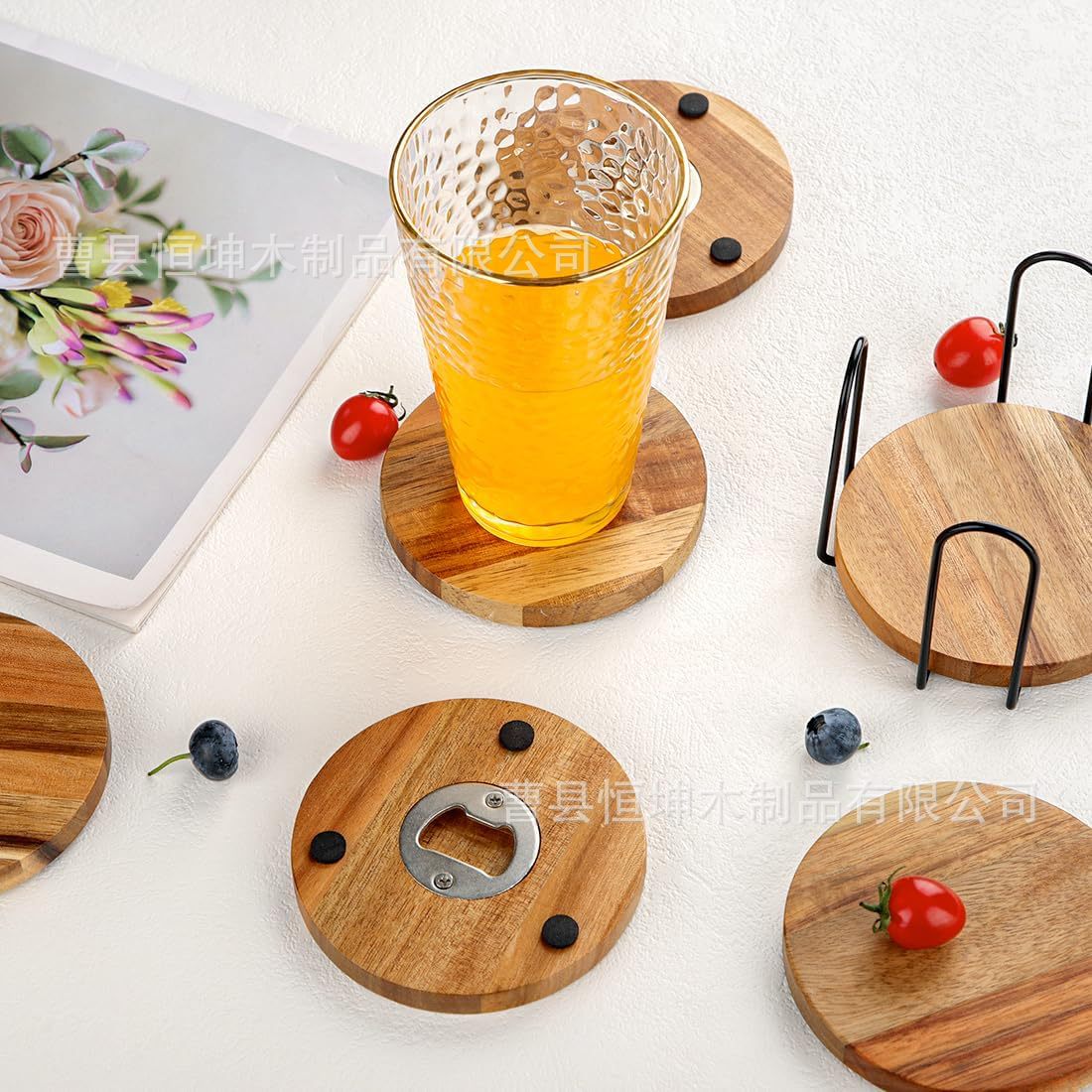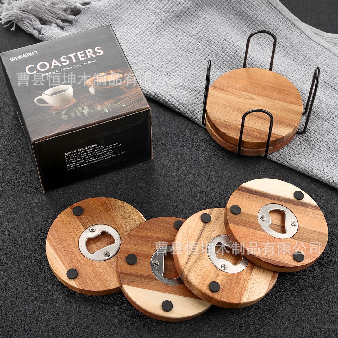 병따개 홀더가있는 나무 컵 받침 맥주 병따개 단단한 나무 와인 병 따개 크리 에이 티브 컵 받침 가정용 병따개