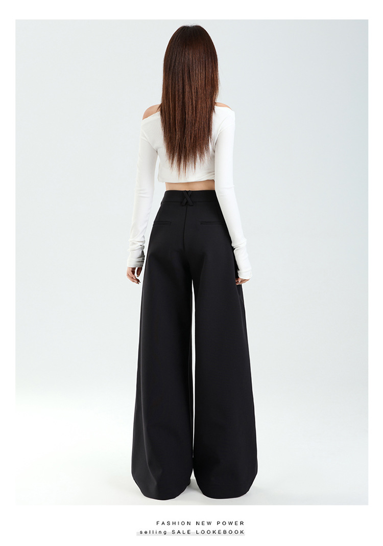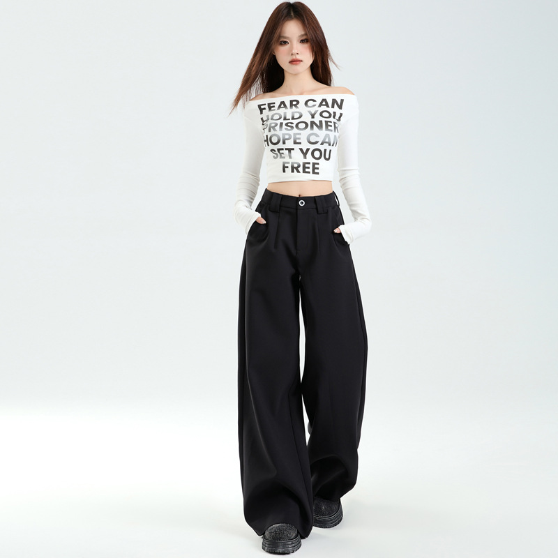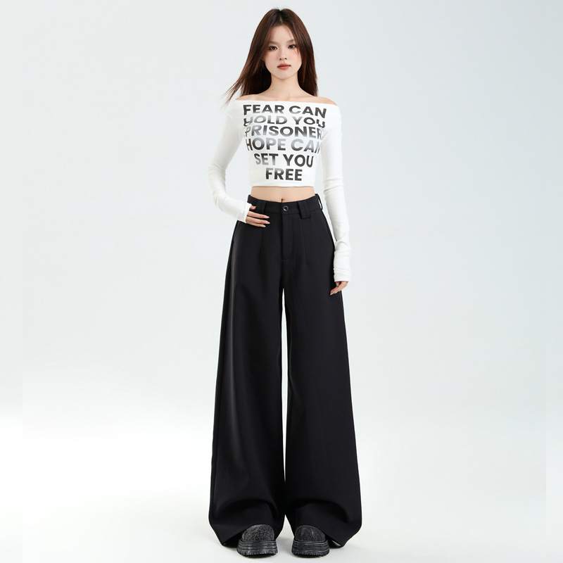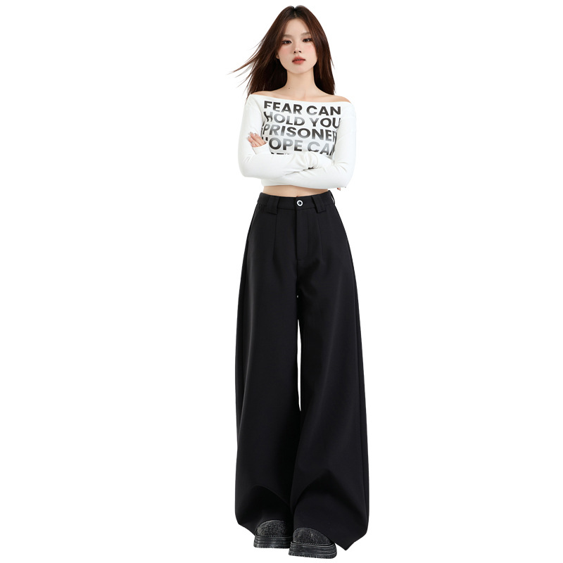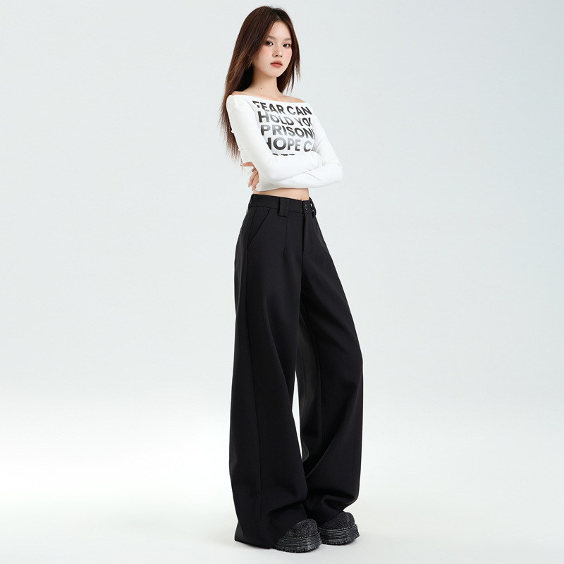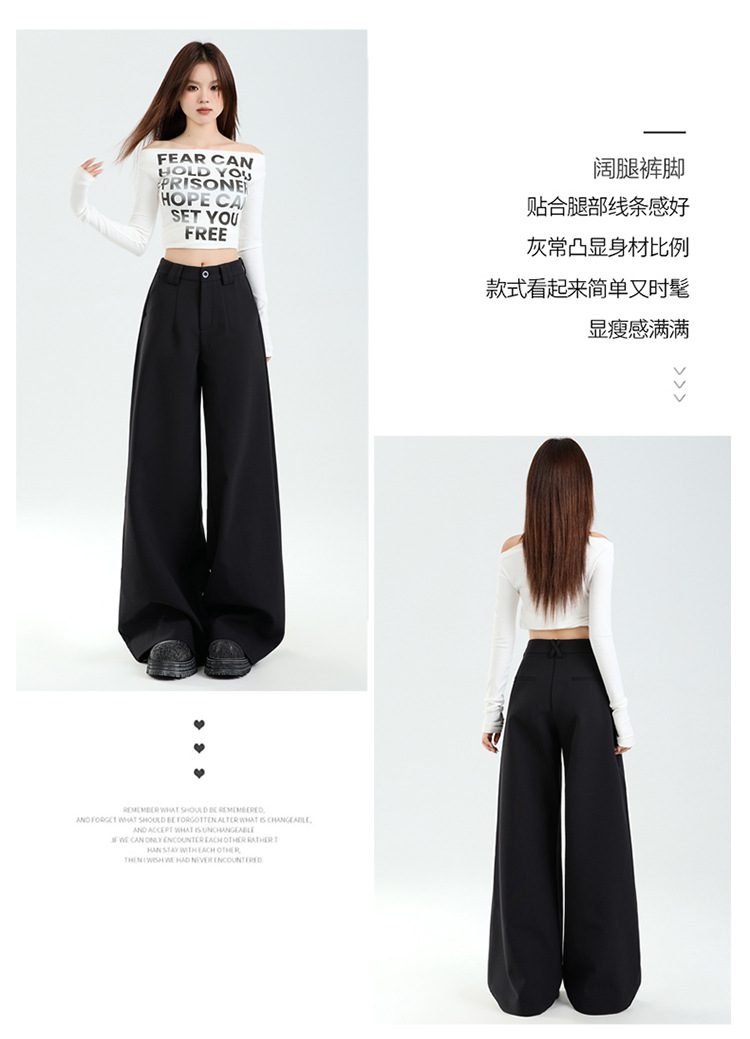 1233 여름 새로운 블랙 간단한 느슨한 슬림 세트 바지 높은 허리 패션 넓은 다리 바지 캐주얼 바지