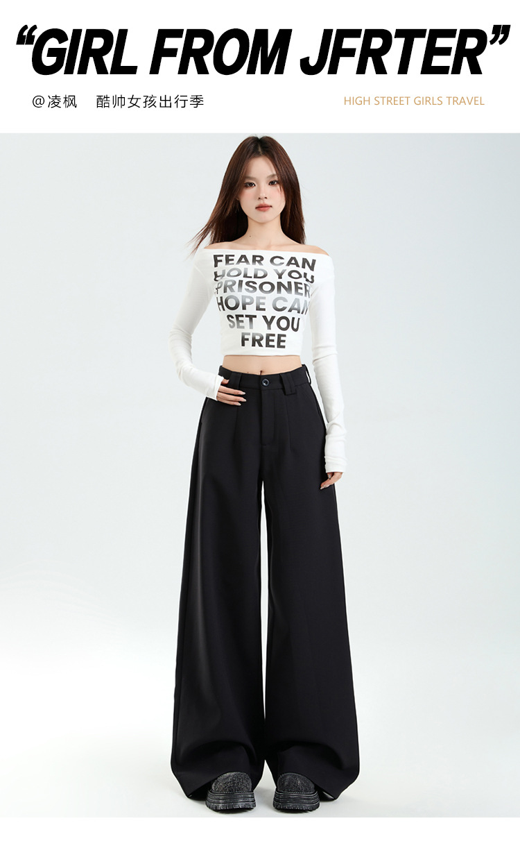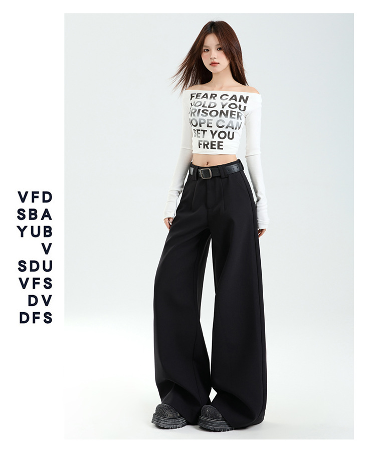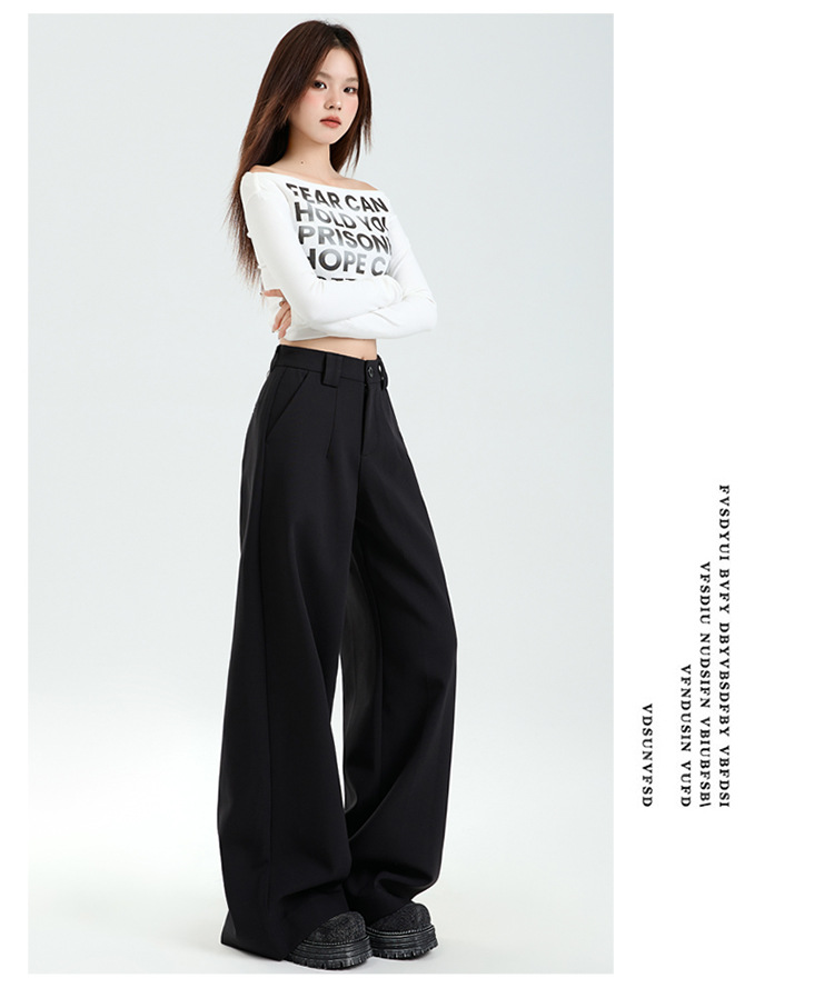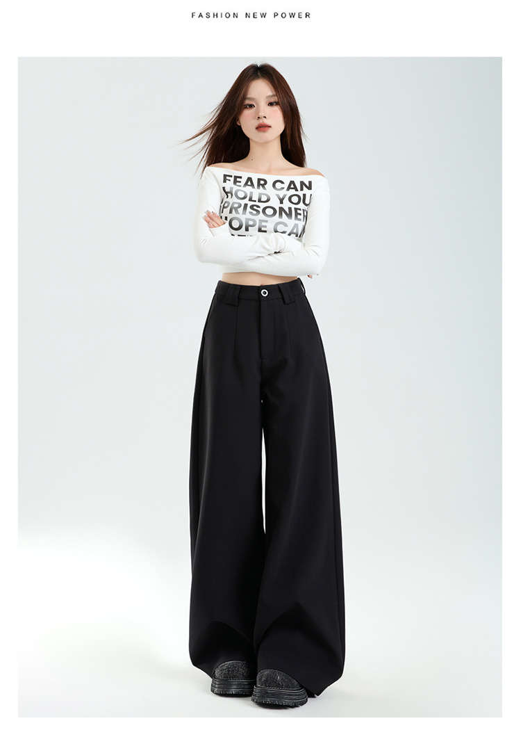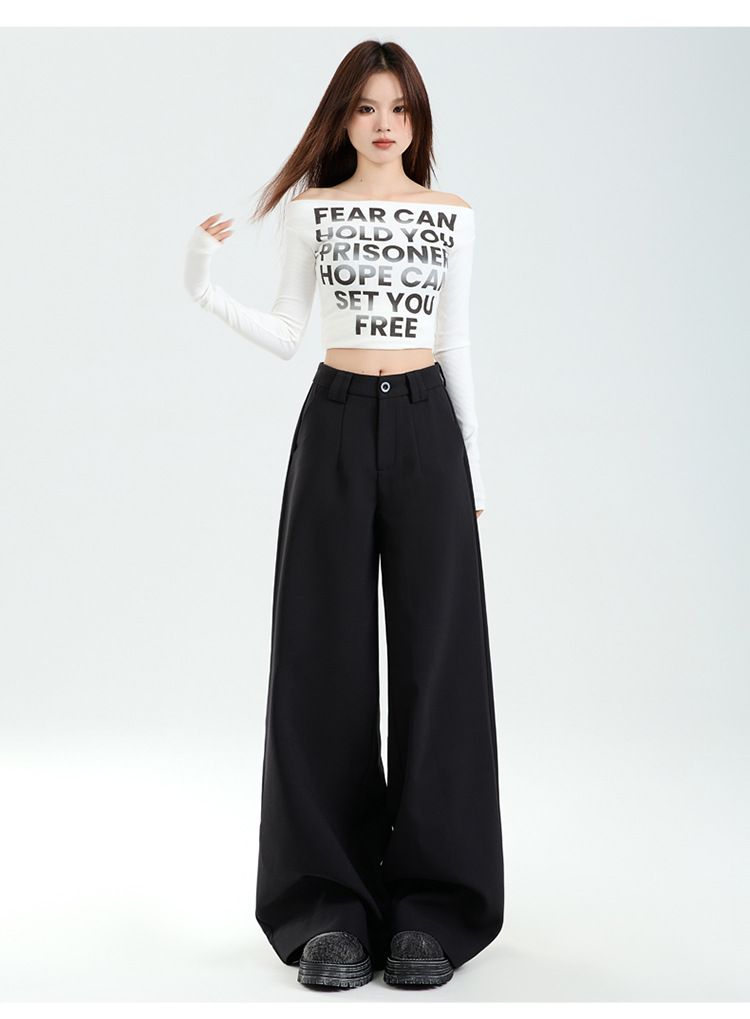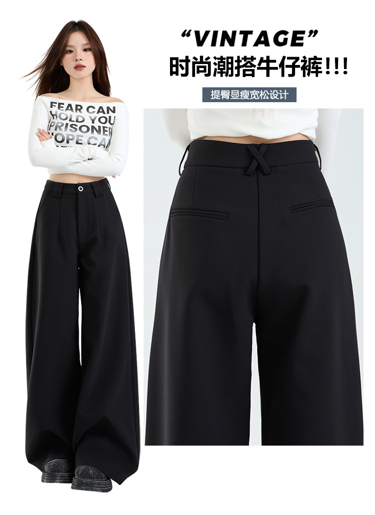 1233 여름 새로운 블랙 간단한 느슨한 슬림 세트 바지 높은 허리 패션 넓은 다리 바지 캐주얼 바지