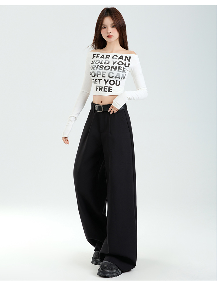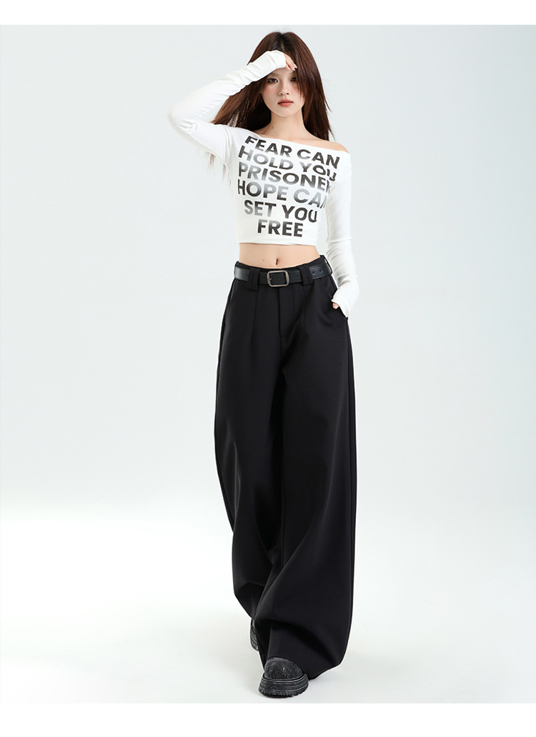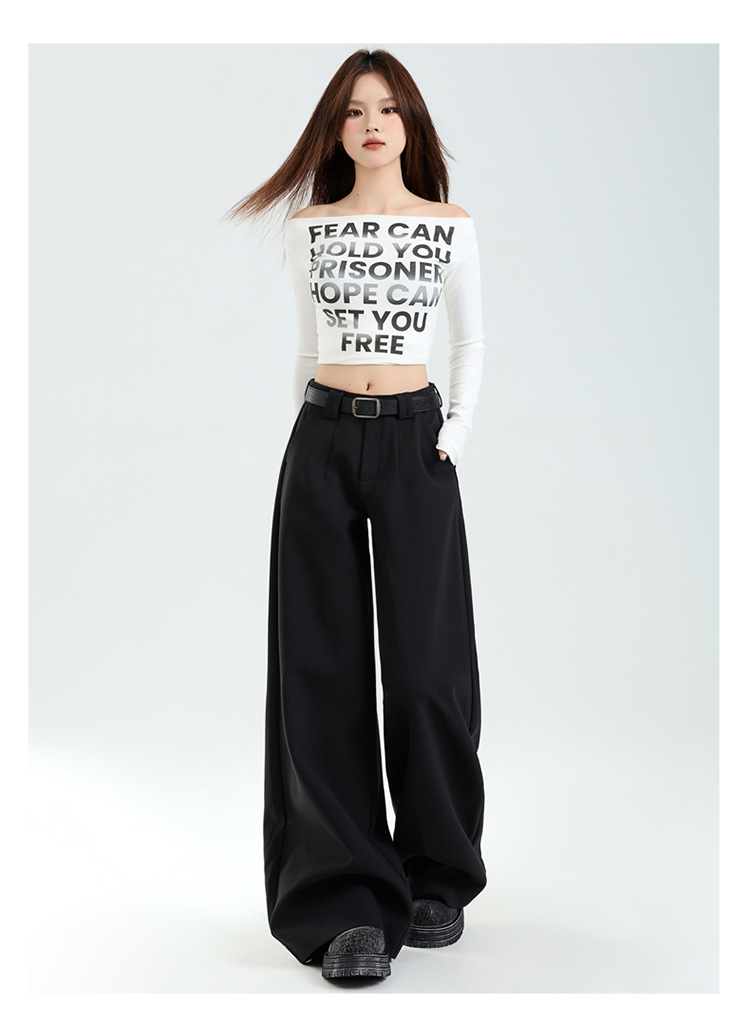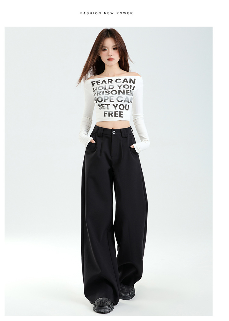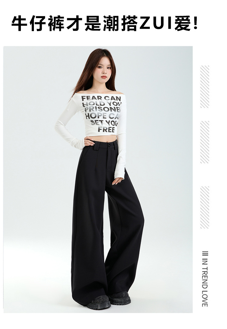 1233 여름 새로운 블랙 간단한 느슨한 슬림 세트 바지 높은 허리 패션 넓은 다리 바지 캐주얼 바지