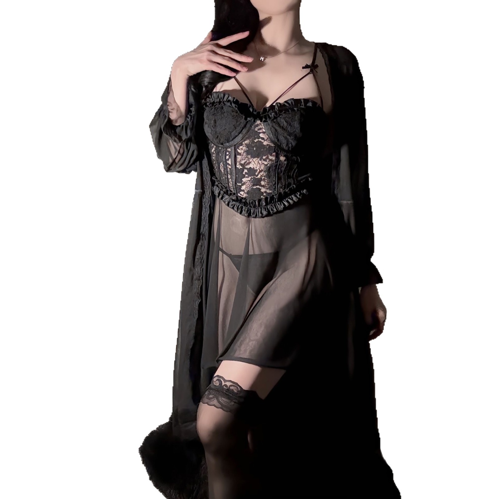 플러스 사이즈 속옷, 가벼운 럭셔리 벨벳, 핫 시스루 메쉬 가슴 패드, 언더와이어가 있는 잠옷, 작은 가슴을 가진 여성을 위한 섹시한 속옷