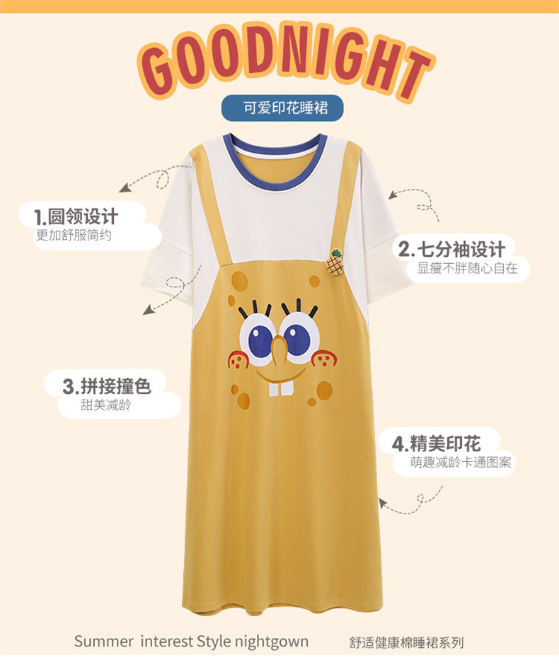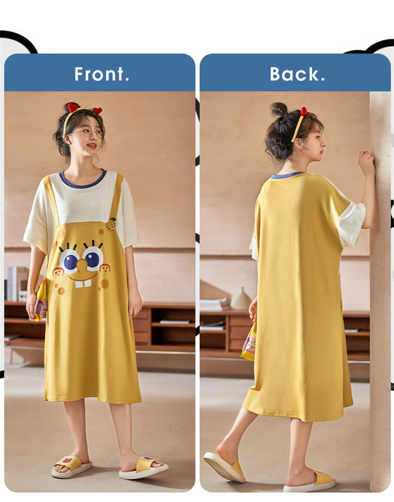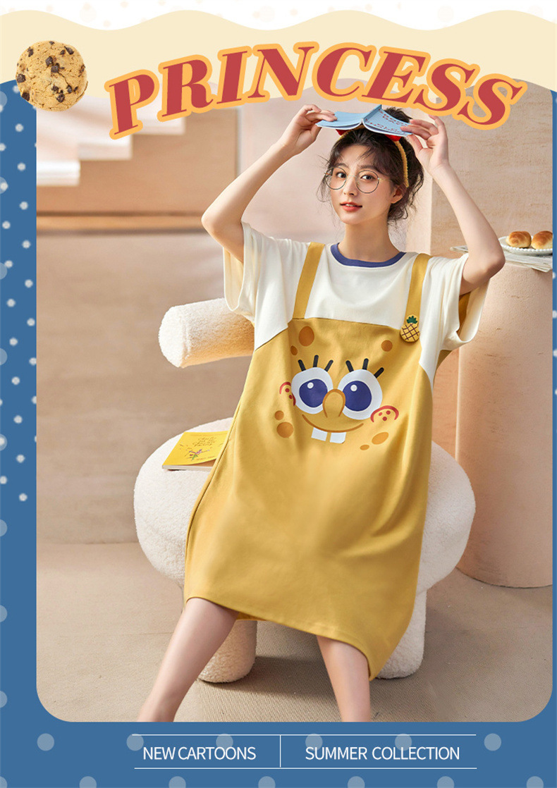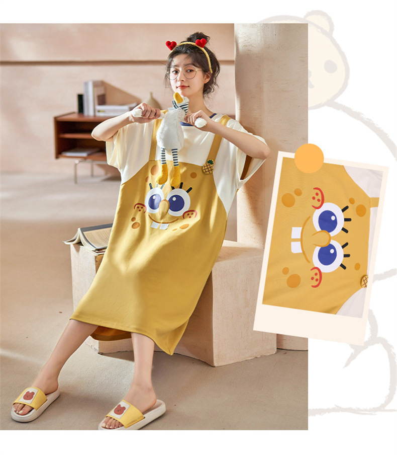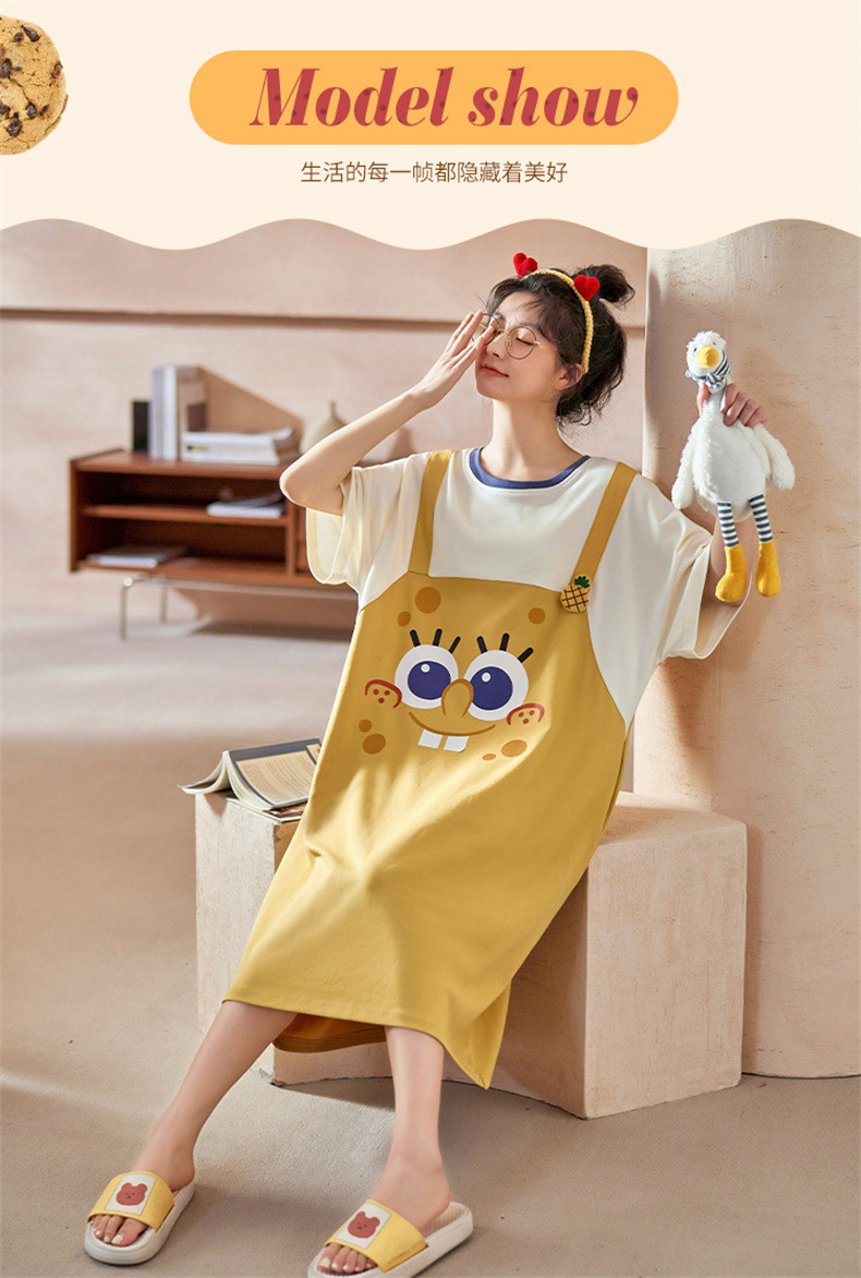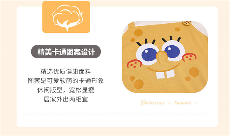 26년 신상품 풀오버【가슴 패드형】라운드넥 여성용 잠옷 여름 얇은 반팔 루즈핏 만화풍 귀여운 홈웨어