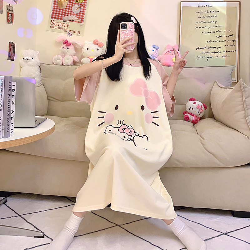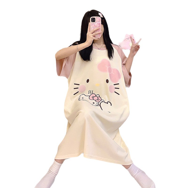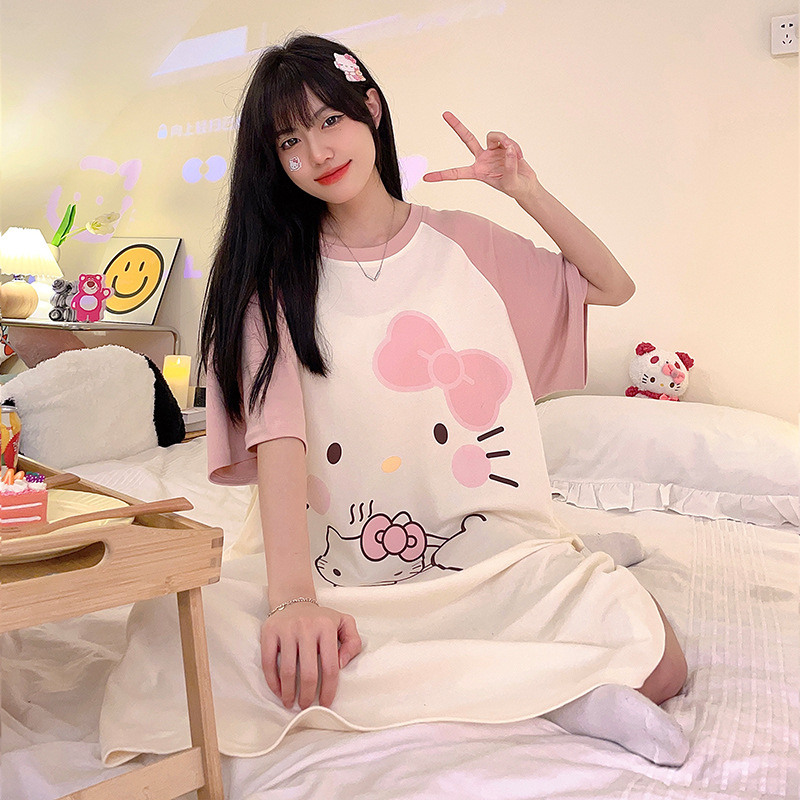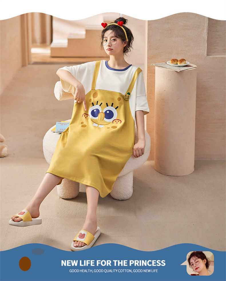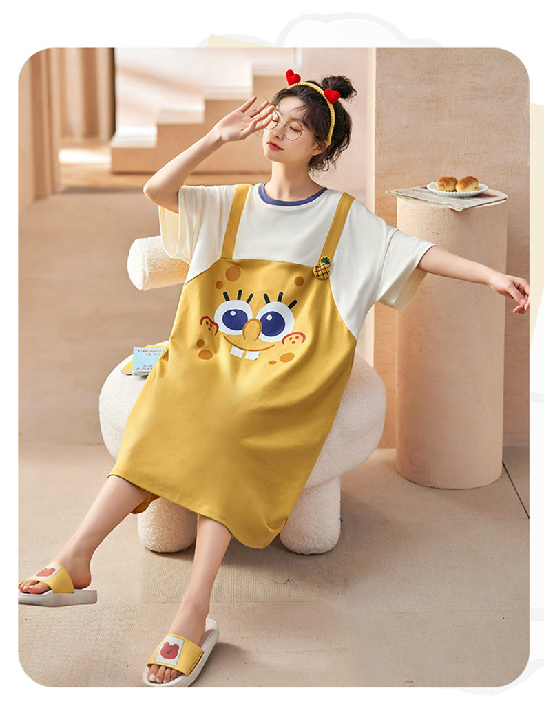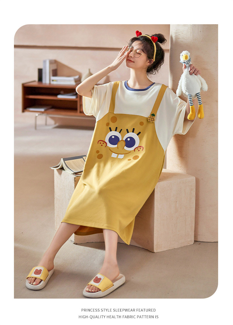 26년 신상품 풀오버【가슴 패드형】라운드넥 여성용 잠옷 여름 얇은 반팔 루즈핏 만화풍 귀여운 홈웨어