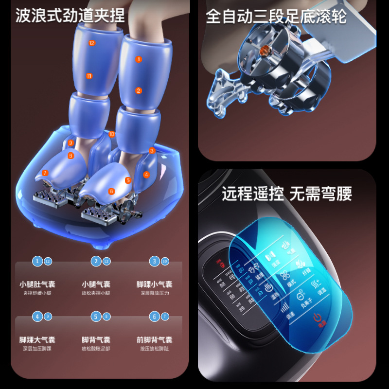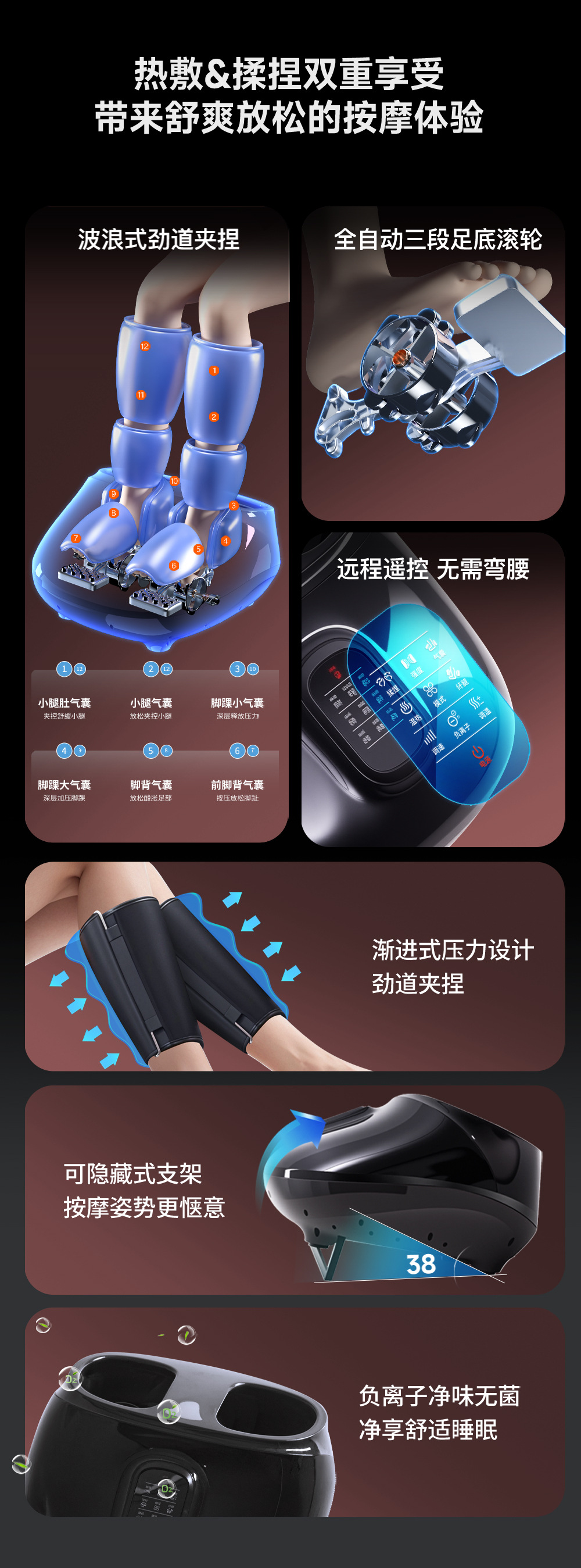 [Xuanye Black] 고급 무브먼트 + 풀 풋 롤러 + 다리와 발을 완전히 감싸는 에어백 핀치 + 9단계 온찜질 + 4가지 주요 모드 + 3단계 강도 + 냄새 정화를 위한 음이온
