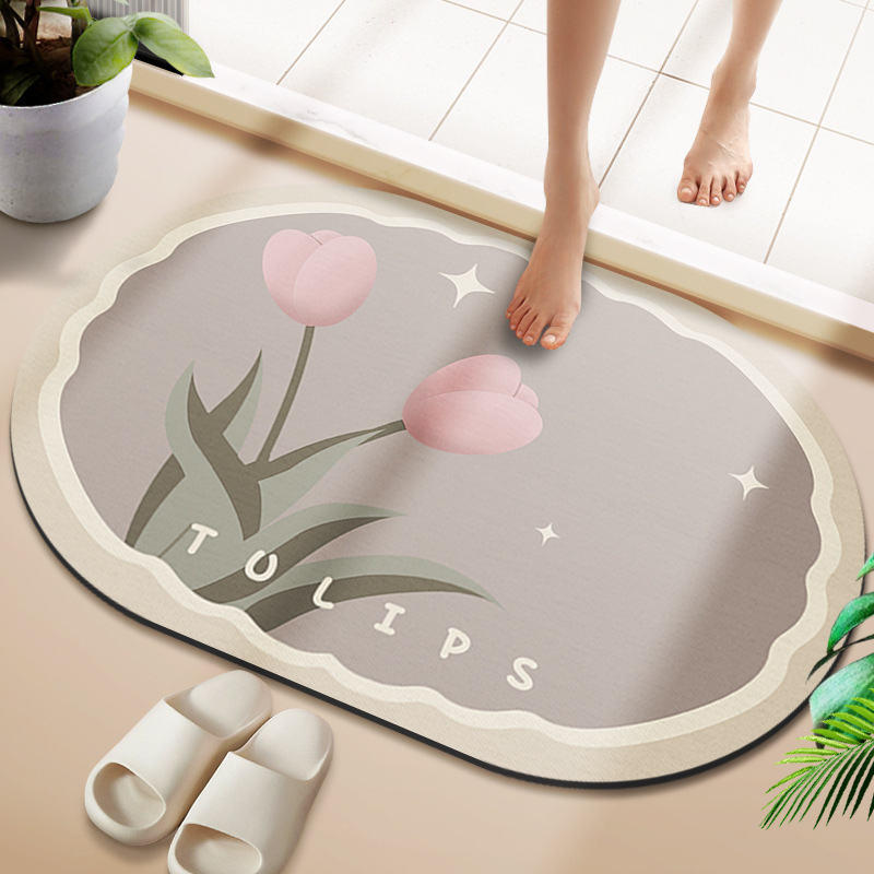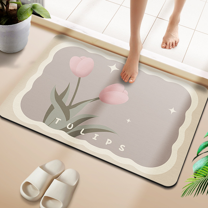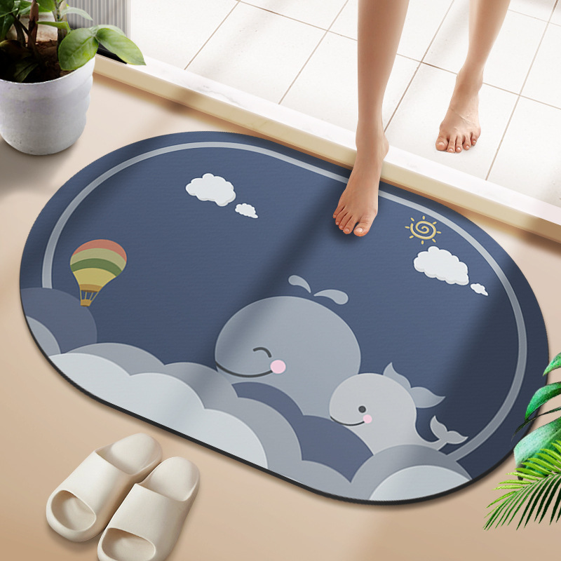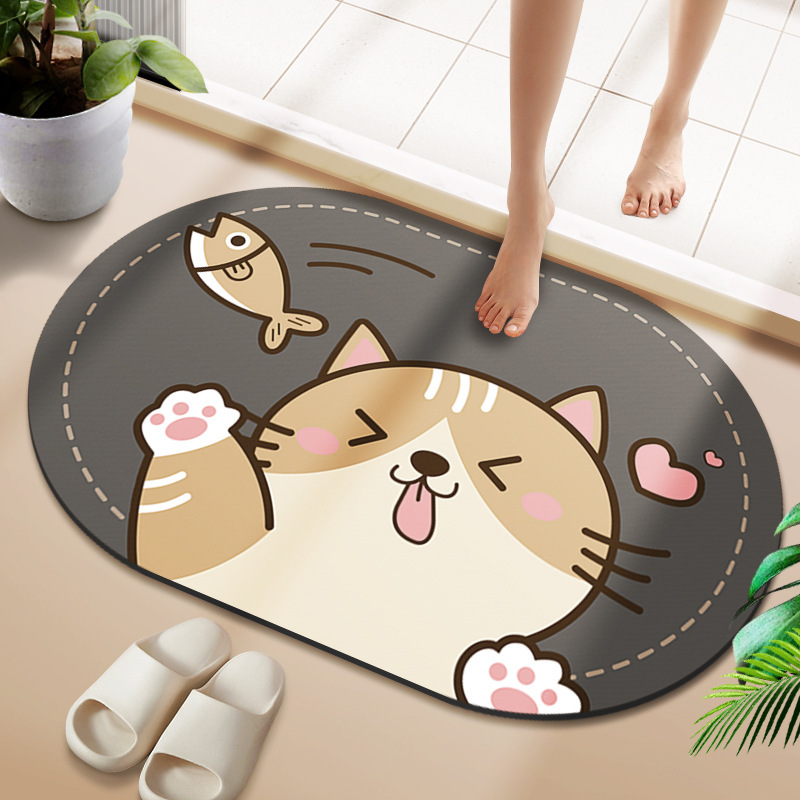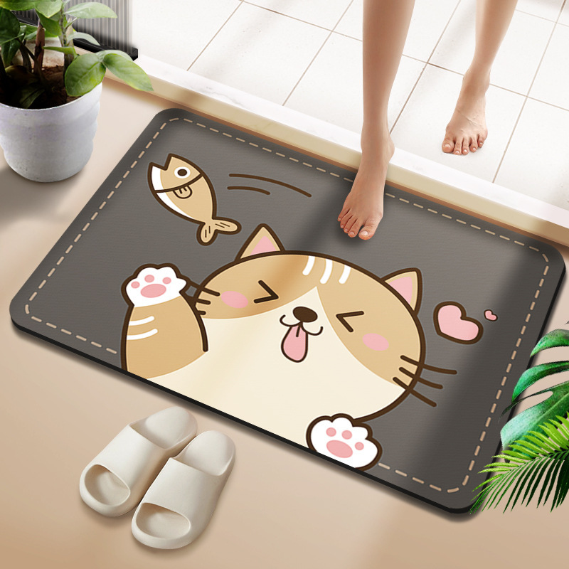 욕실 바닥 매트, 욕실 흡수성 미끄럼 방지 매트, 규조토 진흙 부드러운 매트, 속건성 및 얼룩 방지 주방 문 귀여운 애완 동물 발 매트