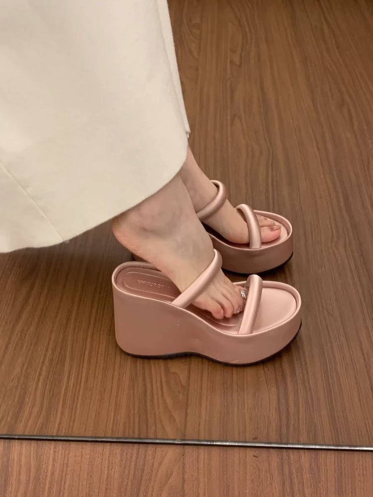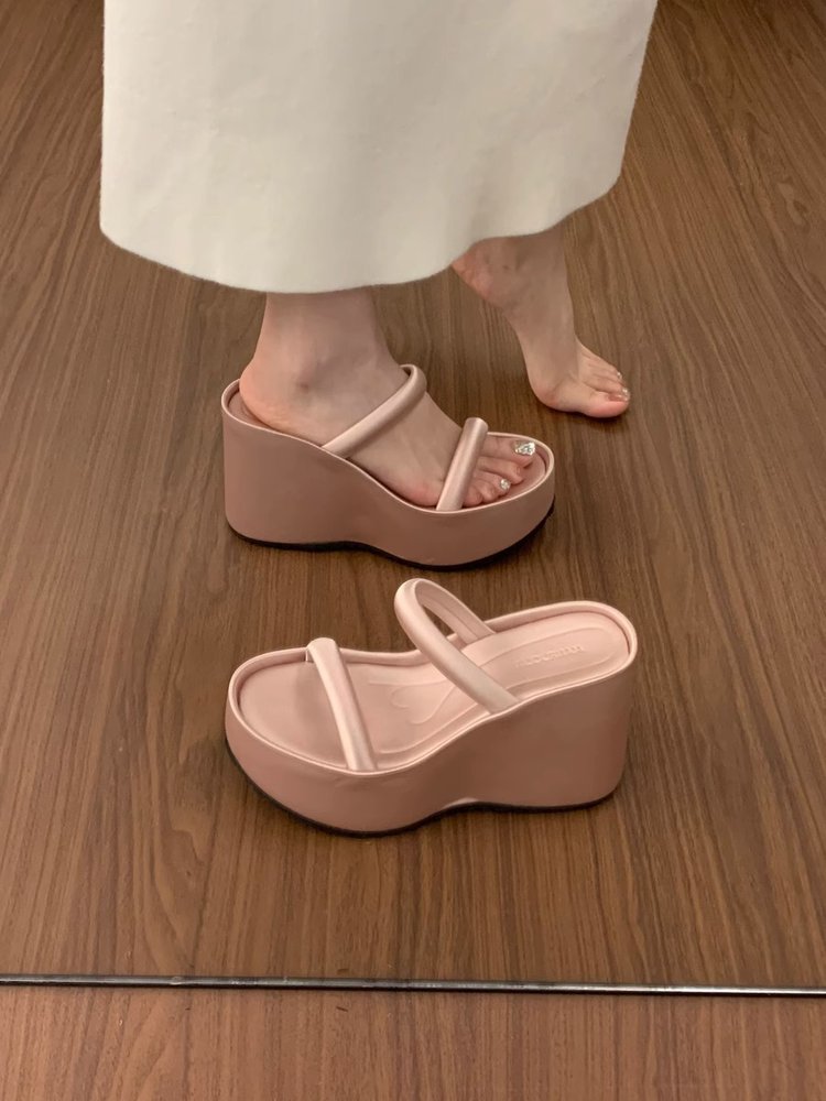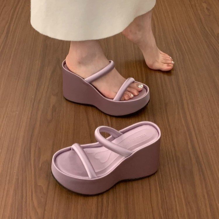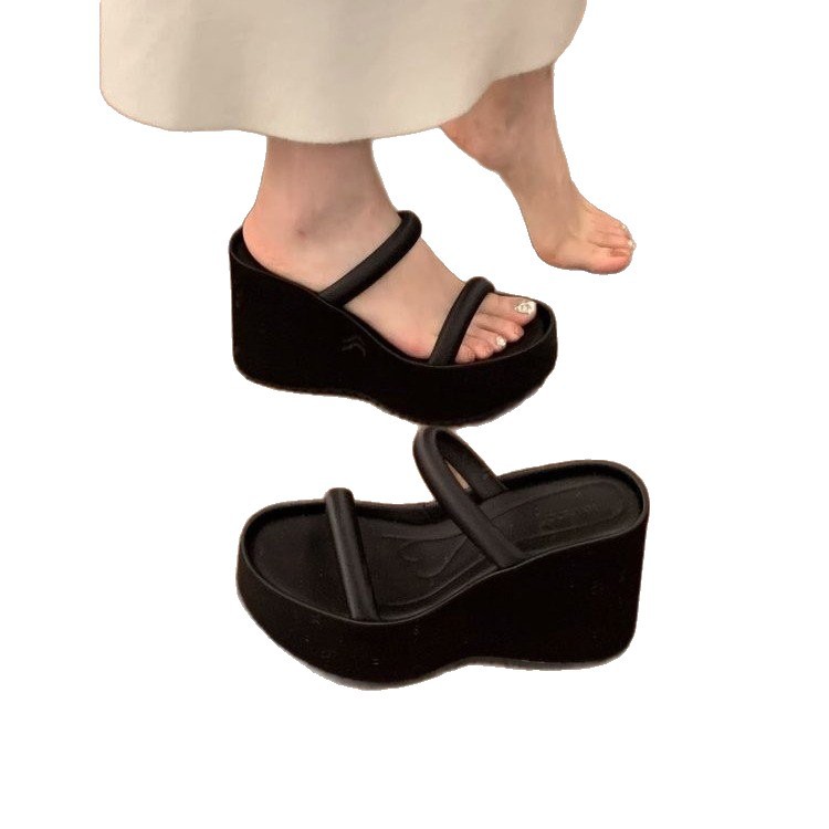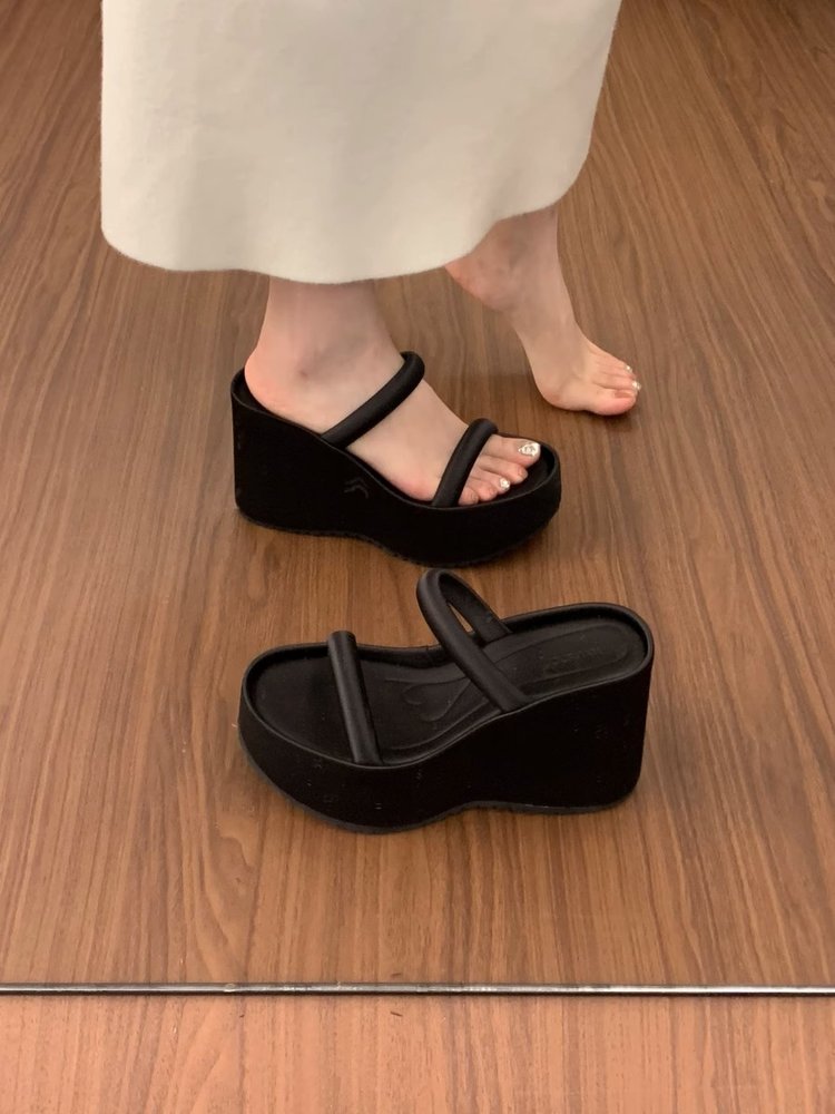 유럽과 미국의 솔리드 컬러 웨지 플랫폼 샌들 여성 신발 2025 여름 새로운 스퀘어 헤드 버클 캐주얼 샌들