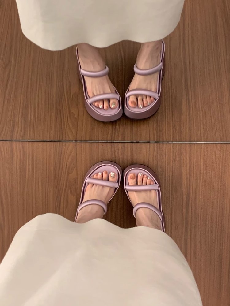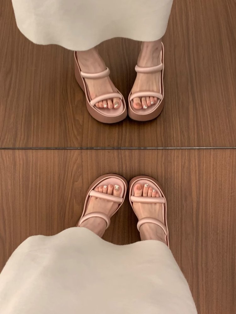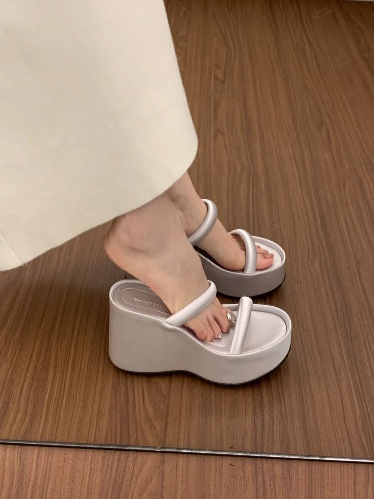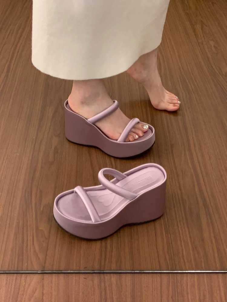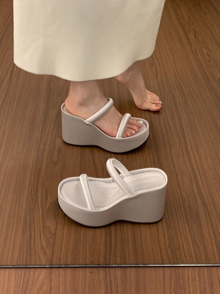 유럽과 미국의 솔리드 컬러 웨지 플랫폼 샌들 여성 신발 2025 여름 새로운 스퀘어 헤드 버클 캐주얼 샌들