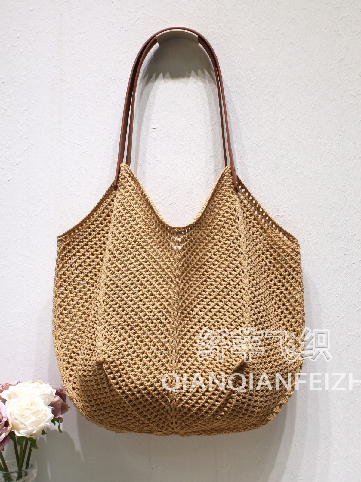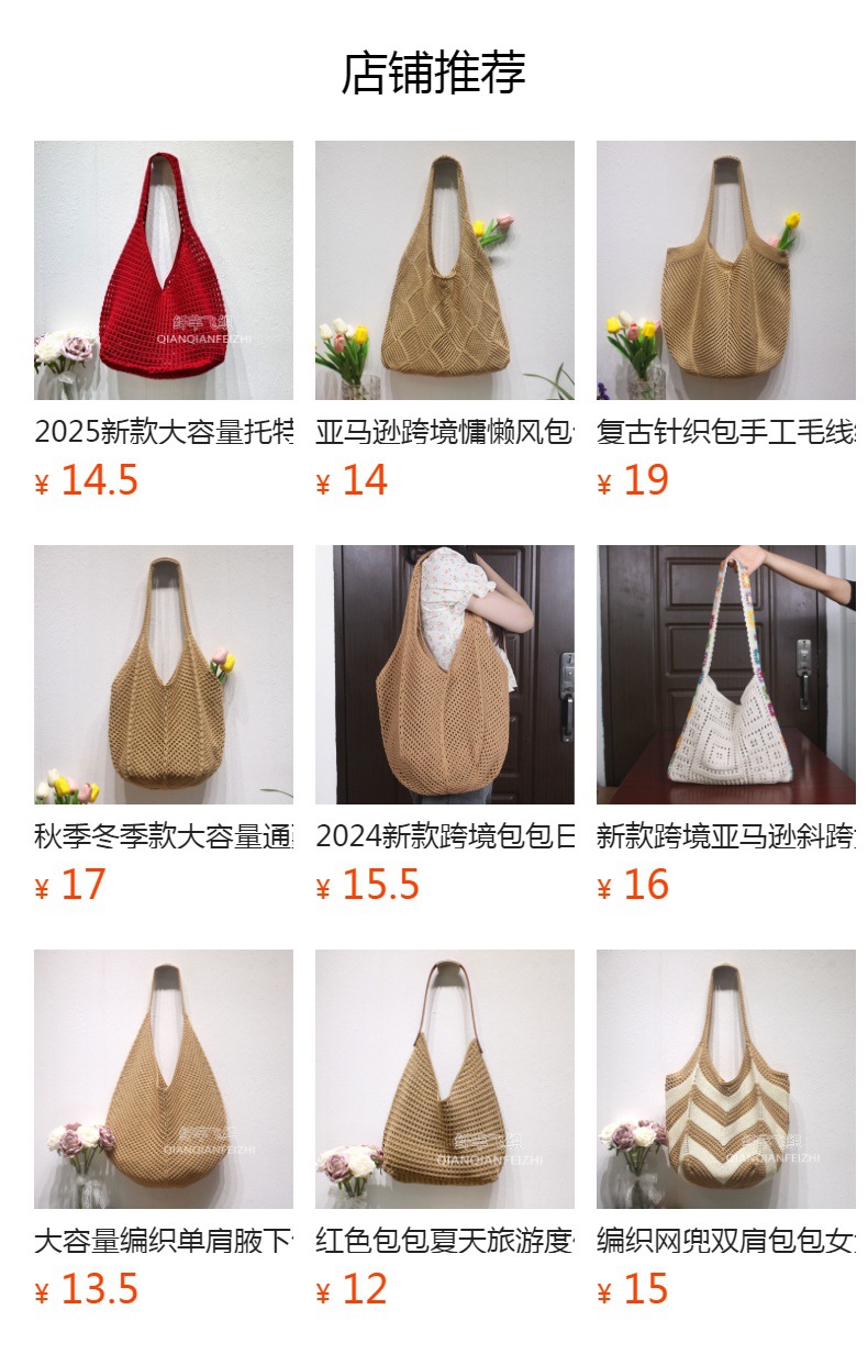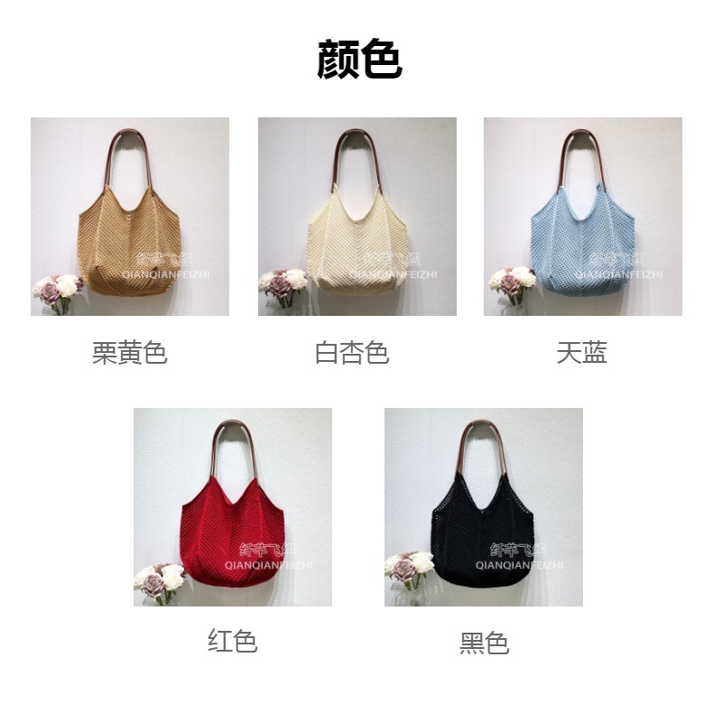 고요한 여름 휴가 여행 니트 어깨 가방 레트로 메쉬 빈 손 가방 간단한 짠 가방