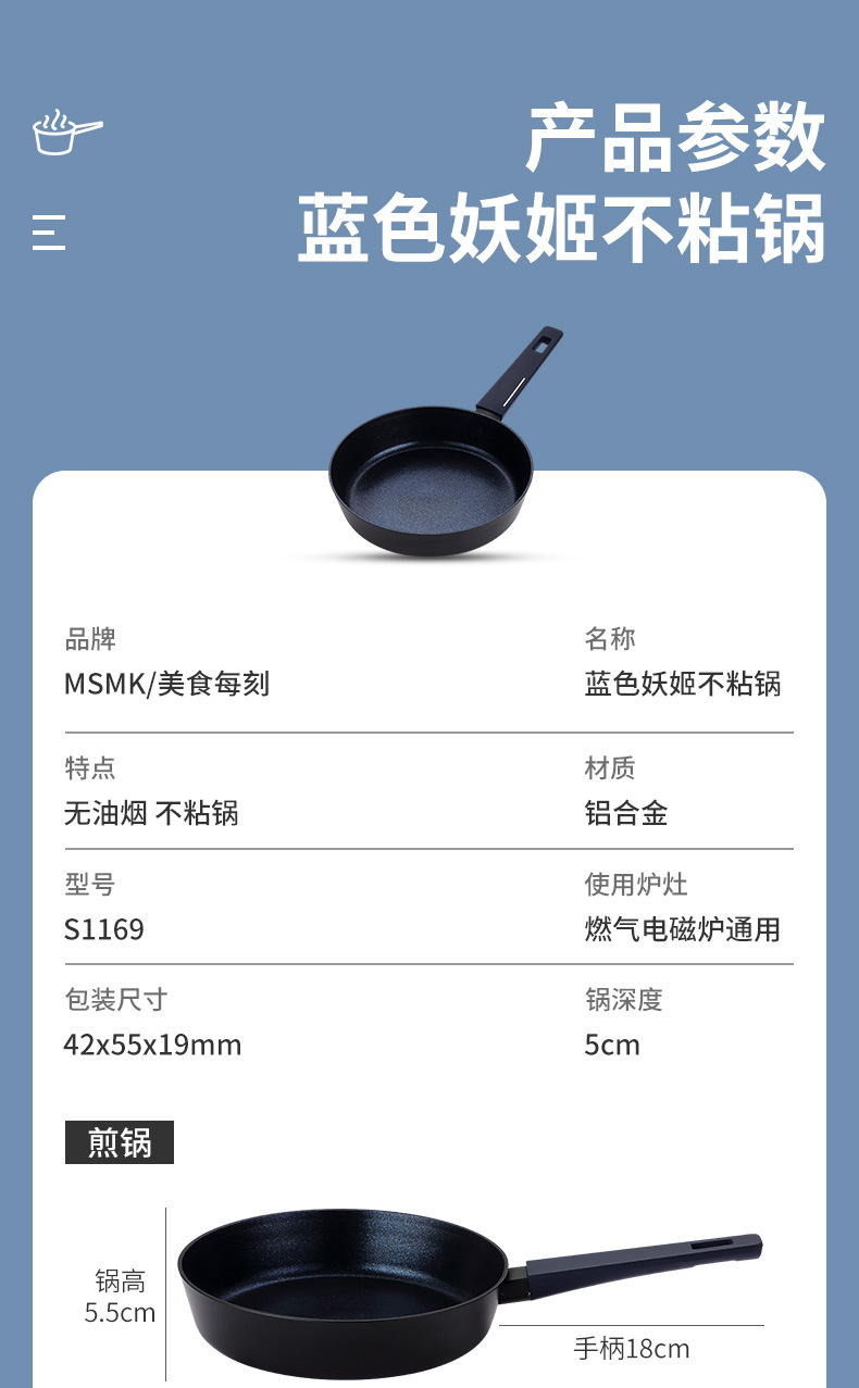 샨주 블루 엘프 블루 다이아몬드 가정용 논스틱 프라이팬 다기능 이유식 냄비/스토브 겸용 다층 복합 바닥
