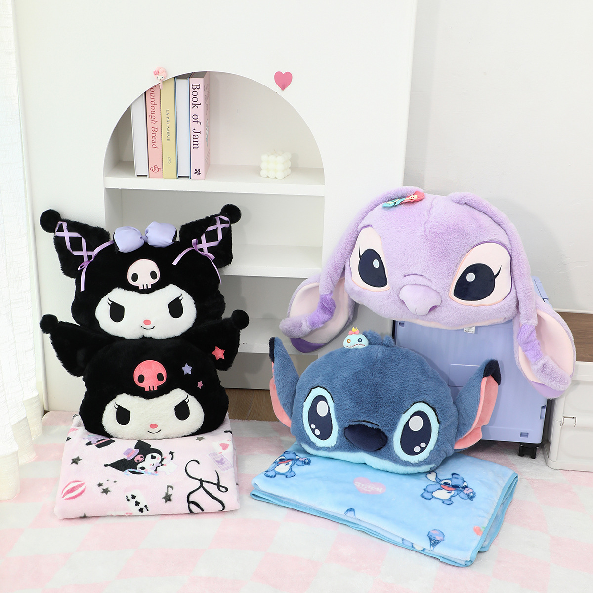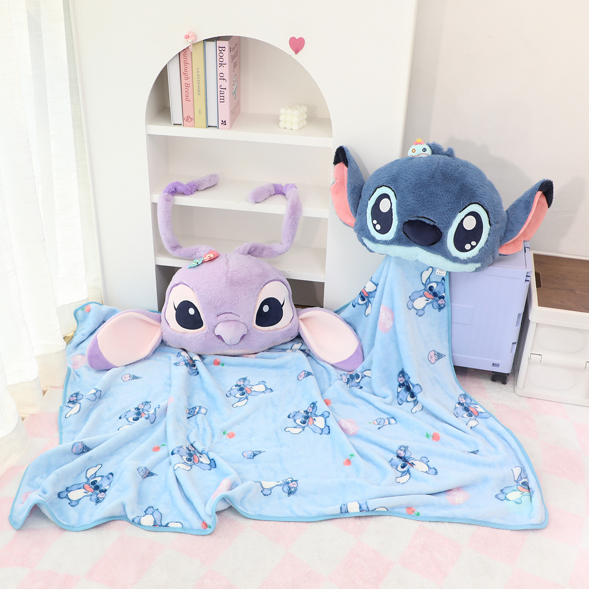 귀여운 만화 멜로디 스티치 베개 담요 투인원 사무실 낮잠 담요 베개 이불