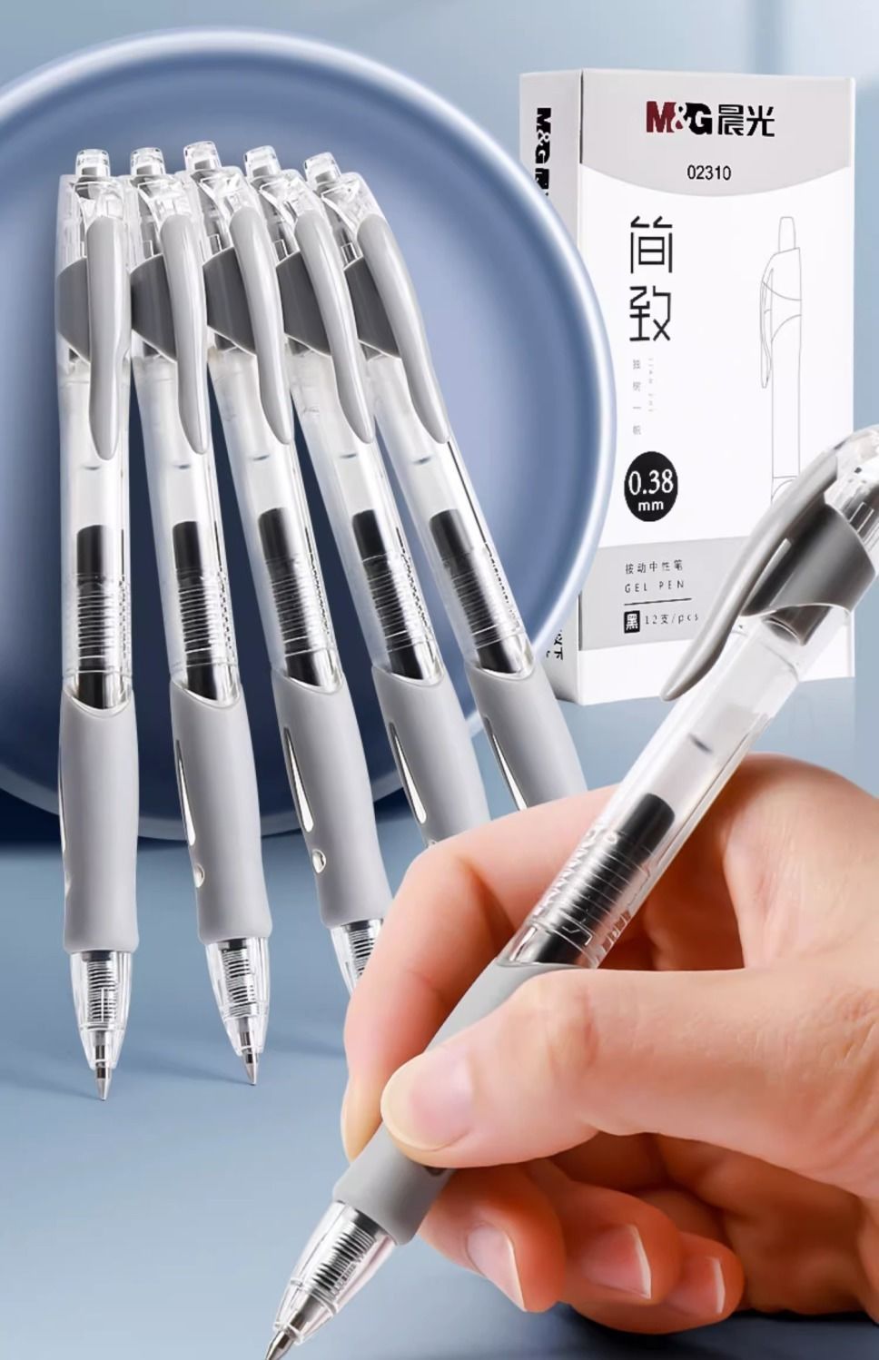 0.38mm 젤펜, 심플하고 빠르게 건조되는 푸쉬형 젤펜, 고급스러운 디자인의 학생용 검정 카본 워터펜