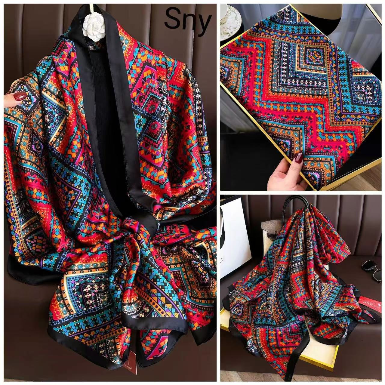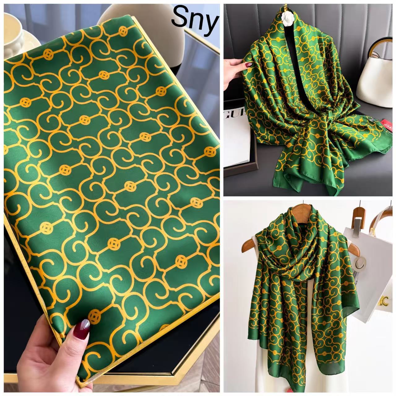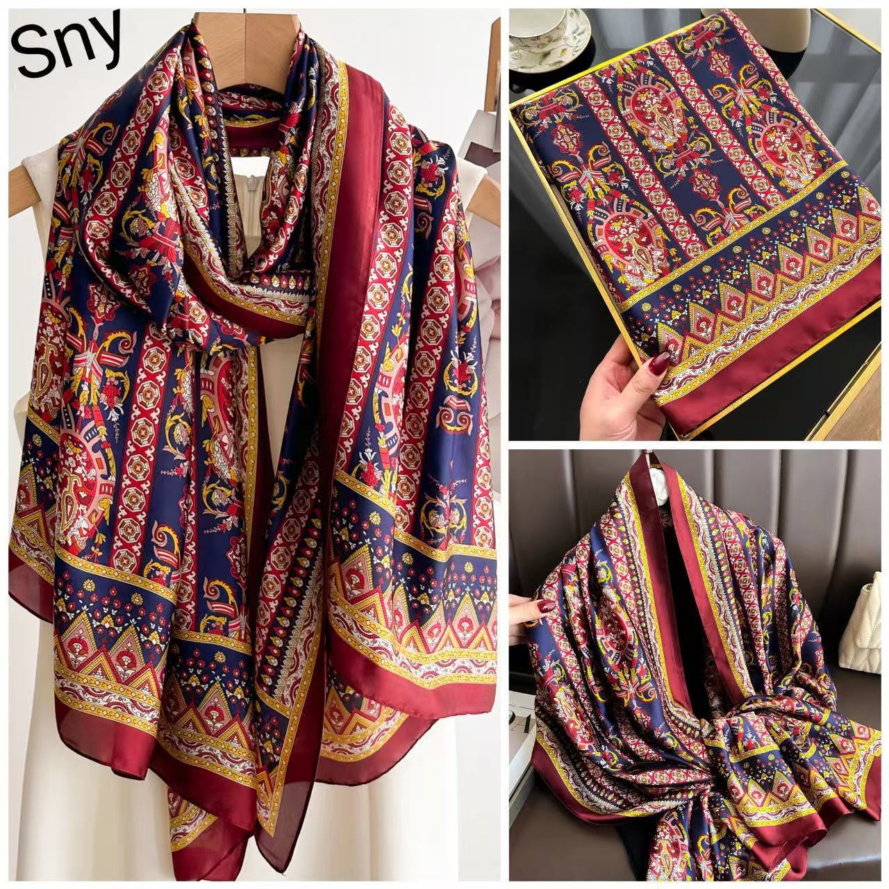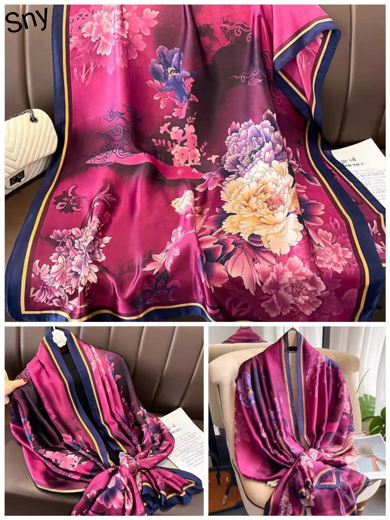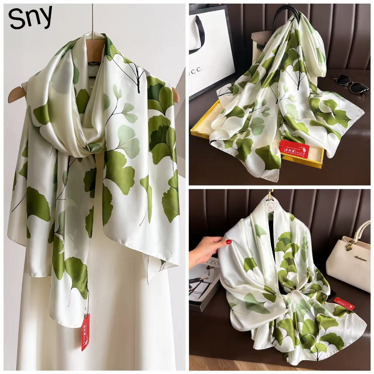 새로운 시뮬레이션 실크 스카프, 브로케이드 롱 스카프, 봄과 가을 패션, 다재다능한 여름 자외선 차단 숄, 터번