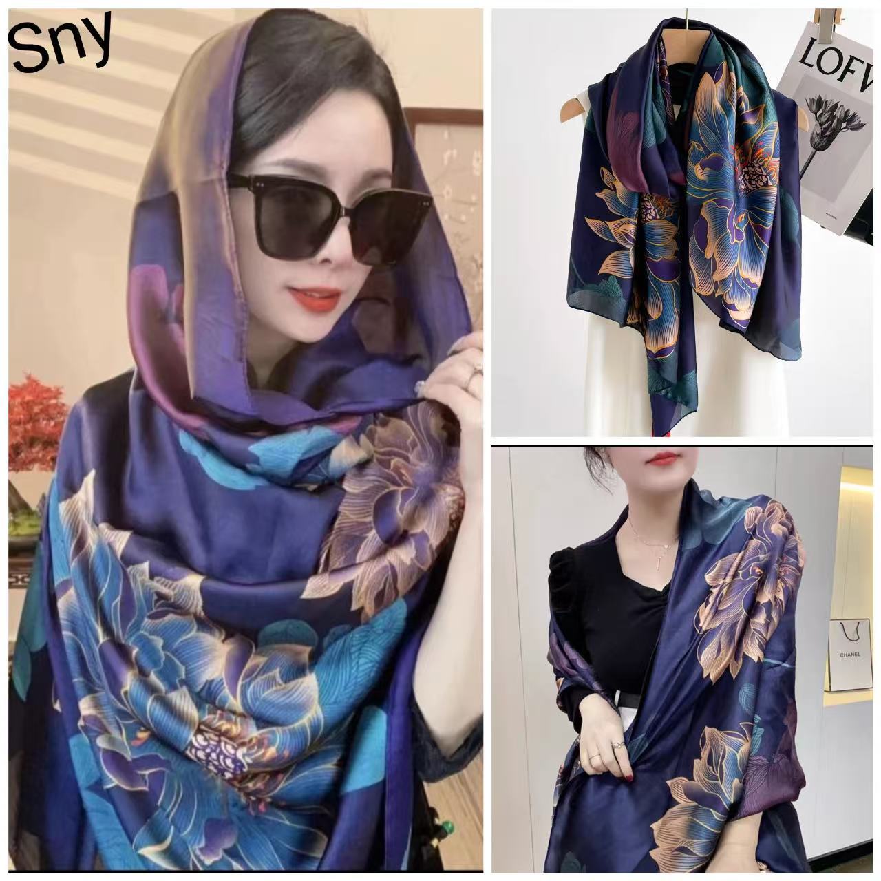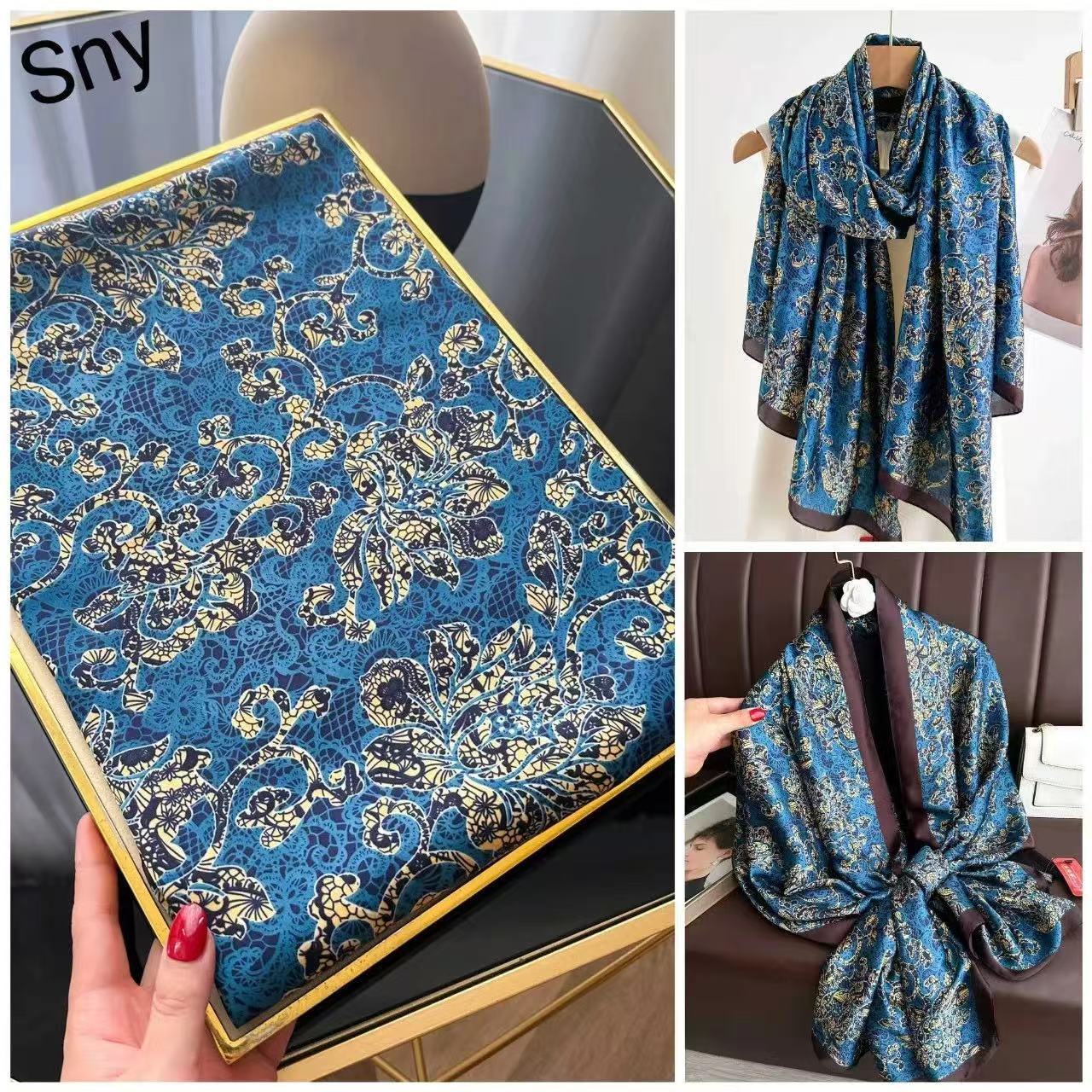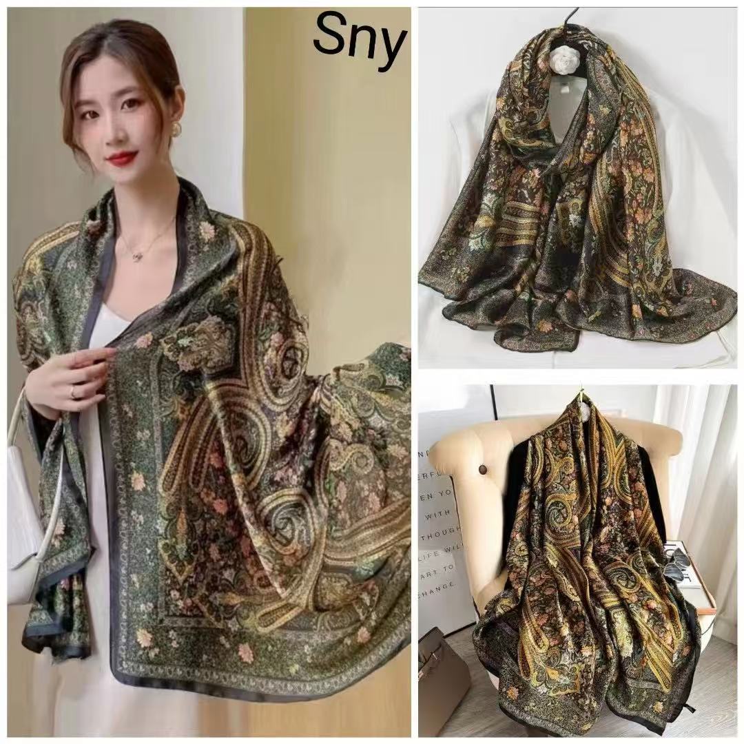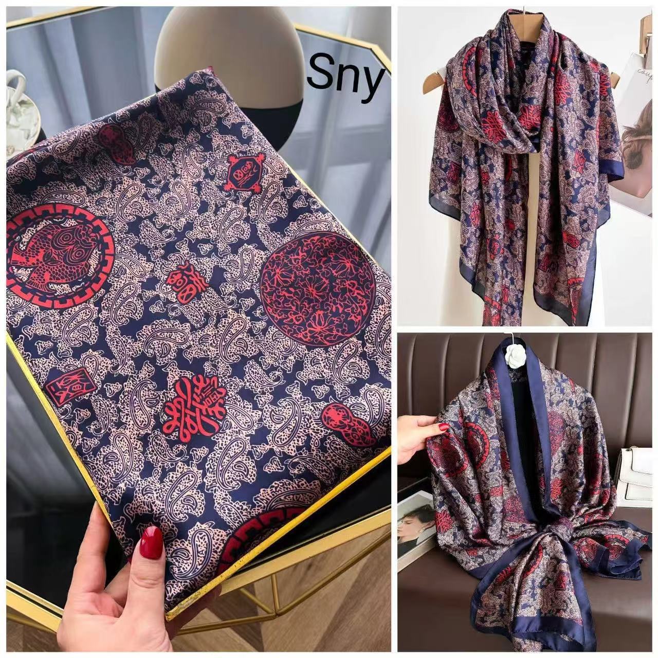 새로운 시뮬레이션 실크 스카프, 브로케이드 롱 스카프, 봄과 가을 패션, 다재다능한 여름 자외선 차단 숄, 터번